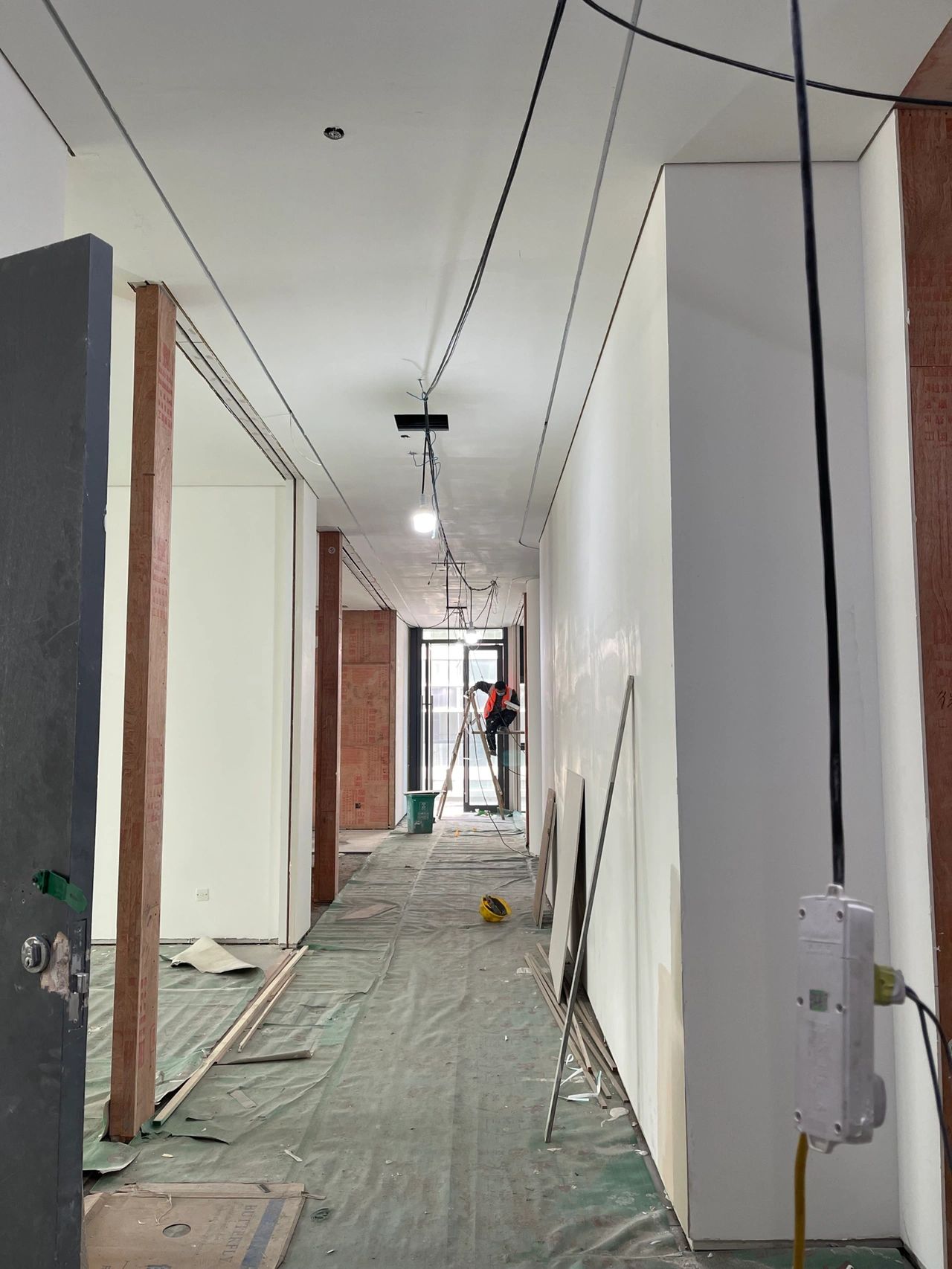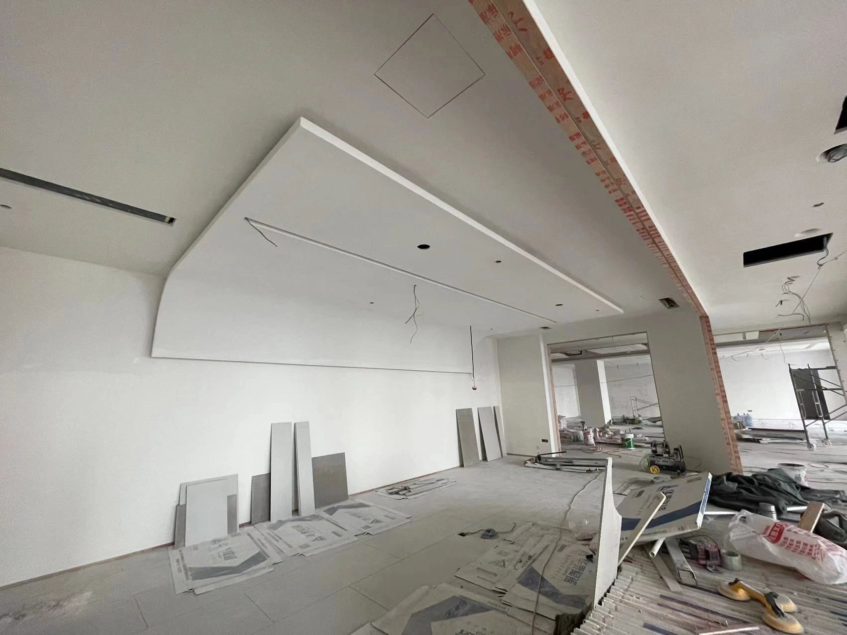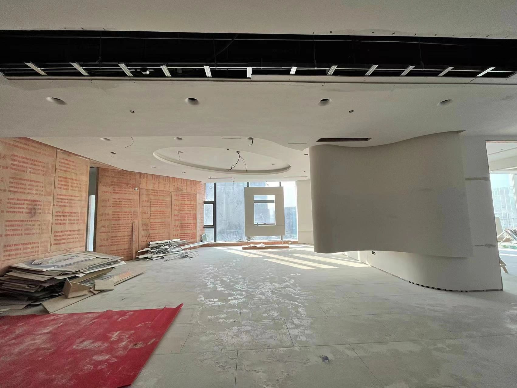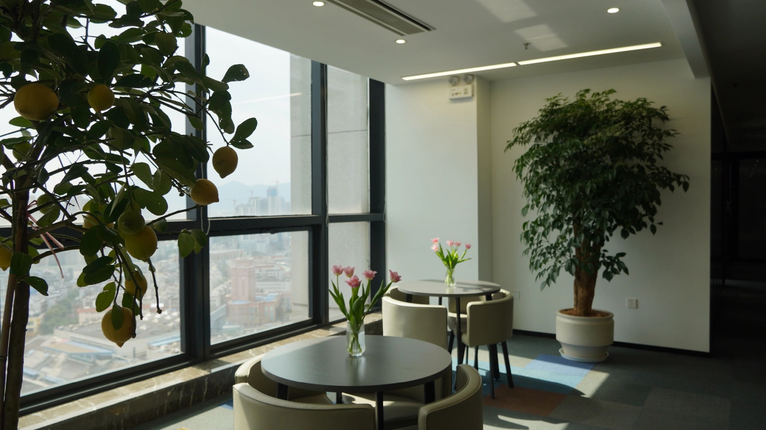 办公空间的氛围设置不止于平面布局,更在于三维整体。灯作为光的发生器,成为秩序的有力表达者。它们如同优雅的线条画家,在工业感十足的天花间勾勒出简洁而富有张力的几何线条。不仅增加了空间的导向性,也提升了办公空间整体的美观度与科技感,更在无形中渲染了秩序感,促进工作效率与创造力激发。工作区采用高级灰与白色为主色调,白色桌柜、墙面与灰色地毯,让空间更加自然放松。简约自由的布局更考验材料的取舍。地面颜色的深浅则作为不同区域的象征界限,分而不隔,开阔通透。