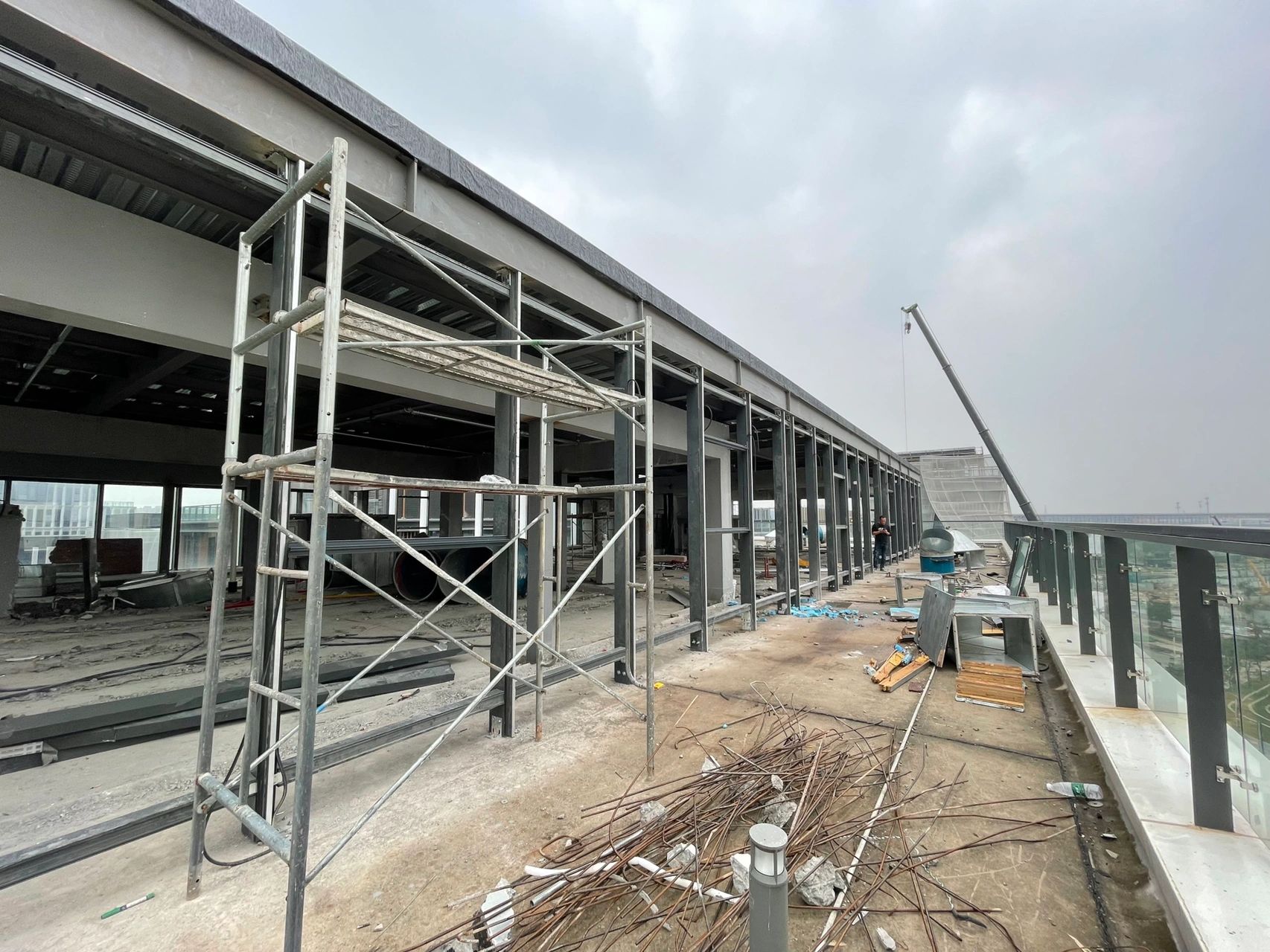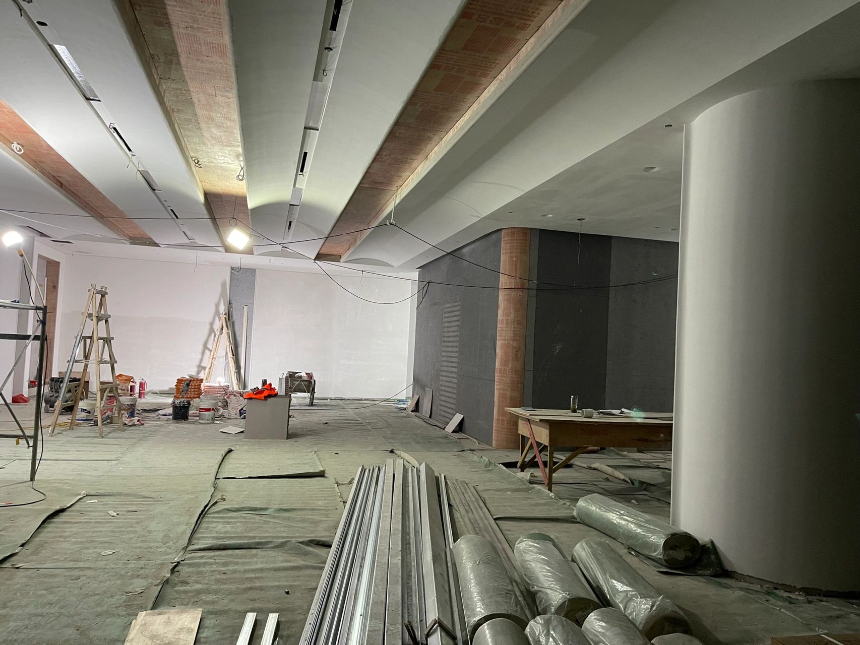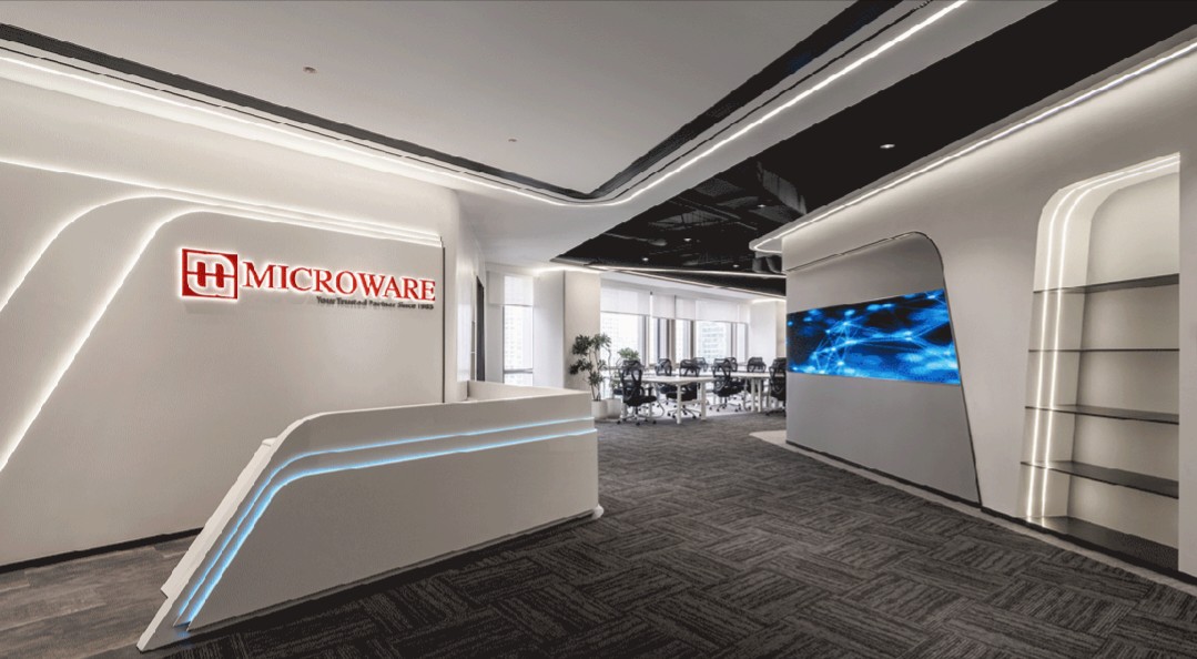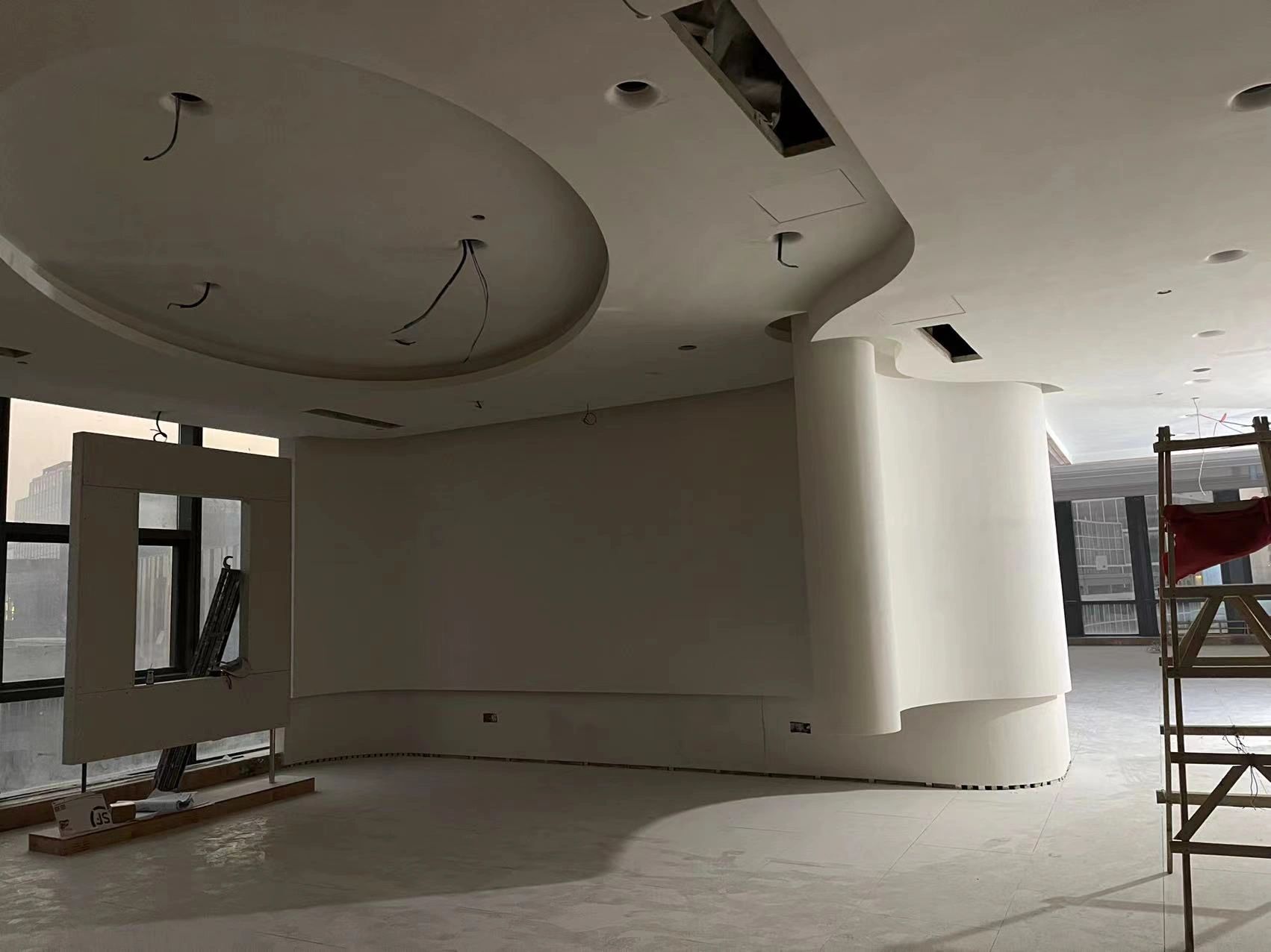 前台区域的设计流畅而富有动感,与周围围合界面形成和谐对话,强化了空间的社交属性。纯白的总基调简约不失质感,细节之处利用线条利落衔接,共同诠释了知性简约与质感并存的基础手法。步入其间,电子大屏与空间的线条铺开氛围语言,营造出独特的科技美学。为了更充分表达,材料上运用丝光漆、金属及不锈钢,形成视觉冲击。顶部的设计直接裸露水泥及管道结构,给空间增添了工业气息。灯光随着轨道形成充满秩序感的线条,让人感受到企业的节奏、时尚气息和高效文化。