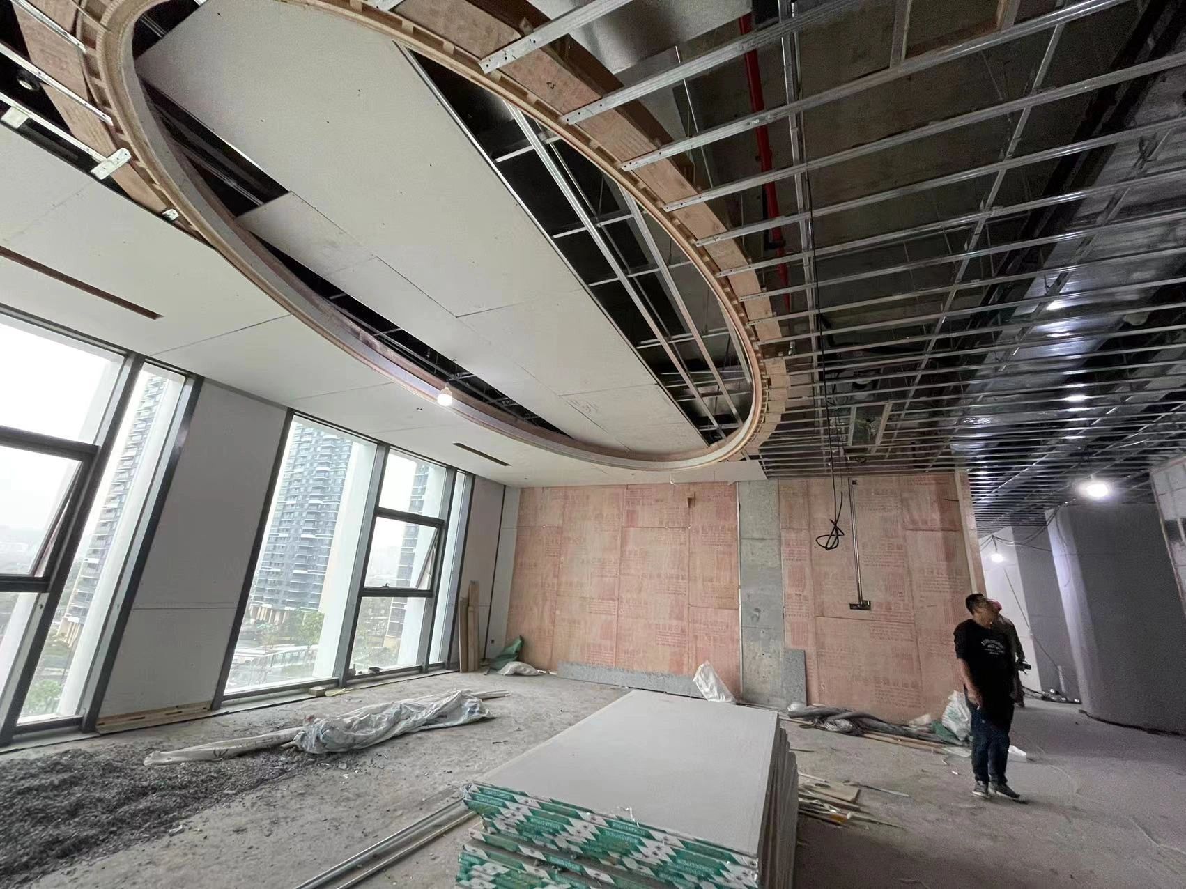 心流作为设计的灵感主题,将以空间形态与材料语言叠加、组合,大胆的线条和清晰的轮廓将空间感勾勒出以此表达秩序清晰、协同、独立而又能自由扩展的流动性办公空间。