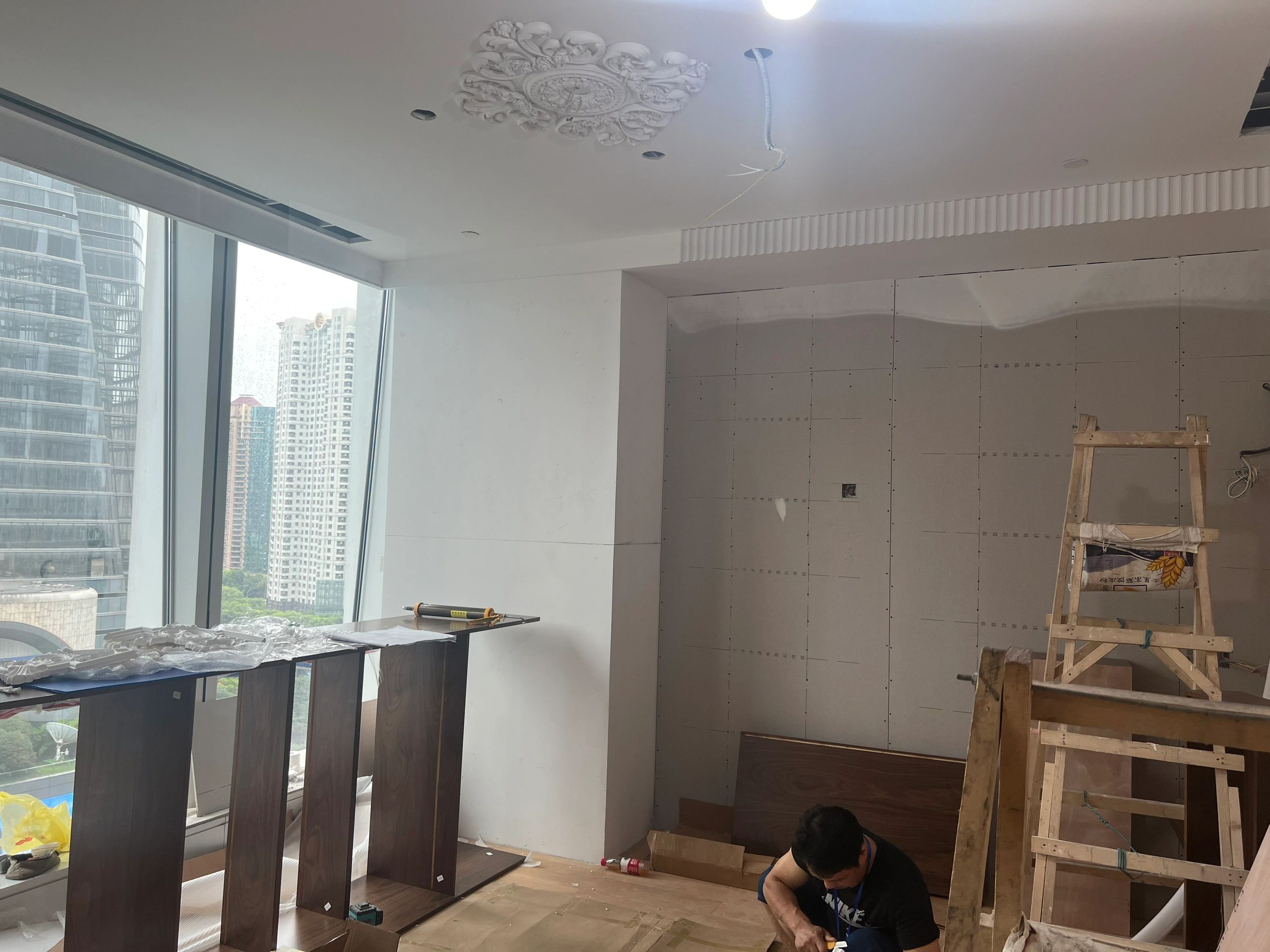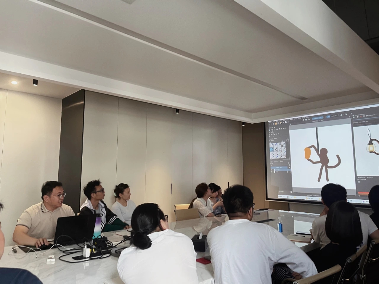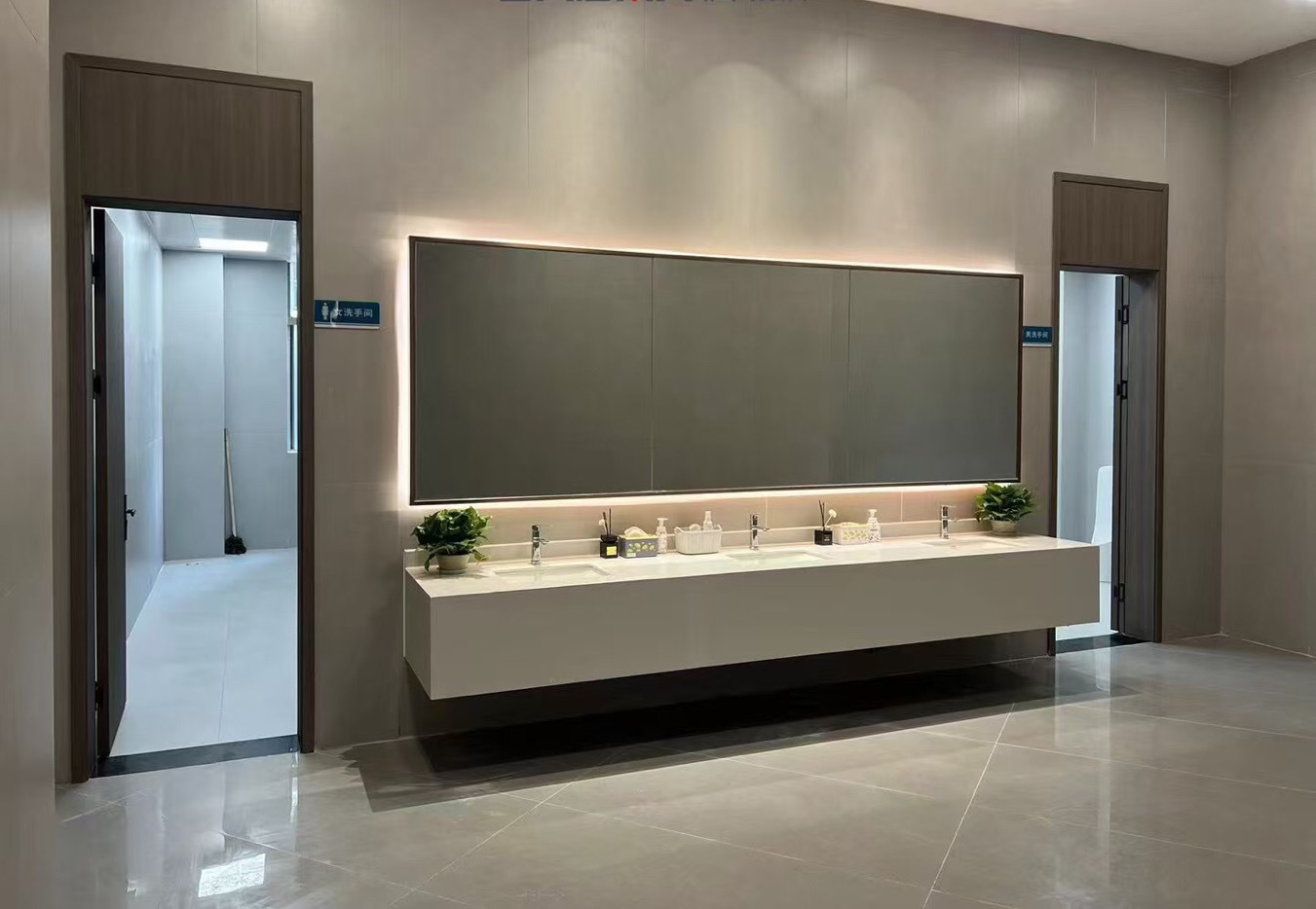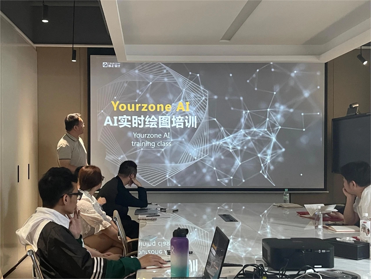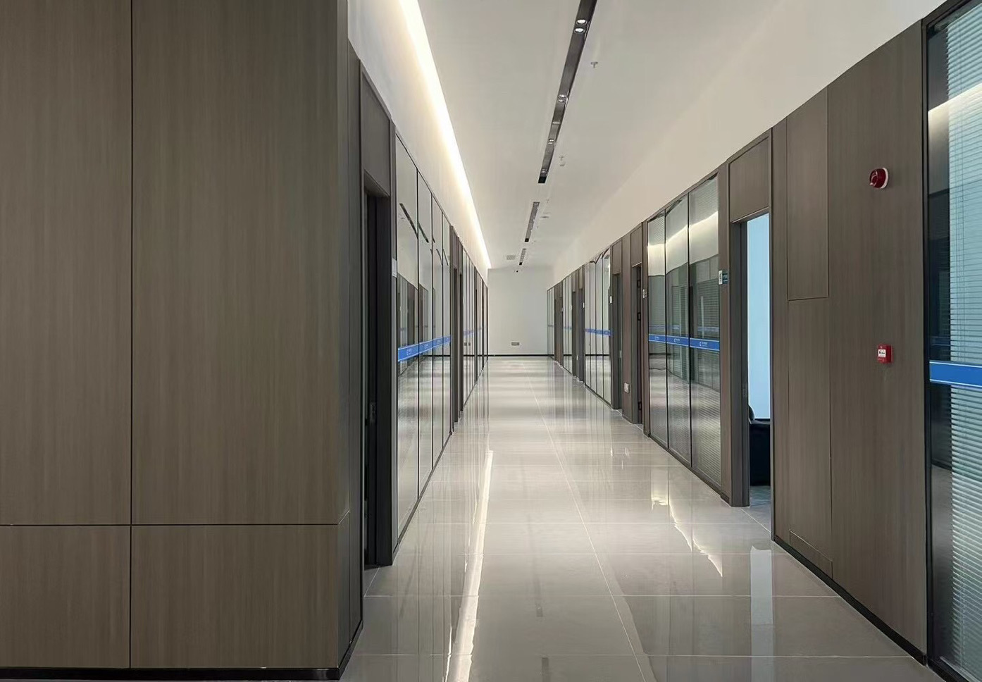 前厅接待区的整体空间纯净而简练,黑白色调反而更凸显超现实氛围,仿佛置身于科技对话未来的场景。几何构成感的前台极具视觉张力,与纯白的背景墙碰撞出别样的空间趣味感。