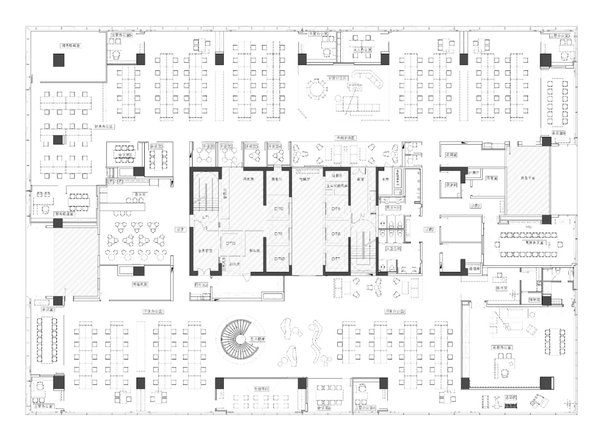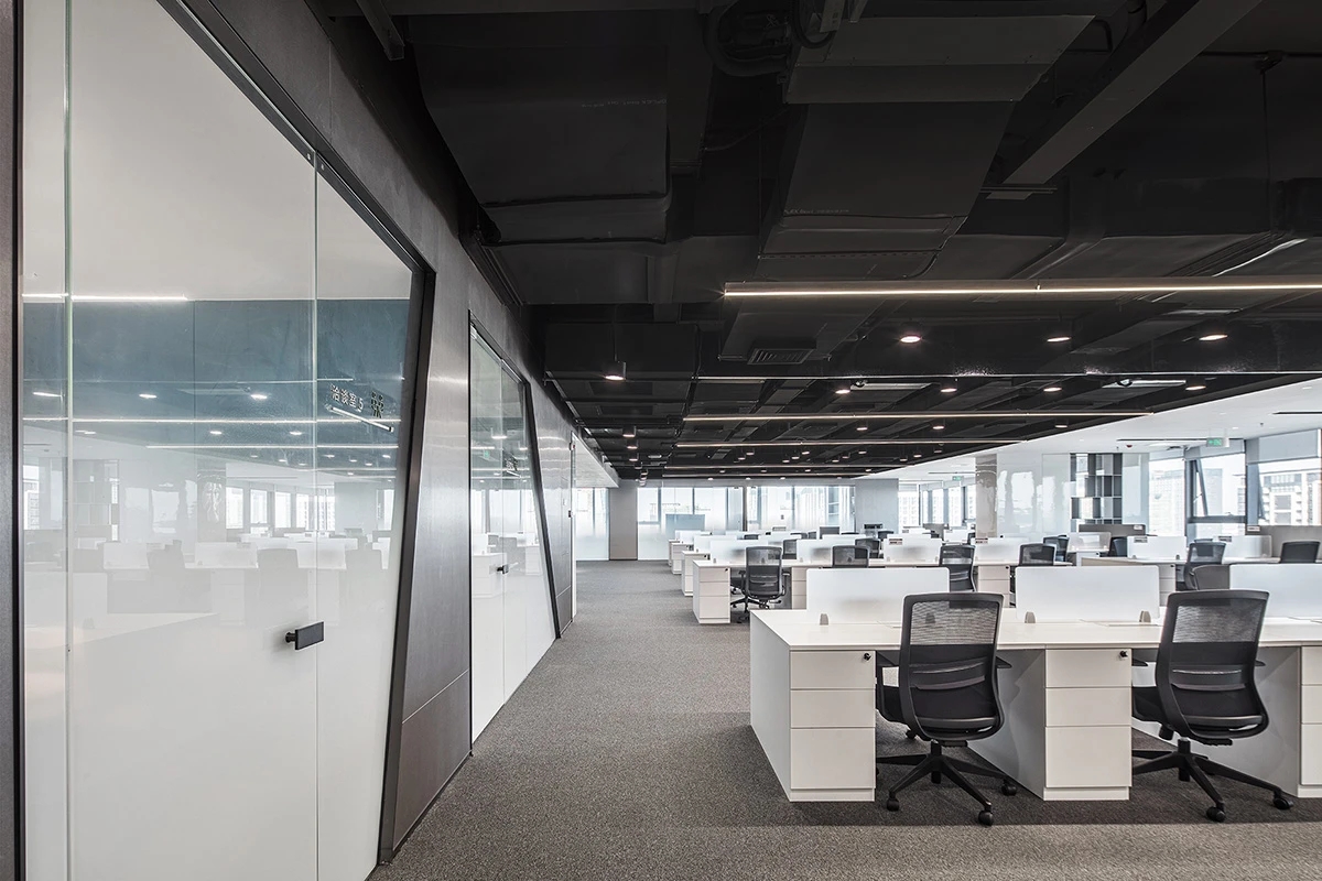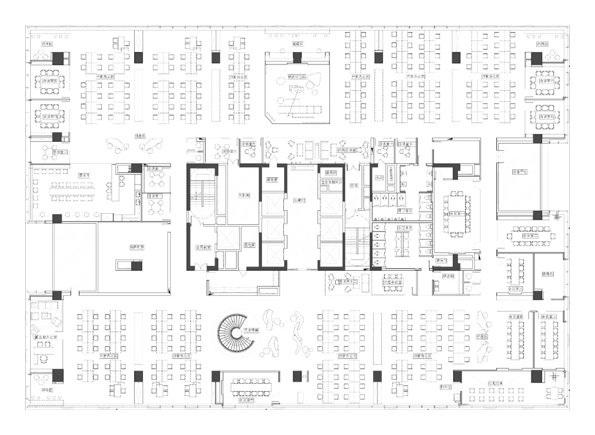 设计概念从赛意的标识中汲取灵感并结合“空间蒙太奇”的手法,室内设计试图打破原有的传统平面布局,空间采用无墙体隔断形成多元路径,呈现开放自由流动式的平面。从而形成“空间蒙太奇”的新体验,通过流动空间有序和无序的多元体验,创造无限的未来空间可能性。