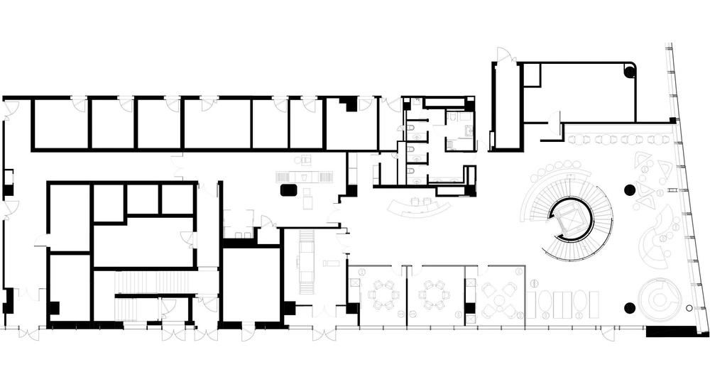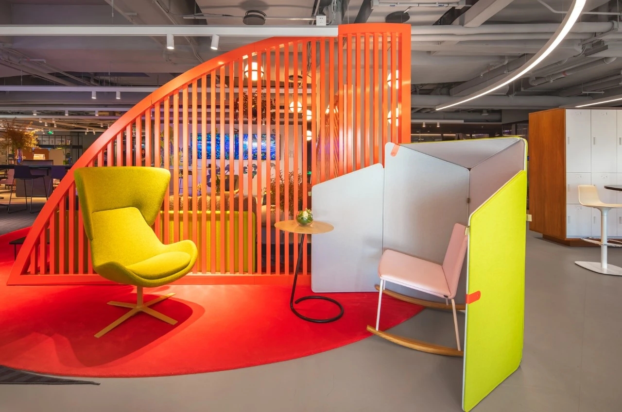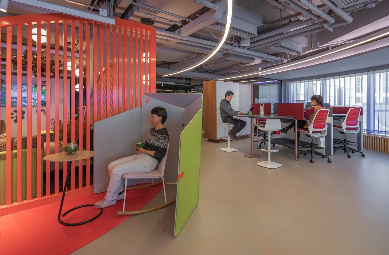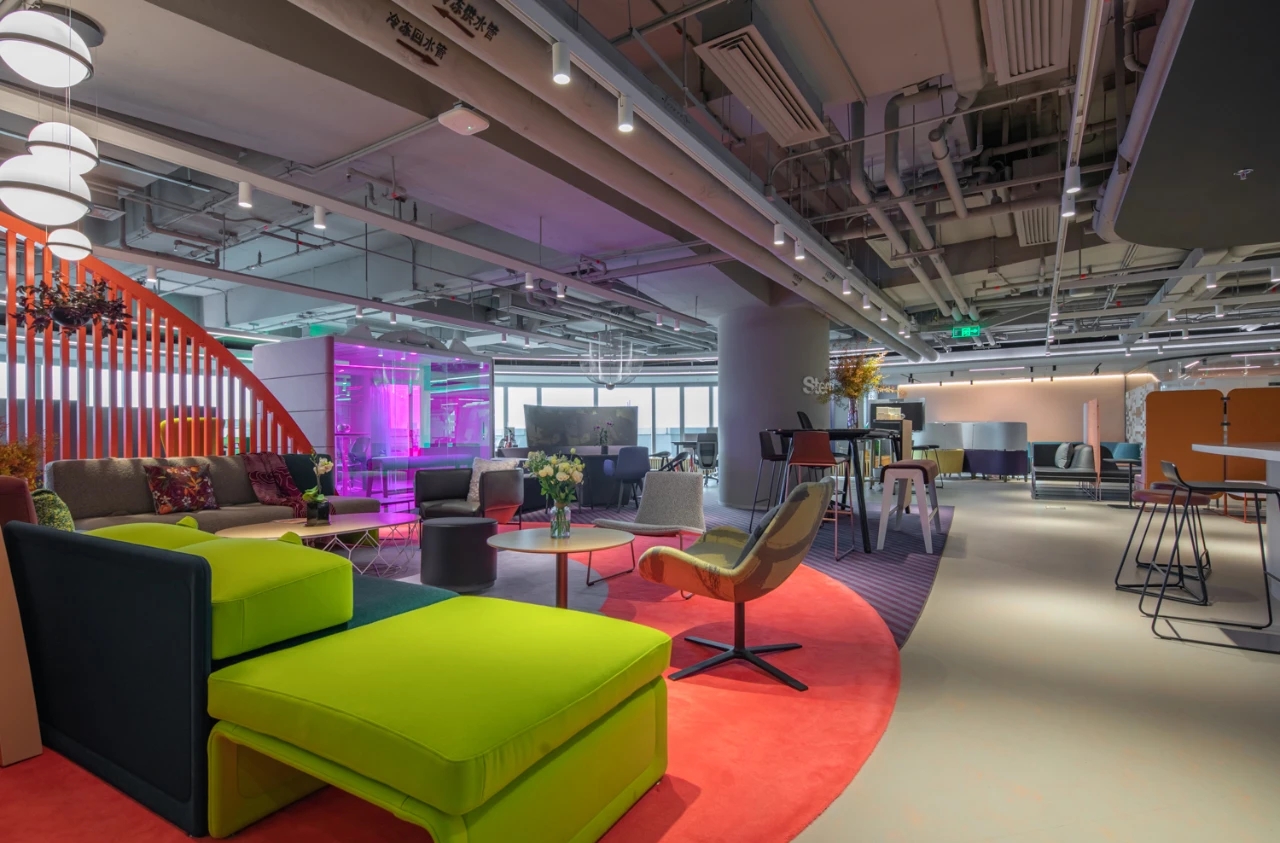 一楼有接待处和开放的公共空间、餐厅、酒吧、独立的公共休息室、游戏室;二楼的空间则比较私密,如独立的半开放式专注工作舱、带小厨房的会议室、办公室和私人休息室。