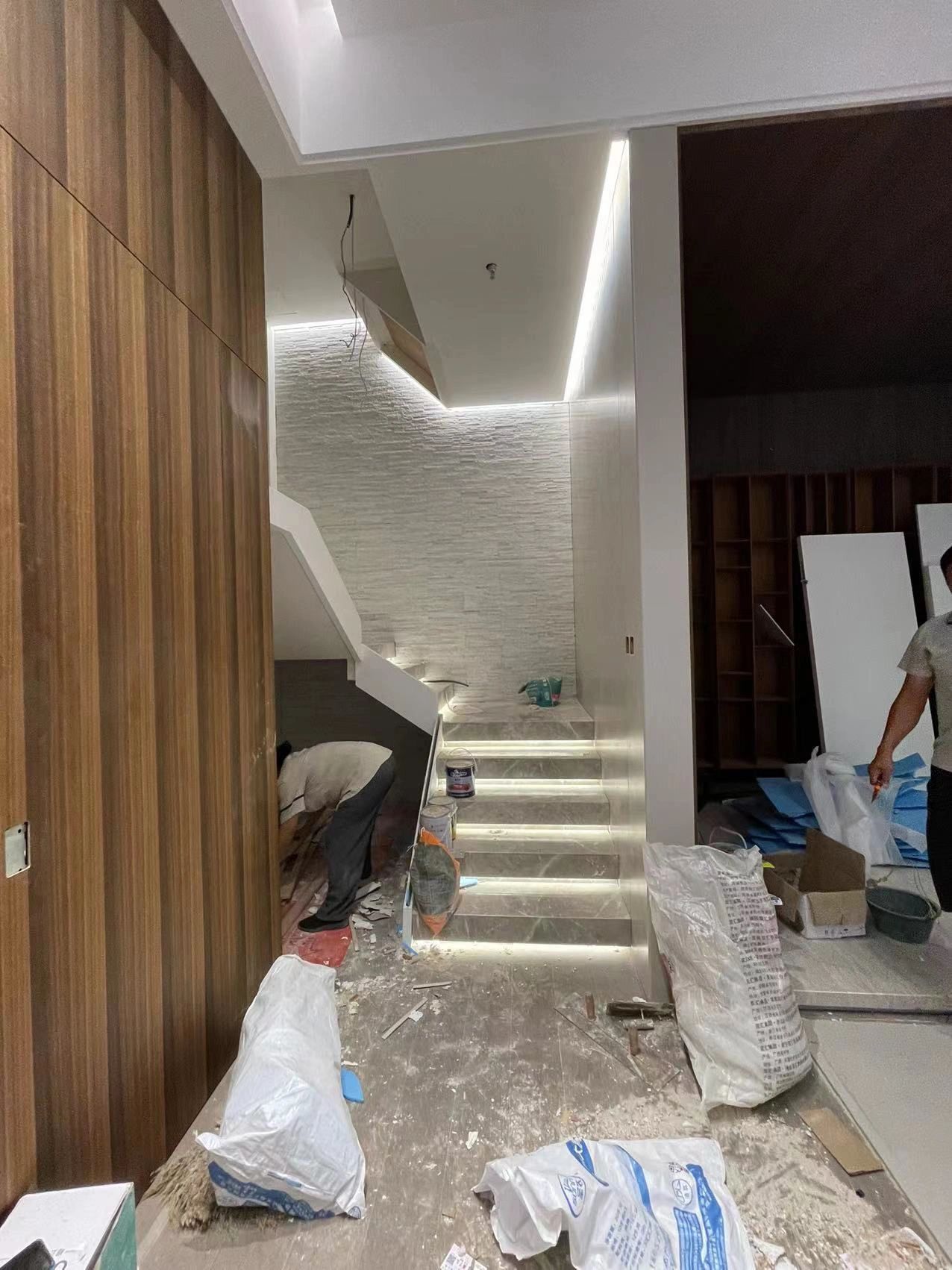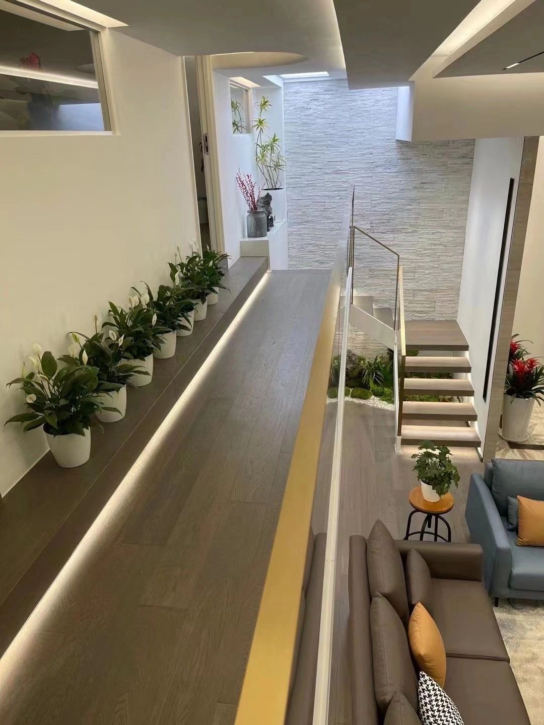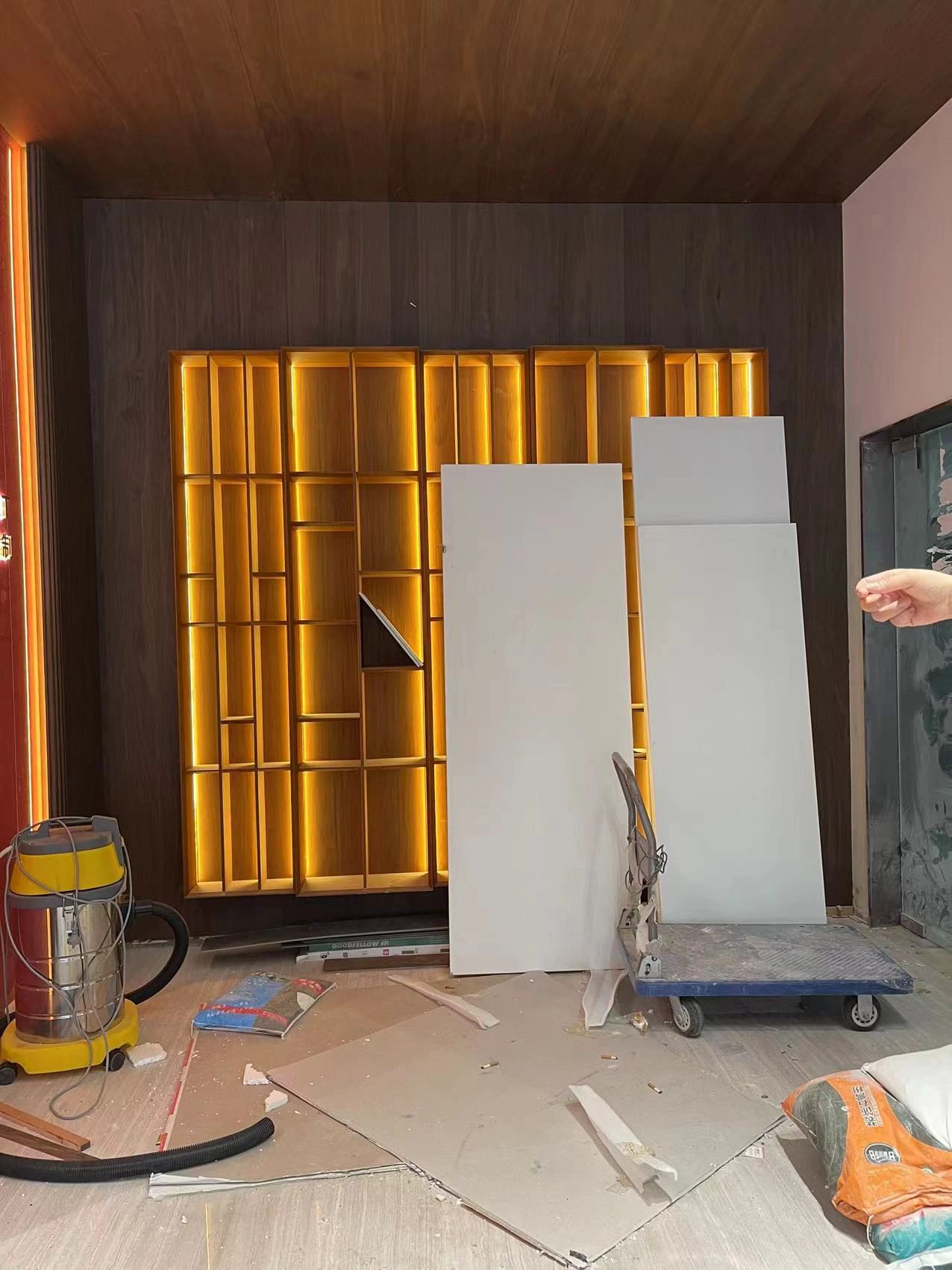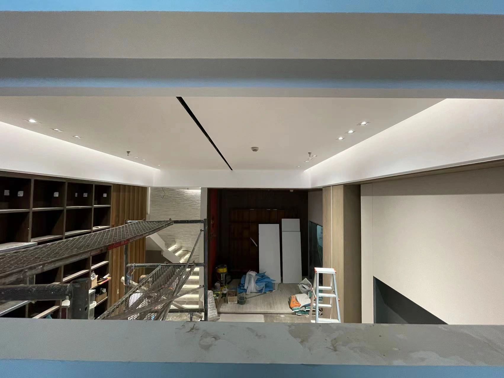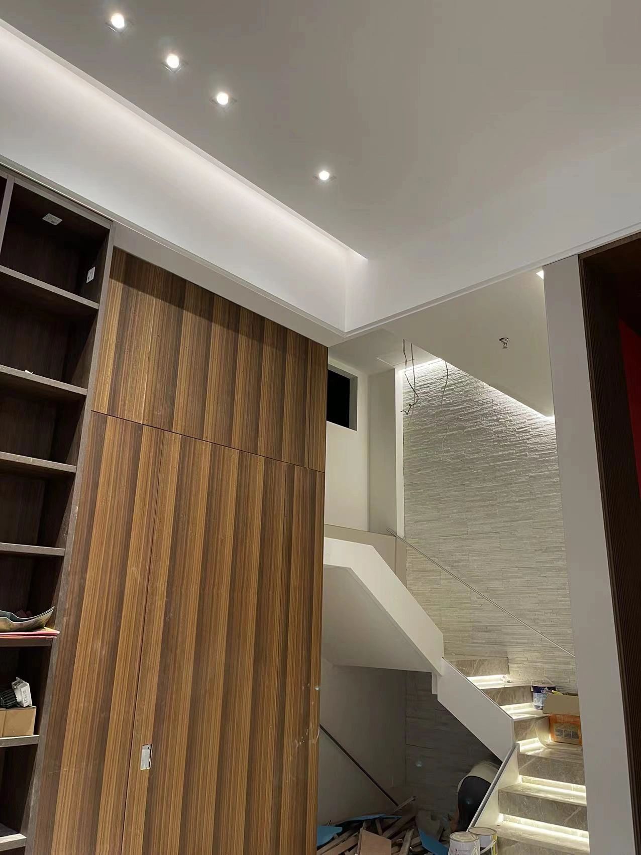 现代感,我们以黑白灰为主要色调。运用天花局部灯光,墙体隔栅的线条,体现现代简约感。