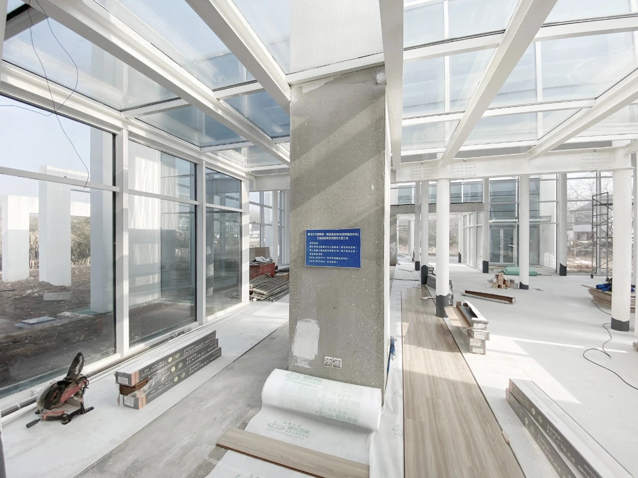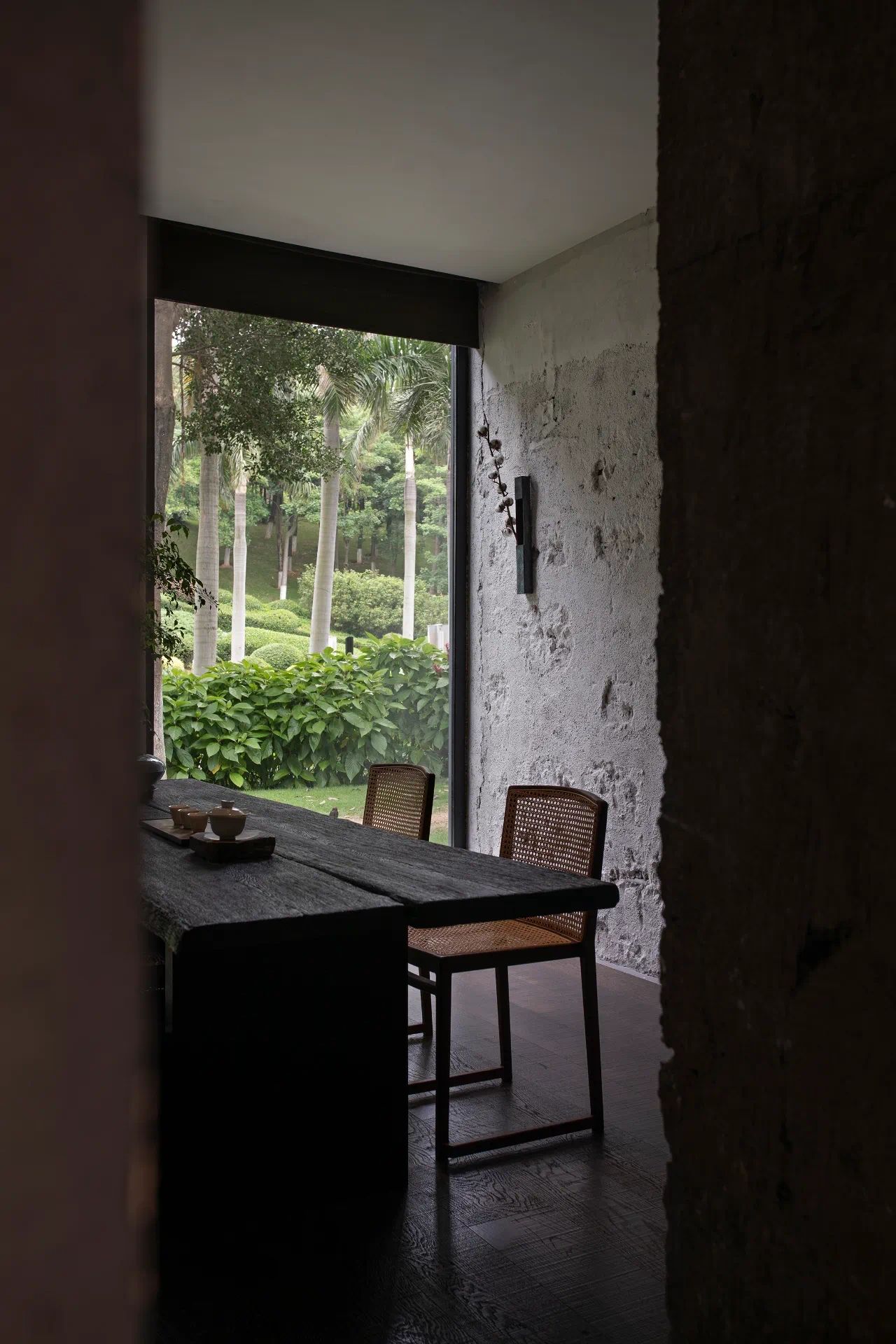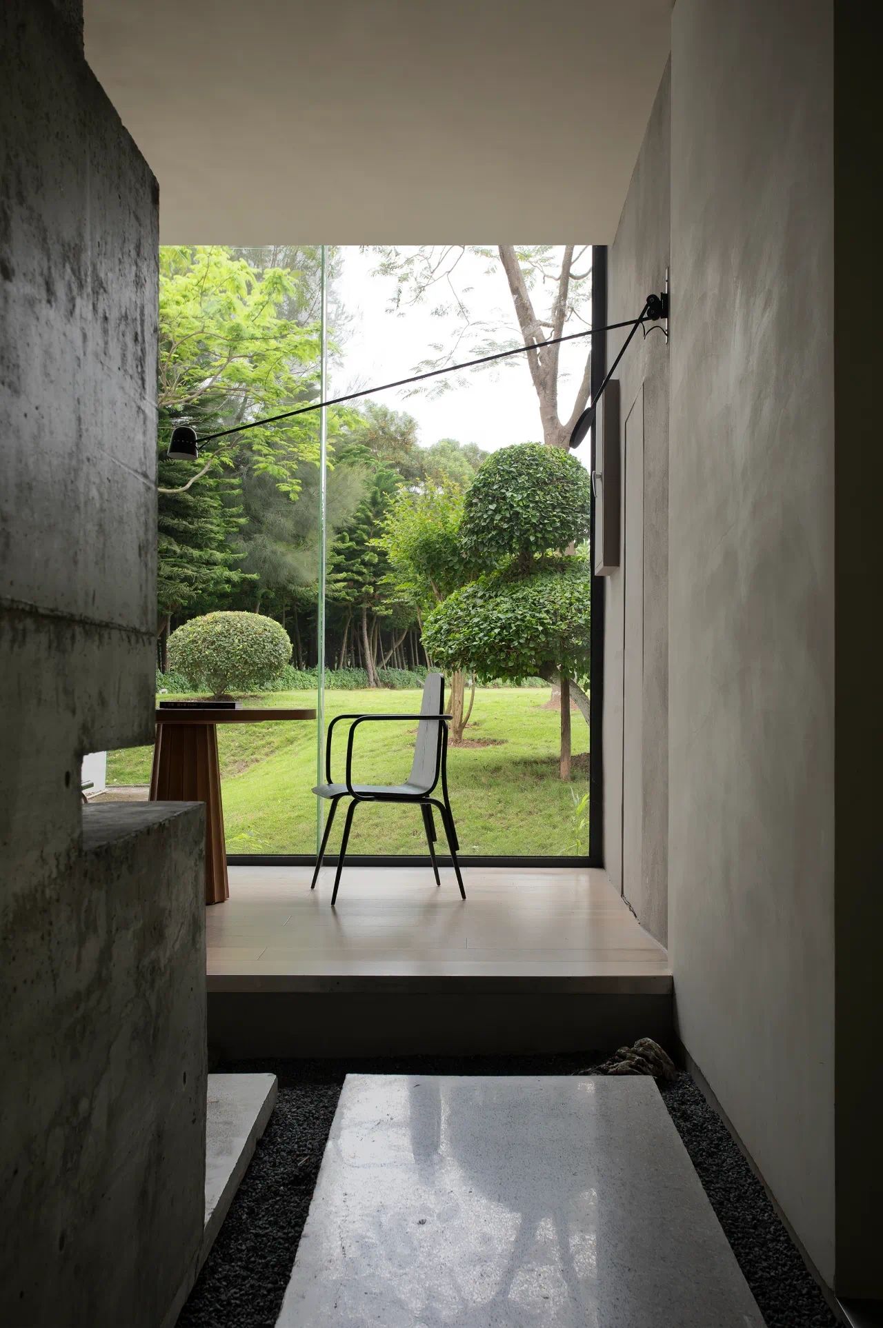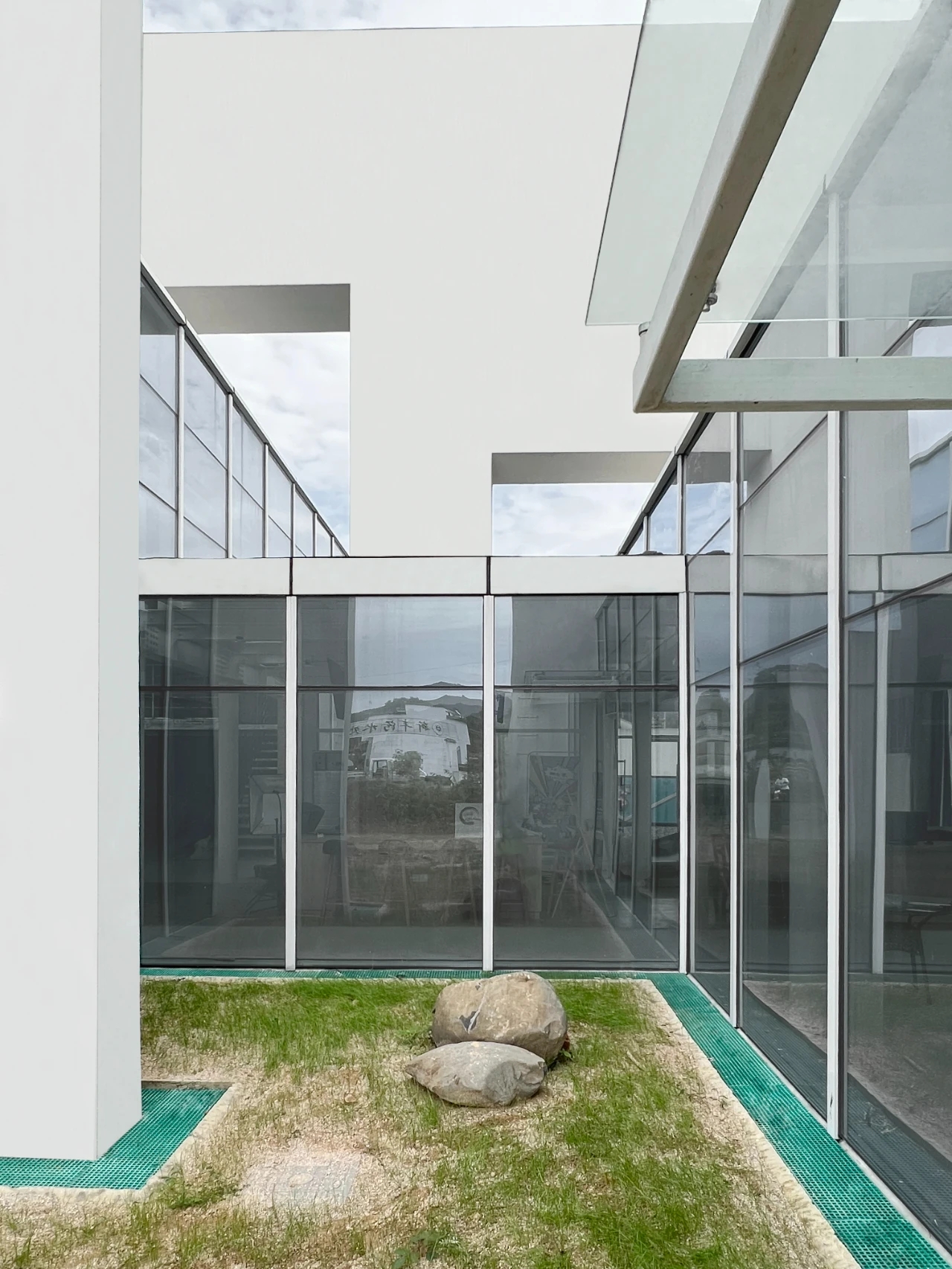 以“墙”文化为灵感载体,通过对墙的空间剖析,渲染新丰人文自然资源,体现新徽派文化地域特色。设计概念来自于项目用地对面老墙牌坊,将牌坊延长线放射到项目用地内后,形成轴线网络和一道新的墙体,墙“生”墙的想法由此展开:根据任务书要求,在新墙体中推拉出三个功能空间,并将它们串联在一起,形成建筑主体。所有空间均按照轴网1.5米模数布置,入口和幕墙窗体也是在墙体上做裁剪而产生。这样由一堵老墙对景延申得到新墙,一道新墙再通过设计裁剪,变形为建筑空间。设计遵循了我们对墙的理解:“墙内墙外即是空间;墙面即是立面背景;墙里即是门窗洞口;墙,创造了无形与有形;墙,变形。”。同时,也尝试了用现代设计方法在传统徽派建筑群落中共生的挑战。