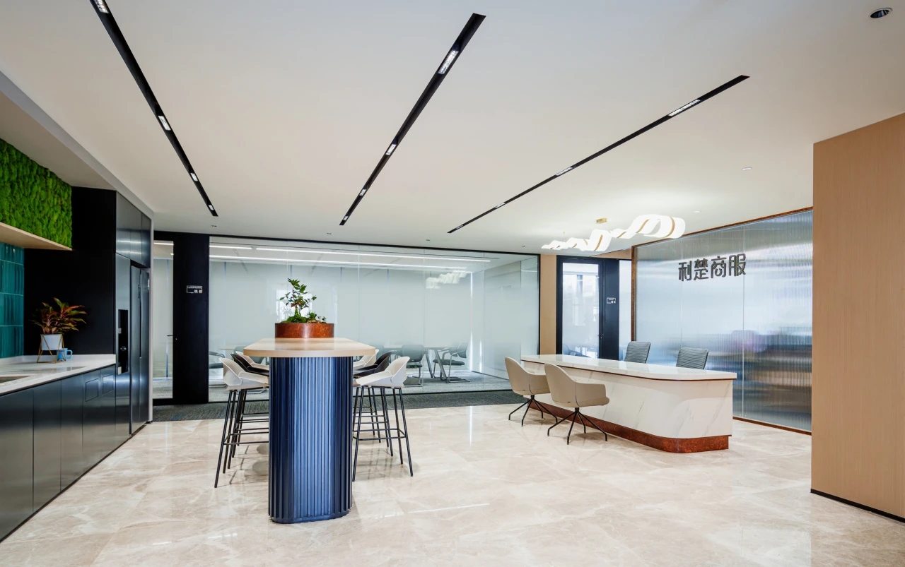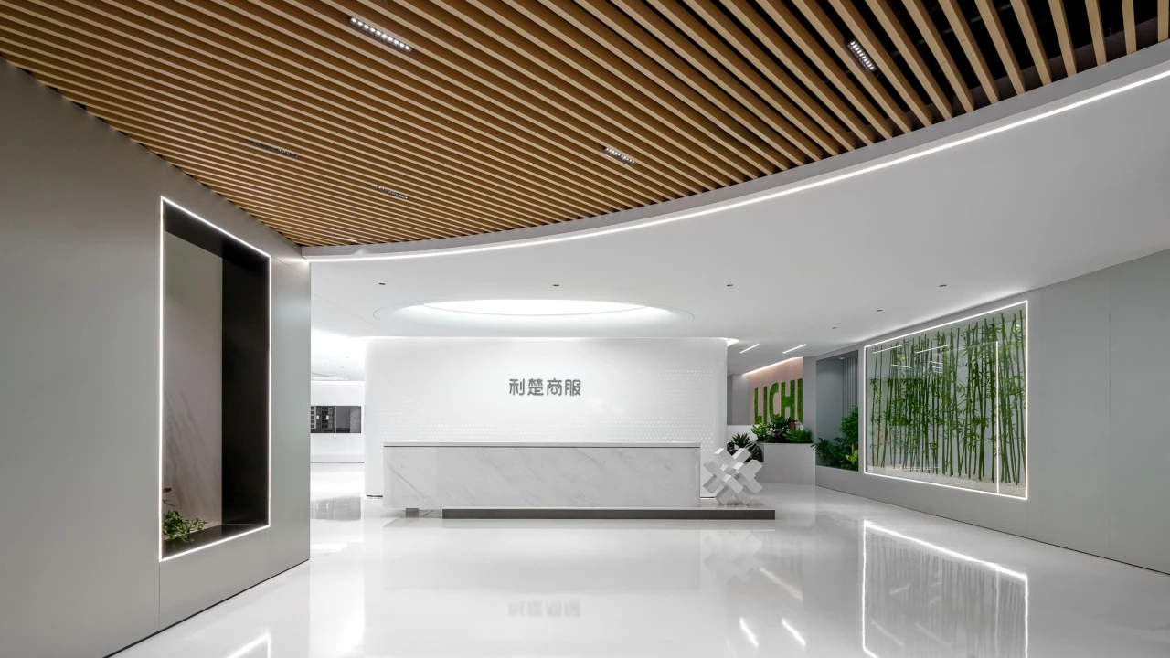 以专业而高端的品牌形象,塑造简洁大气的公司大堂,整个过程我们精确地执行照明与材质的安装,确保最终效果的满分呈现。