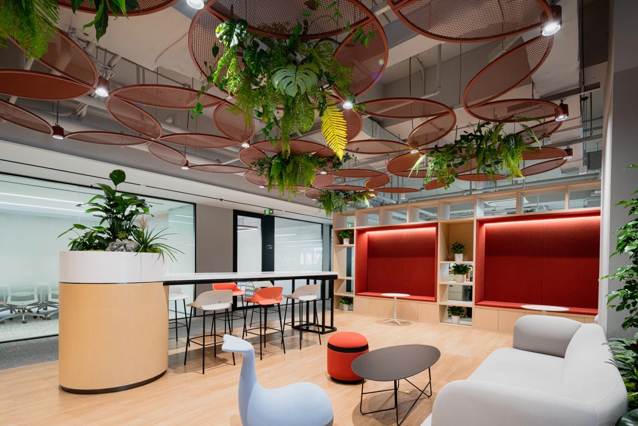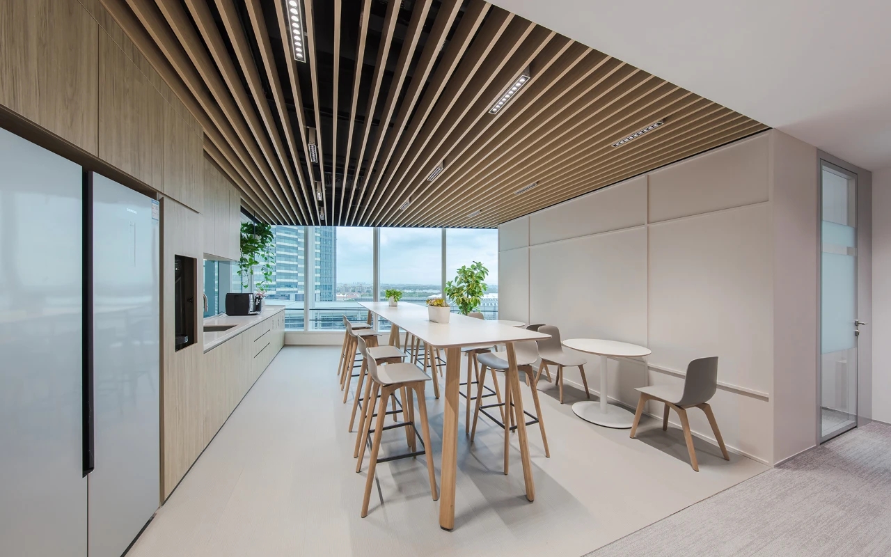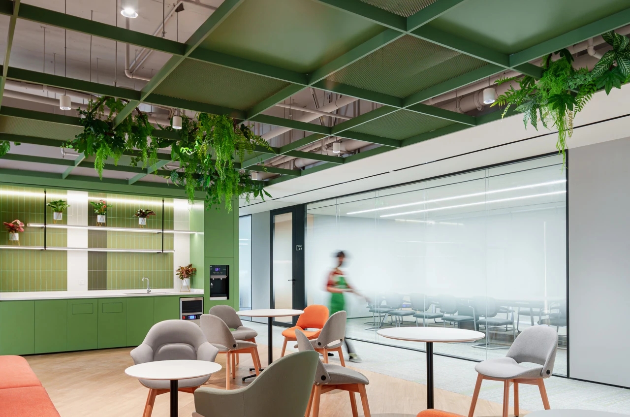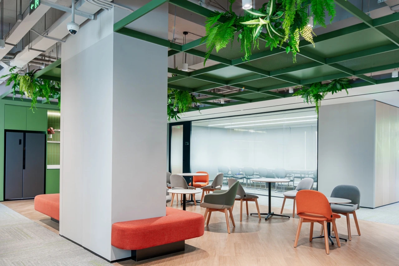 汲取自然为灵感,以盎然的色调与清新的光影,构筑令人心旷神怡的工作环境。我们通过细致入微的工艺,确保茶水区与休闲区,成为员工放松心境的生态社区。