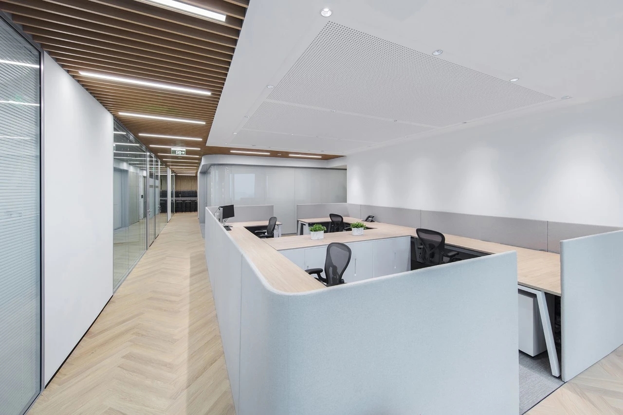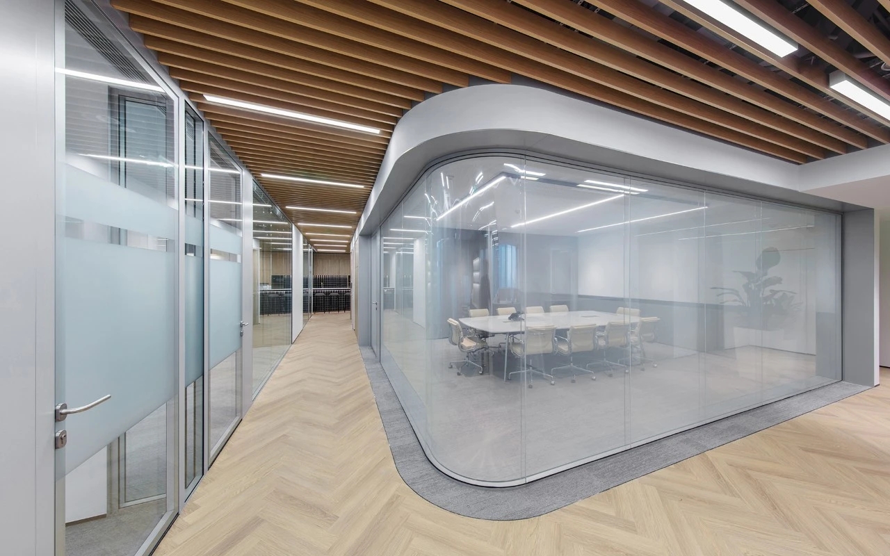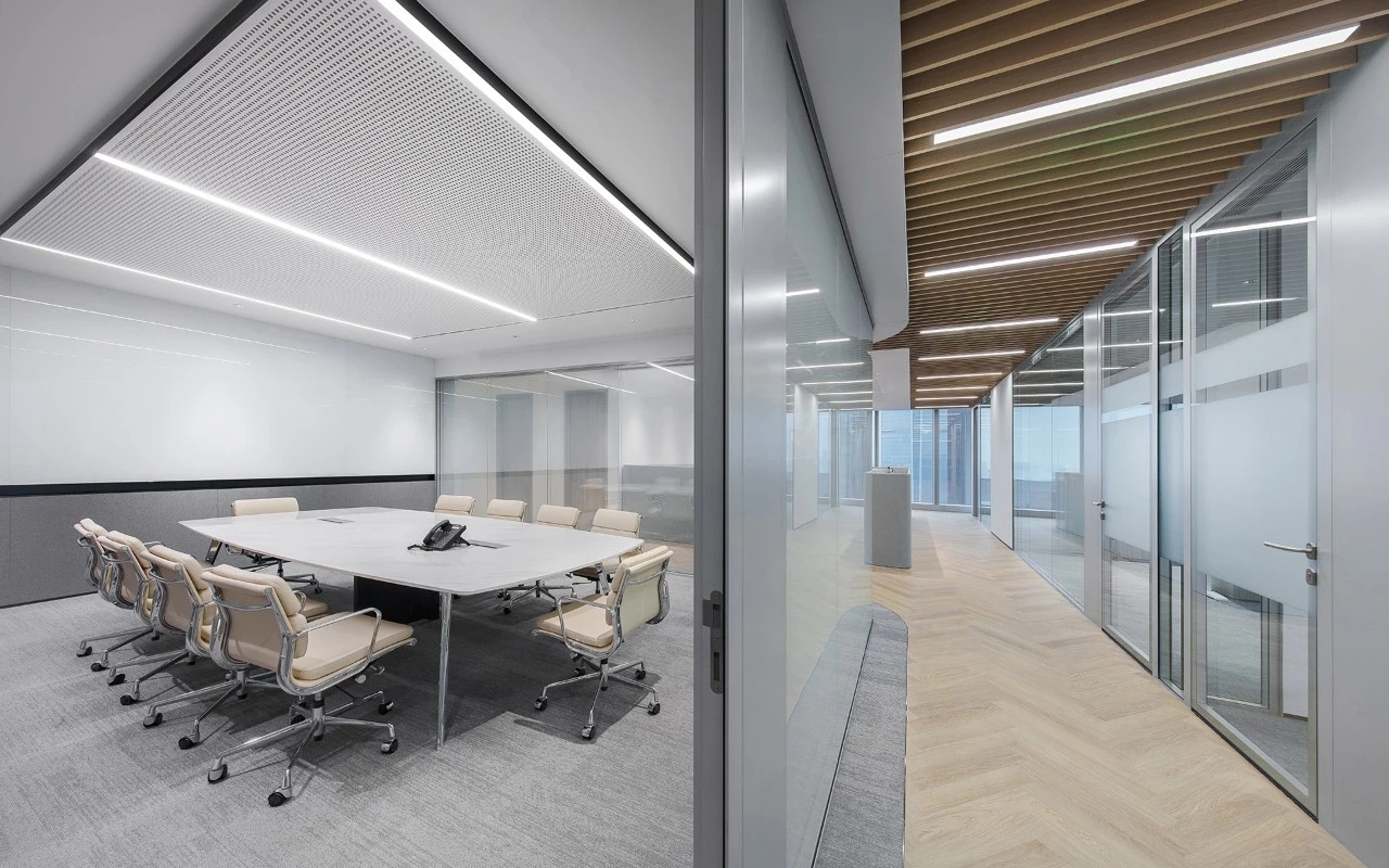 空间还具备极高的灵活性,能够适应多种工作安排,包括开放办公区和各种类型的会议室。