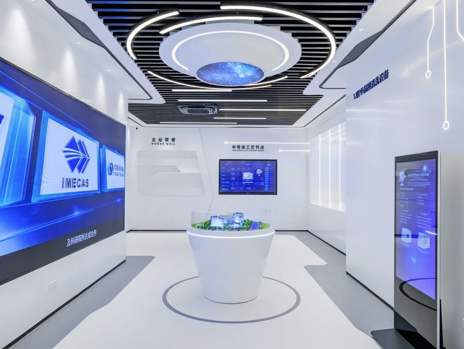 展厅以纯白为主旋律,辅以智慧的蓝色与深邃的黑色,营造出一种清新脱俗、科技感十足的空间氛围。监控屏幕与控制面板的巧妙布局,既保证了功能性的需求,又保持了整体空间的和谐统一,每一处细节都经过精心雕琢,既展现了现代设计的简洁明快,又不失科技感与未来感。