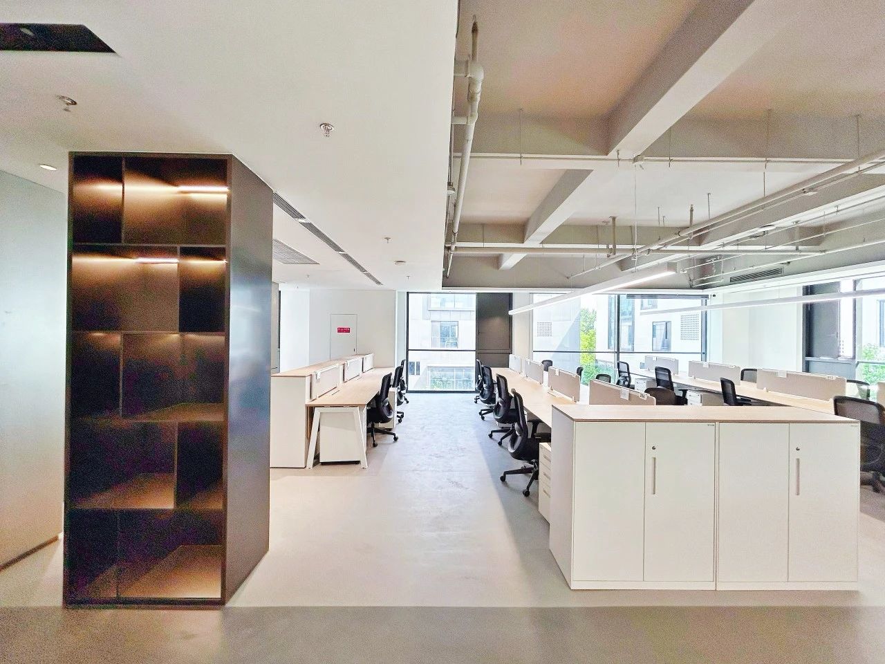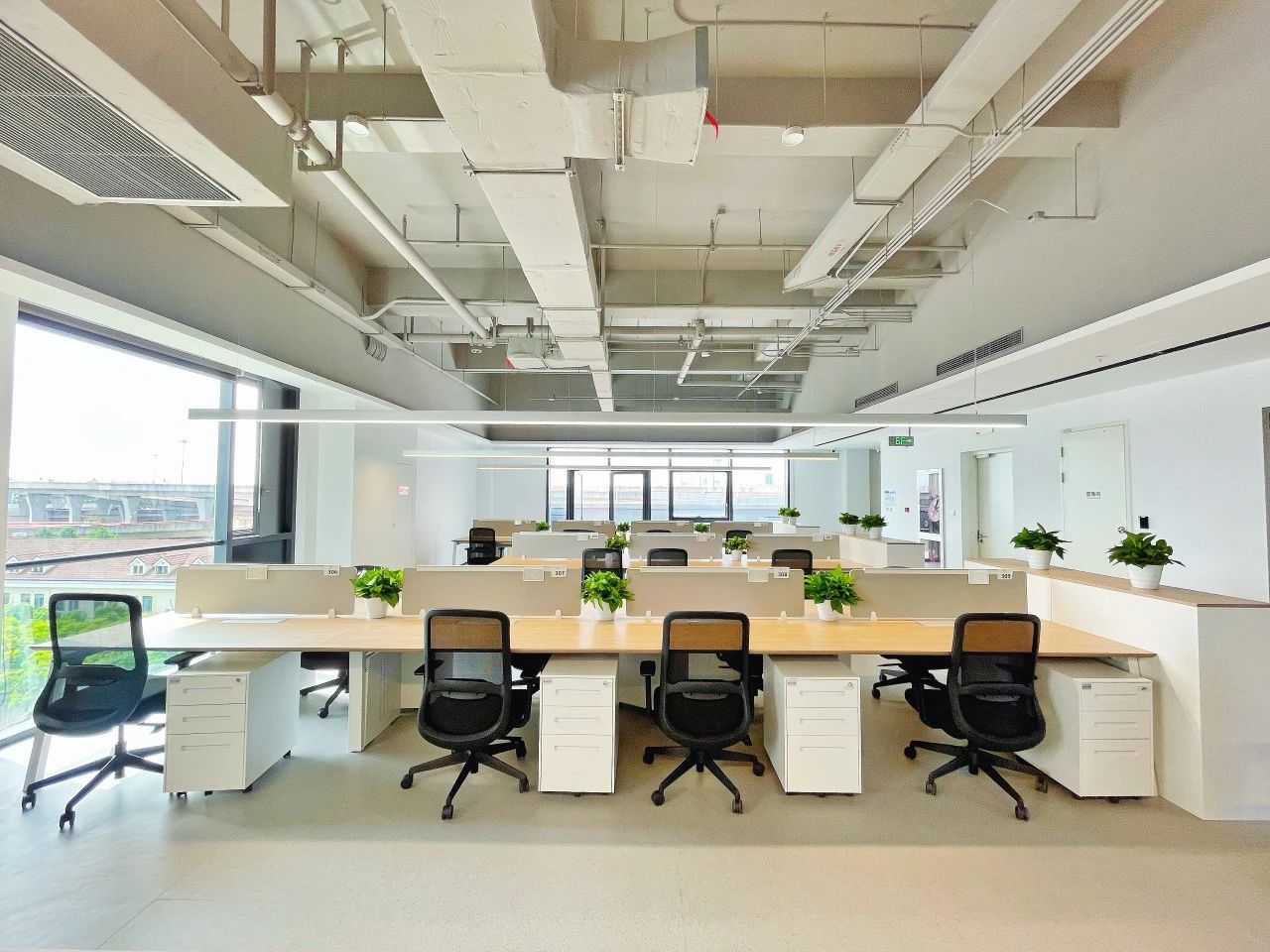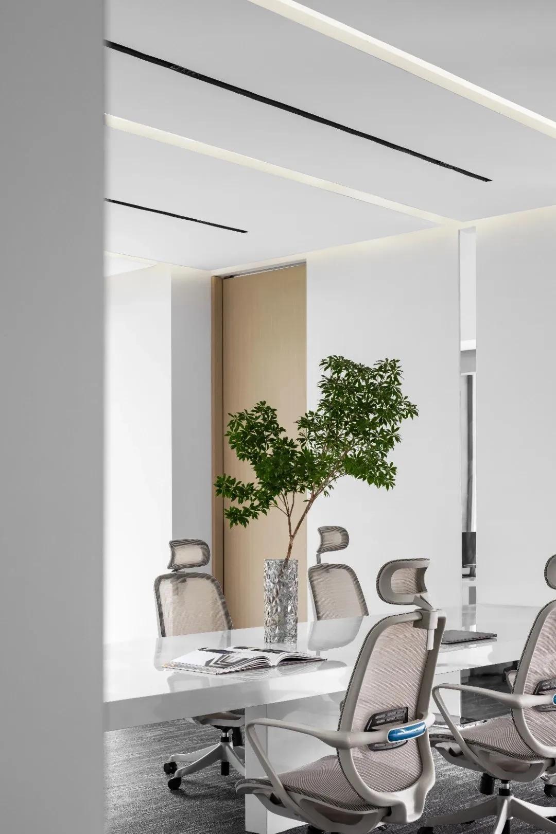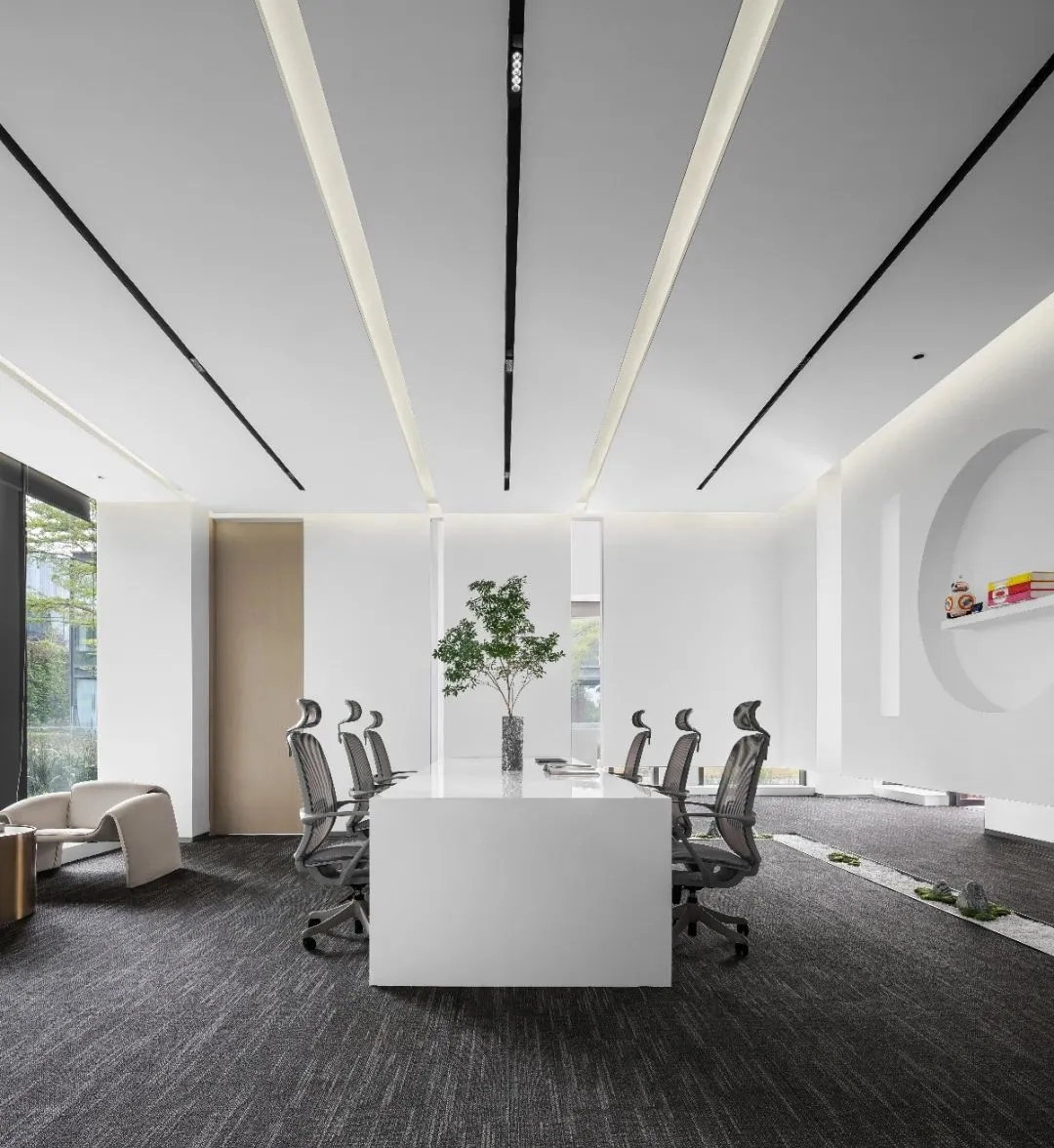 进入办公室,首先映入眼帘的是简洁的线条和纯净的色彩。白色的墙面搭配浅木色的桌面,营造出一种自然、清新的氛围。裸顶漆吊顶使室内空间更加通透宽敞。整个空间更没有过多的装饰,却让人感到无比舒适。