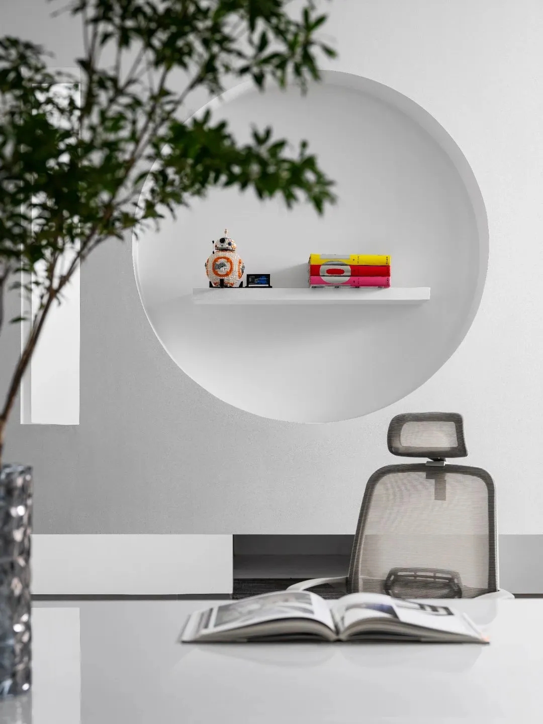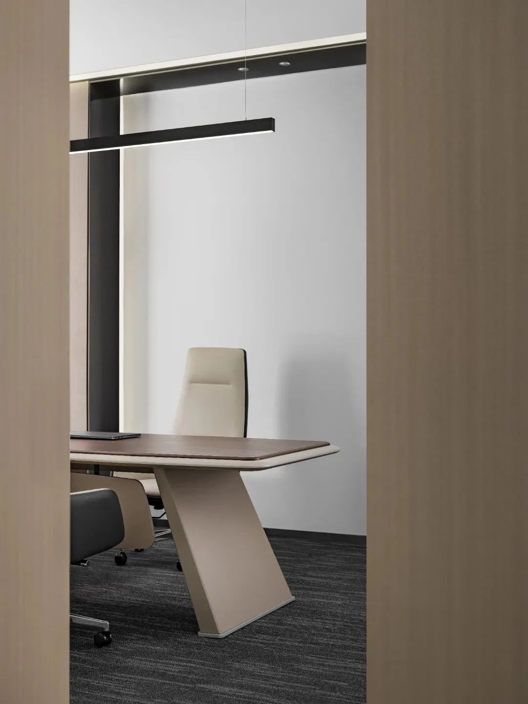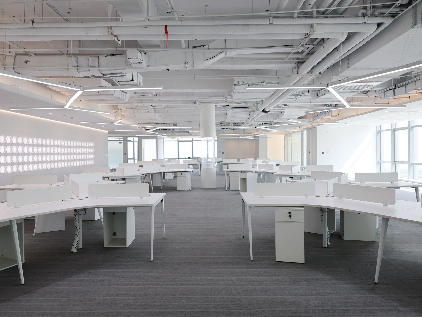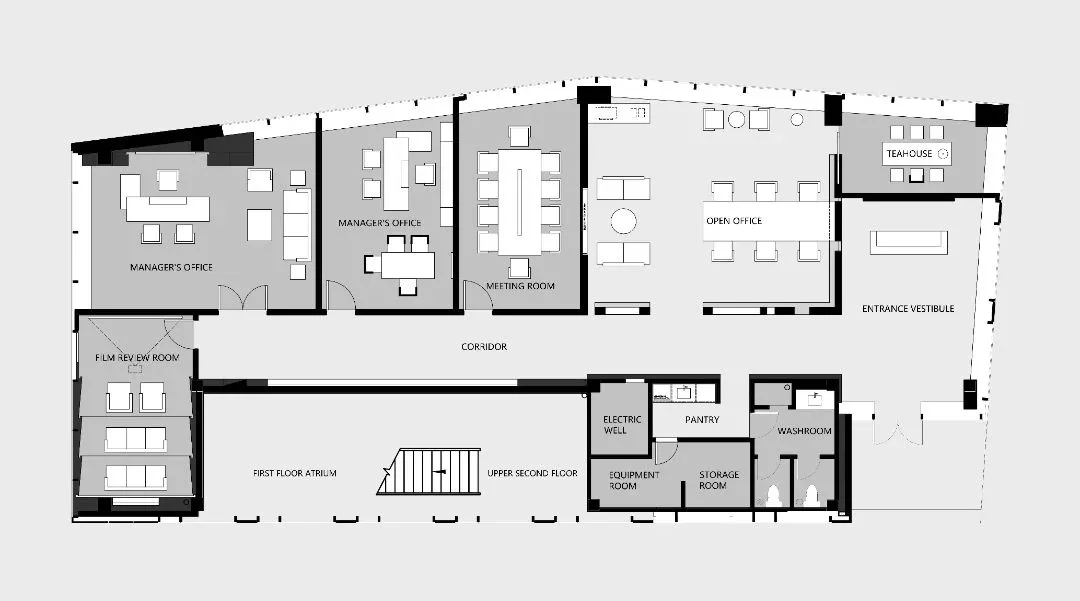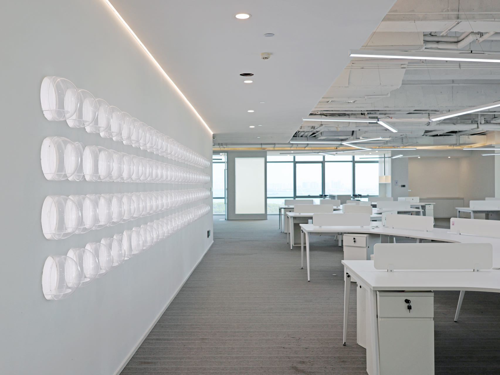 进入办公室,首先映入眼帘的是简洁的线条和纯净的色彩。白色的墙面搭配浅木色的桌面,营造出一种自然、清新的氛围。裸顶漆吊顶使室内空间更加通透宽敞。整个空间更没有过多的装饰,却让人感到无比舒适。