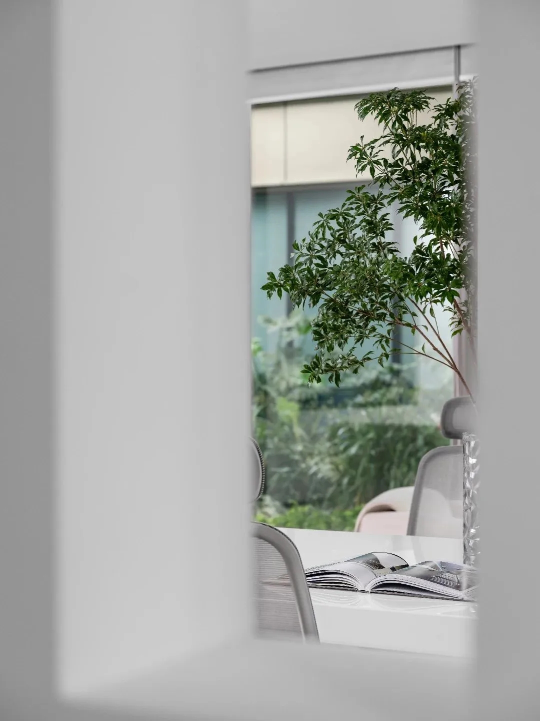 自然艺术,畅享自在引景入境,充分利用丰富的区域绿植,营造花园式办公场景,自然生机与光线一同超越界限,游走于场地之间,徘徊于内心深处。景观处放置由建筑大师 Jean-marie massaud 设计的螃蟹椅,以极简的设计和极具雕塑感的形态展露出优雅随性的气氛,空间内部的独立办公区和审片室则同样延续整体格调,达成空间独属的节奏与平衡。
