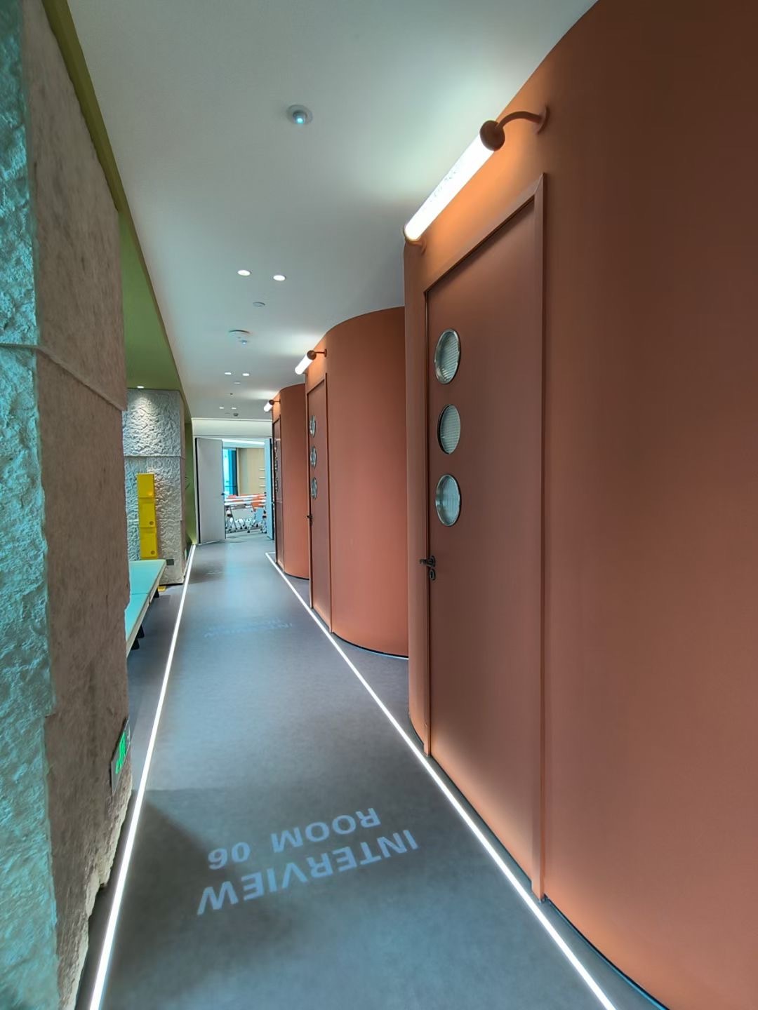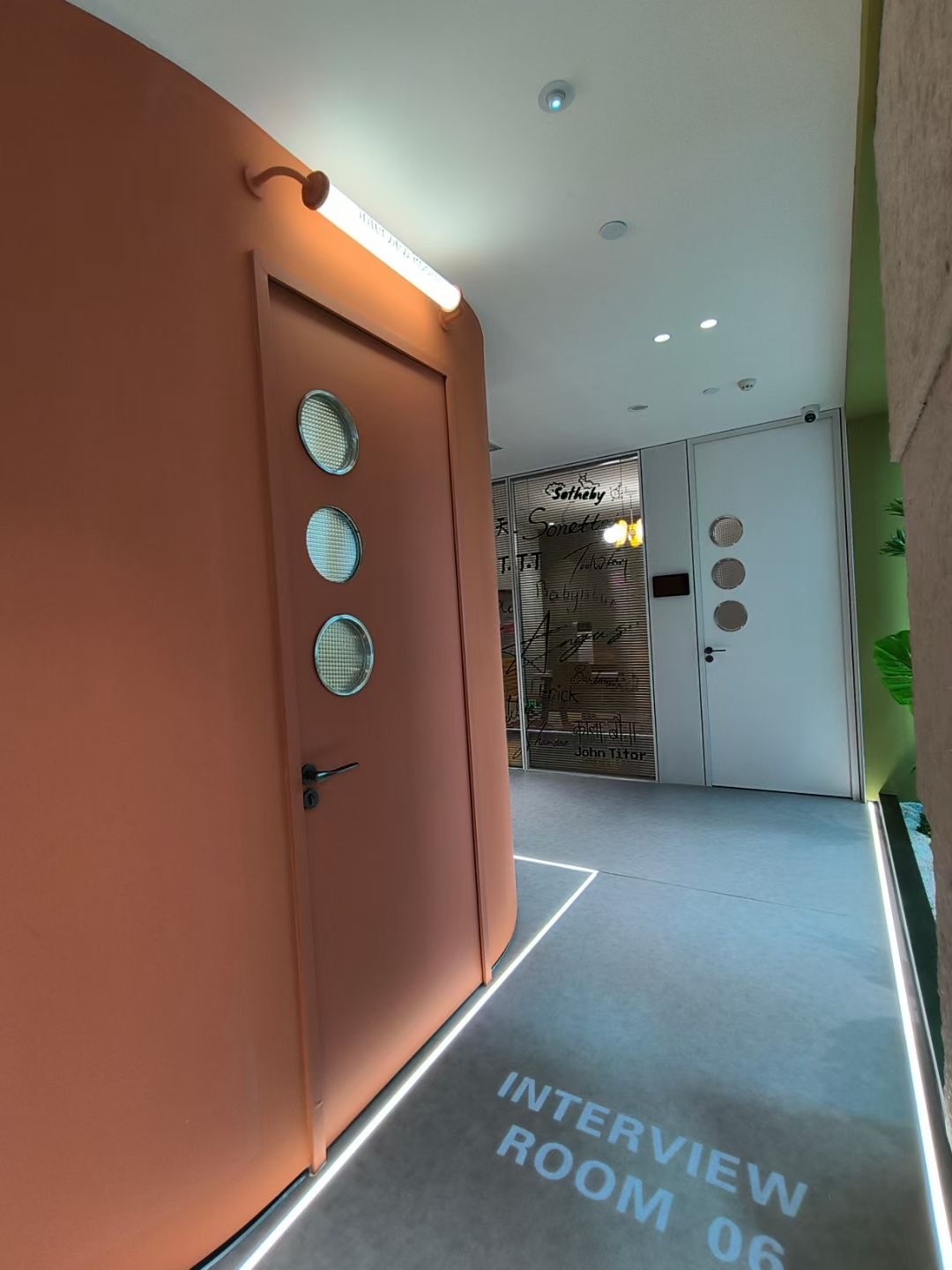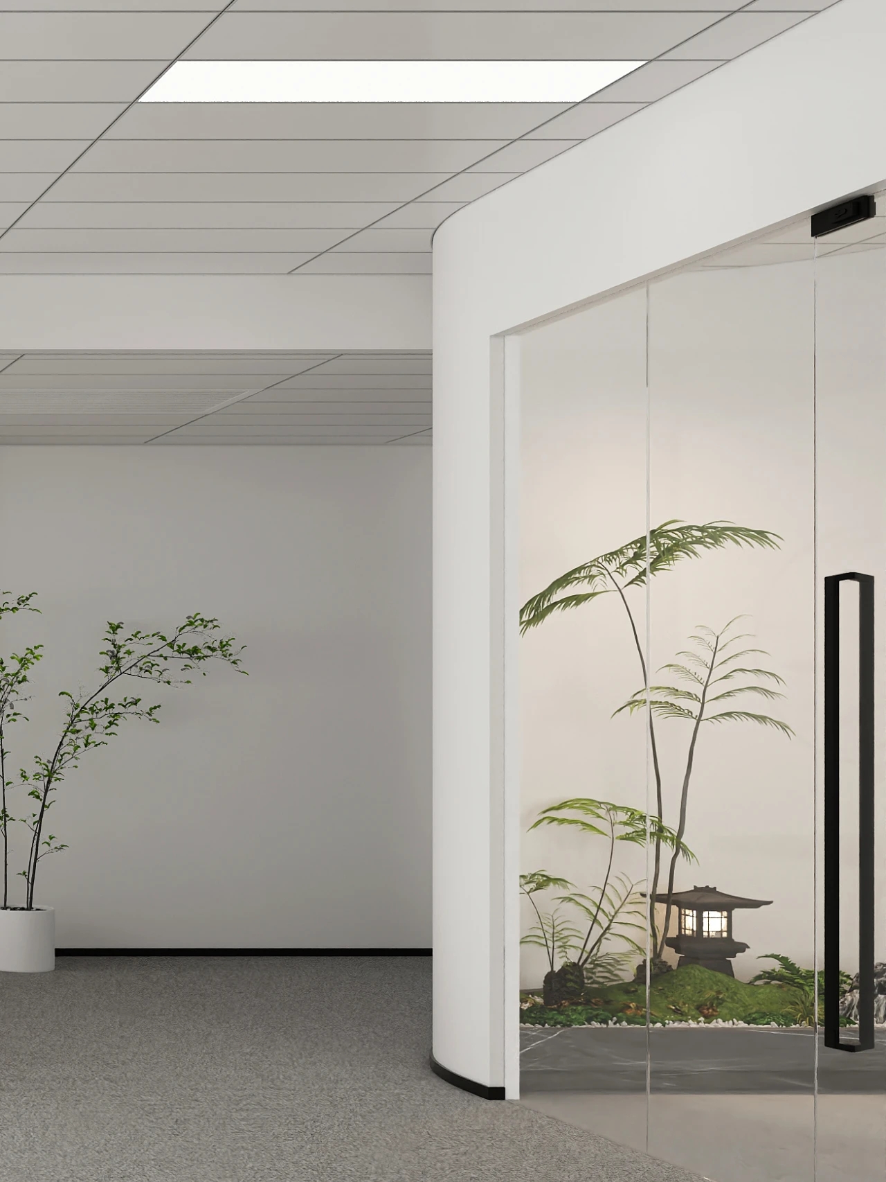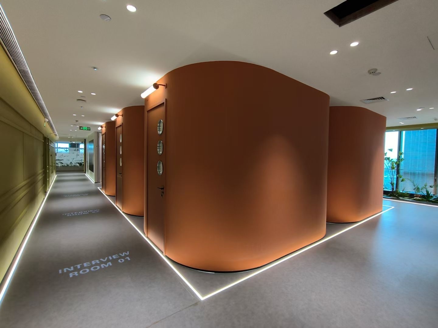 展厅作为前台的延展空间,风格色调继续保持一致。设计理念注重简约、科技感以及品牌展示。空间布局通透开放,利用线条灯带营造氛围,色彩上以蓝白相间为主色调。