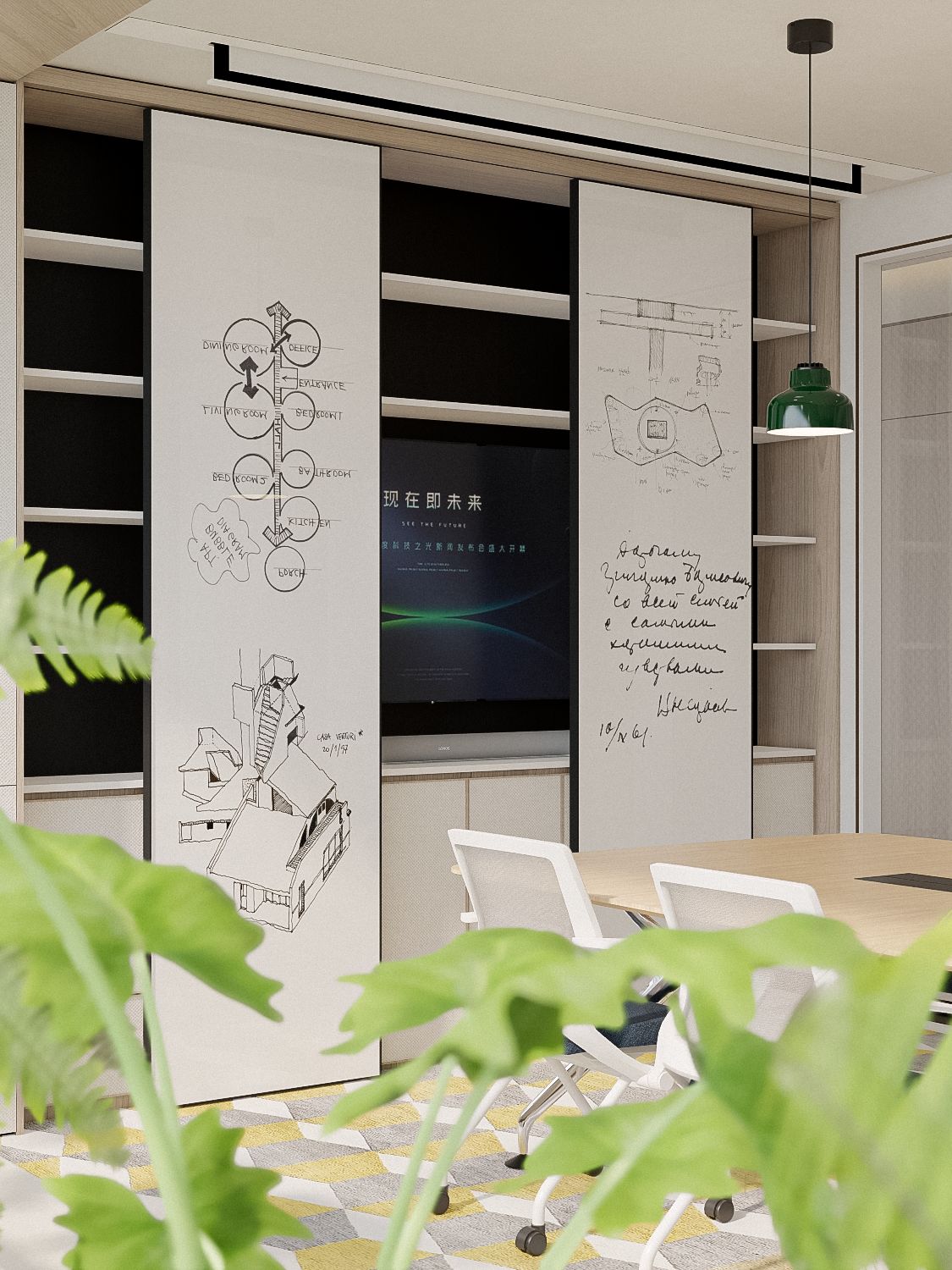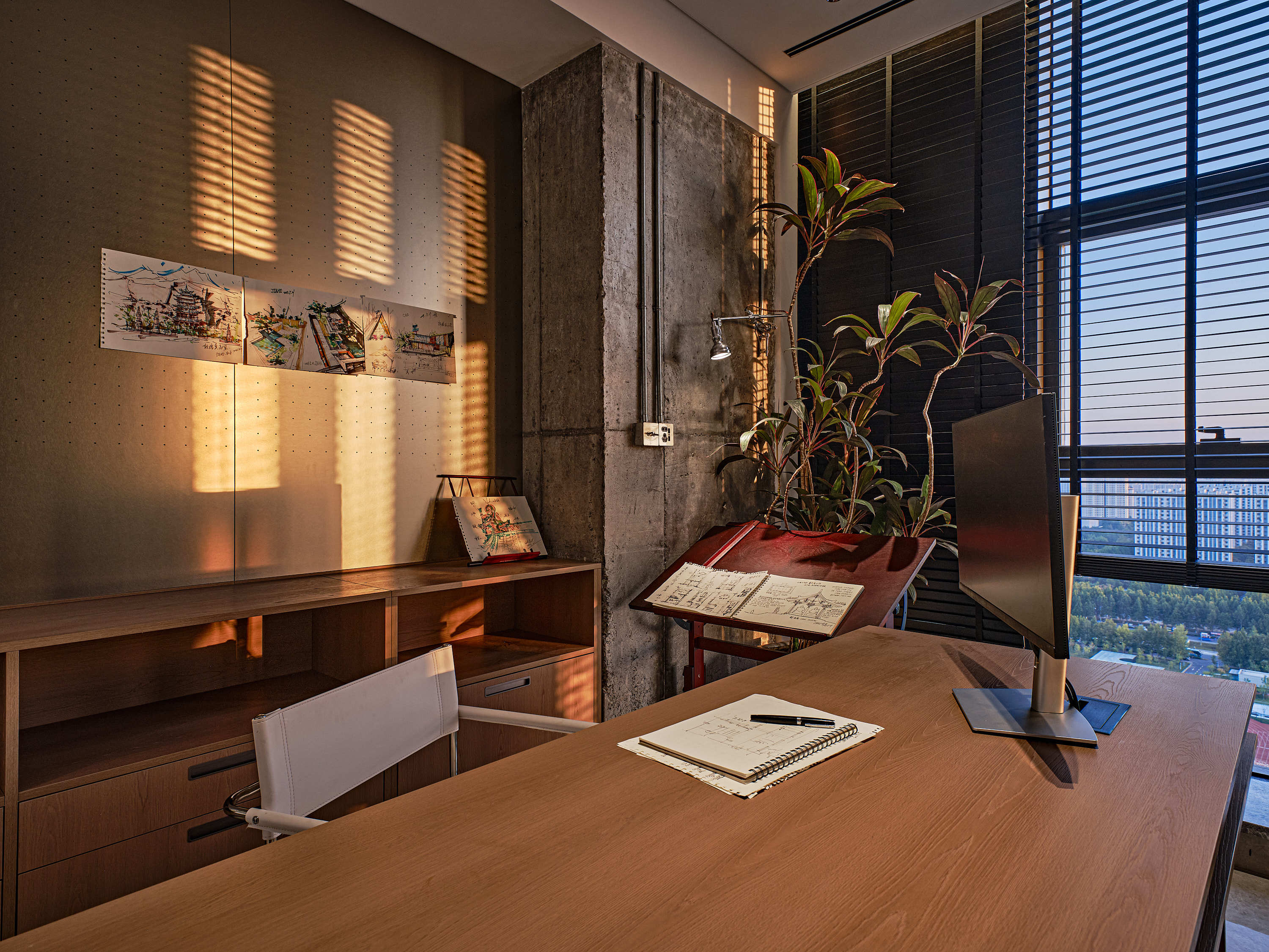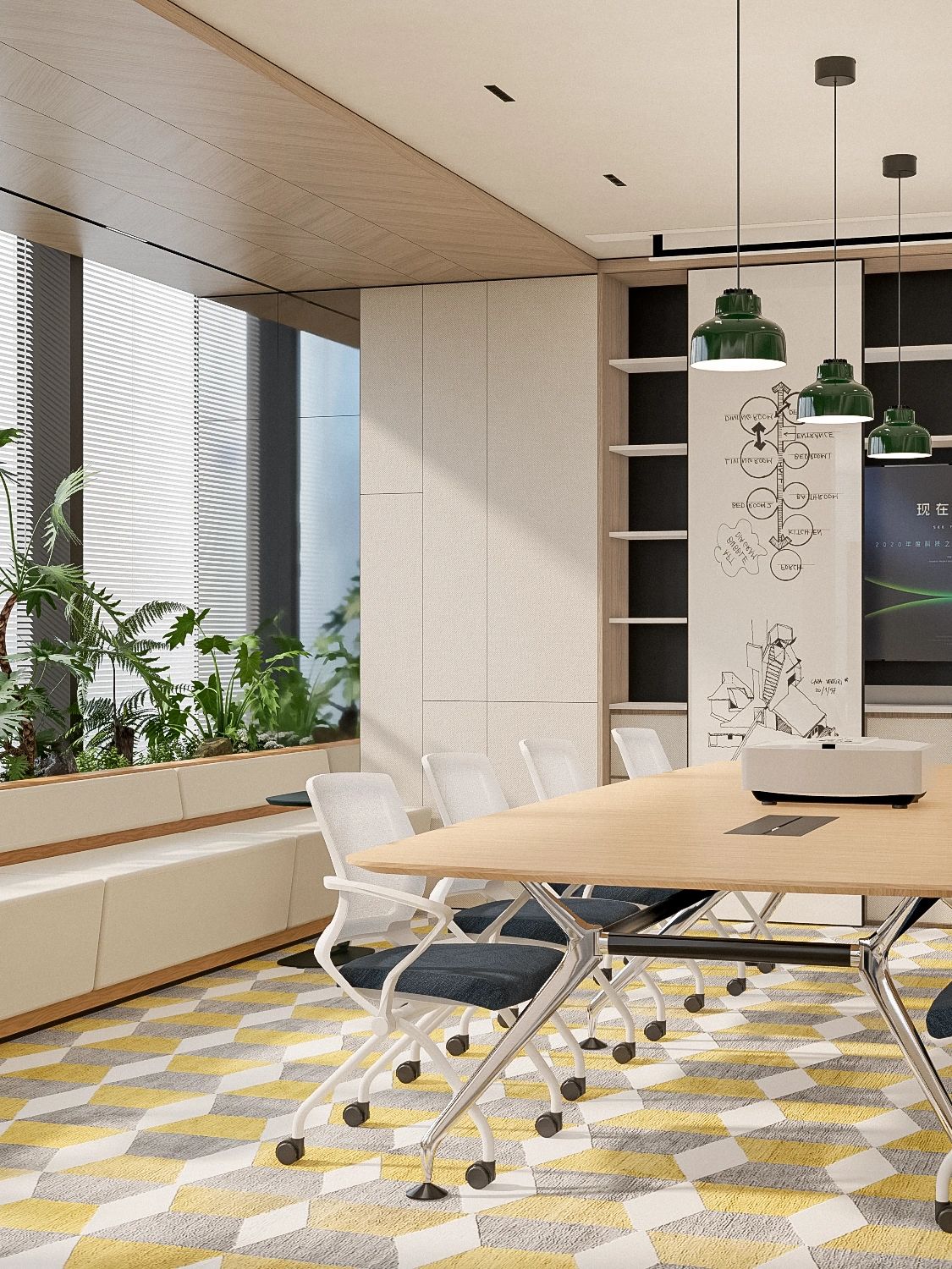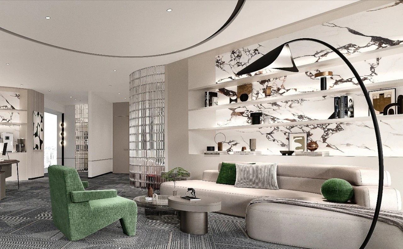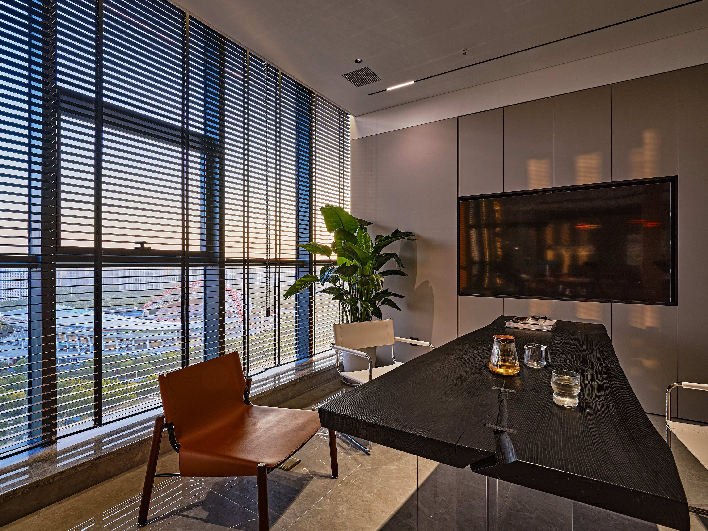 会议室的风格沉稳、大气,同时融合公司的文化氛围和品牌形象。选择了符合公司风格的颜色和元素,让参会人员感受到公司的文化内涵和品牌气息。经理室划分了办公区和休息区,空间宽敞明亮,于严谨的秩序与效率间巧妙注入舒适、轻松与明快的优雅气韵,让使用者在其中可放松身心、可高效工作、亦可缓解压力,赋予办公新乐趣。这是一个豪华的总经理室,整个空间采用了高级灰+木色的设计,给人一种稳重又不失温馨的感觉。头顶的吊灯和脚下的地毯相呼应,营造出一种奢华氛围。开阔的落地窗,能尽情享受空中极佳的视野与美景。