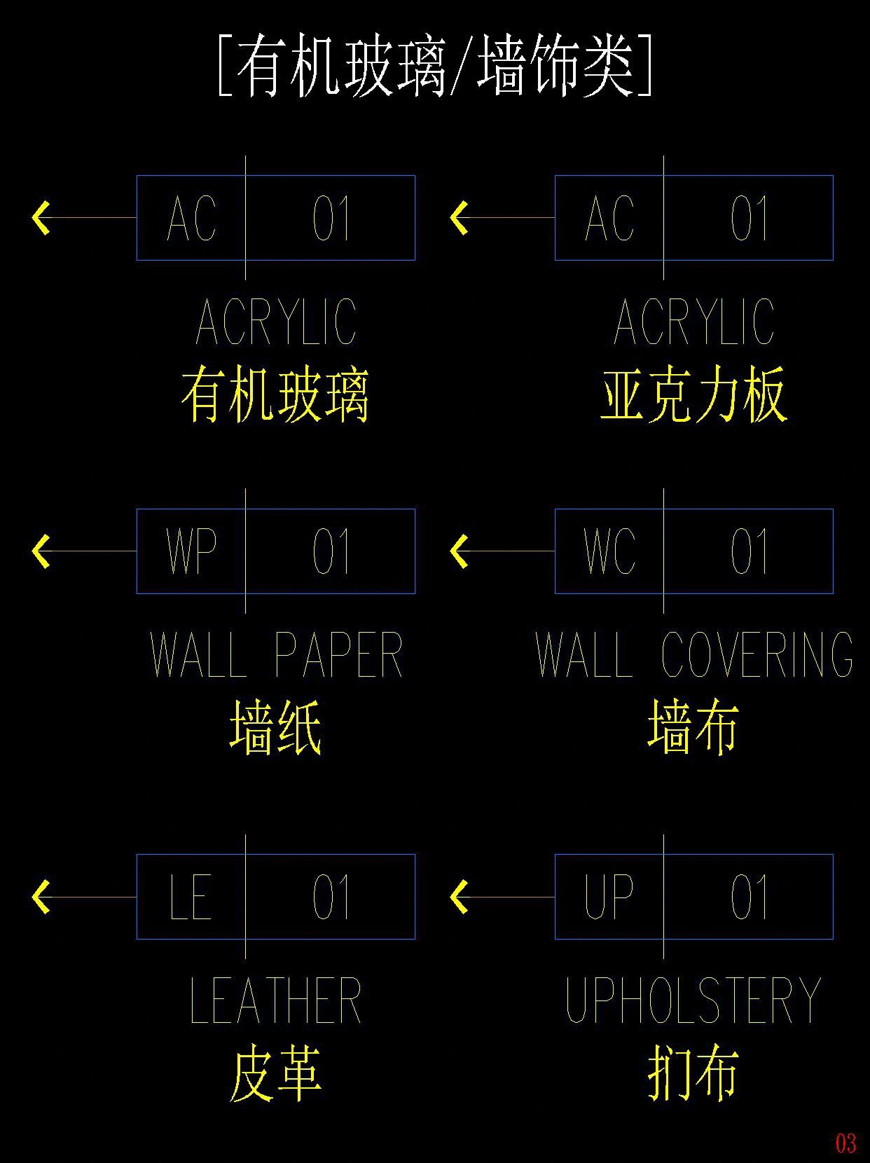 建筑室内设计 | 材料编号中英文对照表