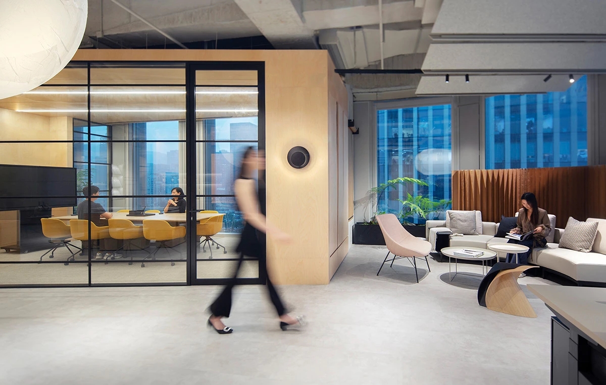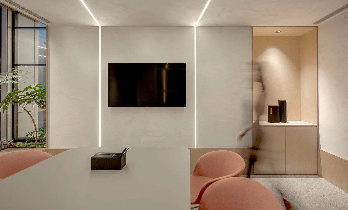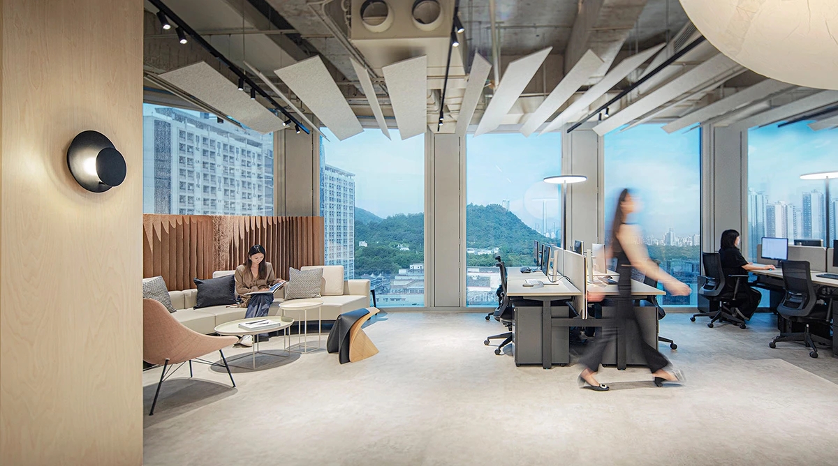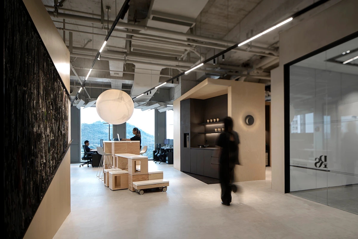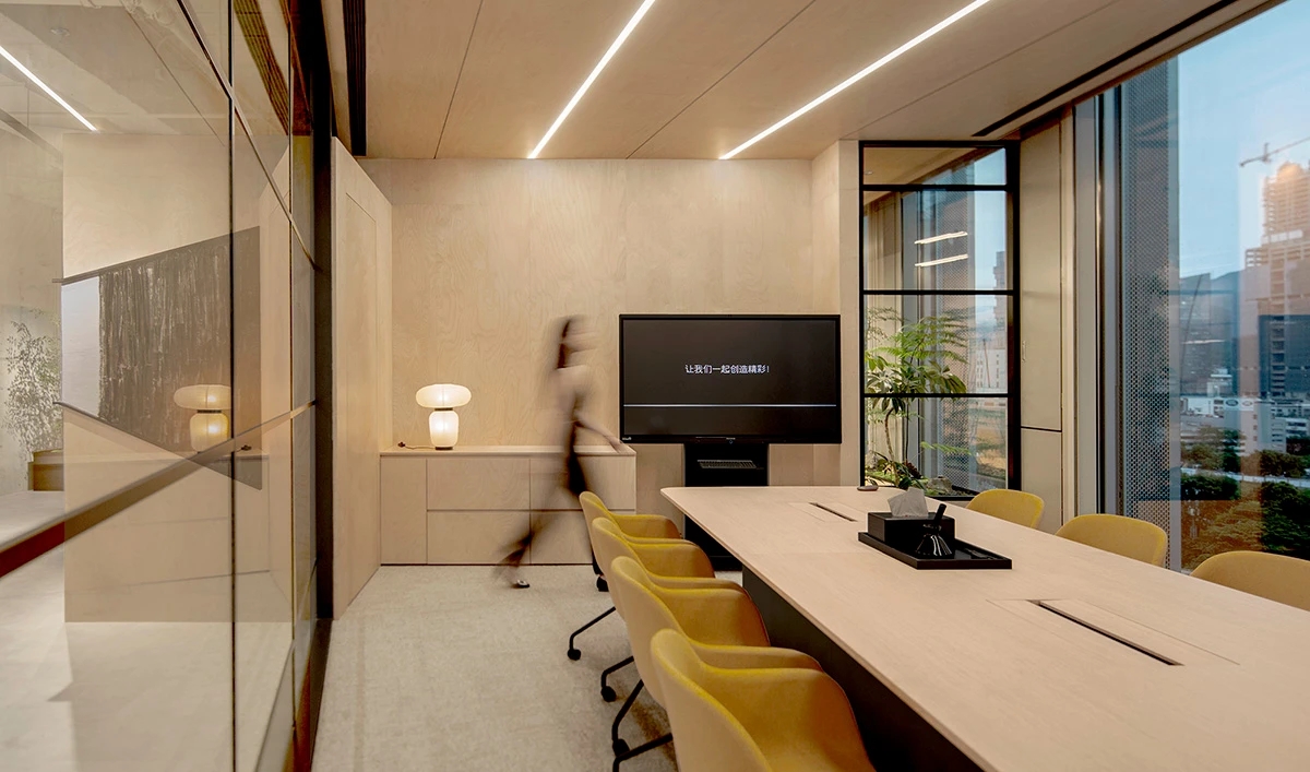 天然的木色、黑色和深摩卡色调、鲜艳的赭石黄和珊瑚色搭配,生物照明效果营造出动态阴影效果。集成智能照明和MAXHub技术确保空间可适应不同的任务。一工深圳新办公室体现了可持续性、创造力和功能性,营造了一个协作和灵活的环境。