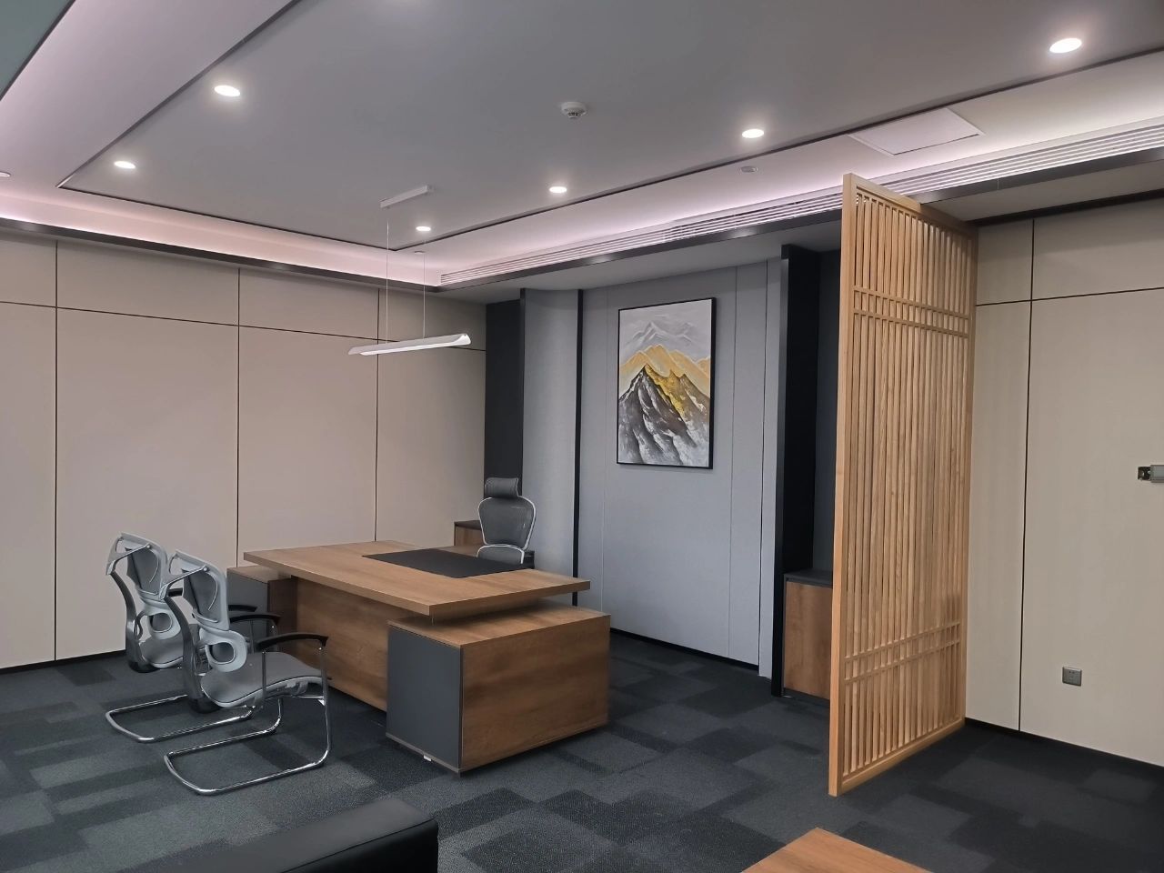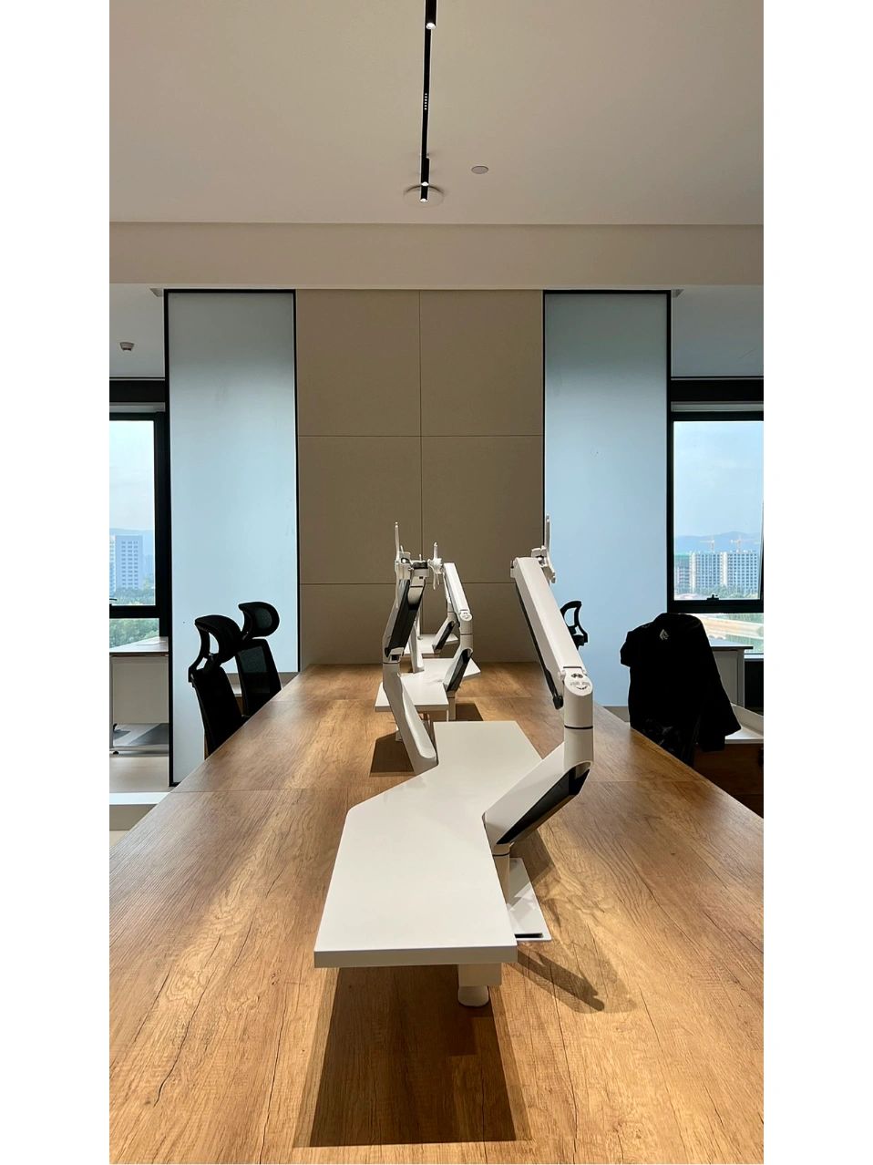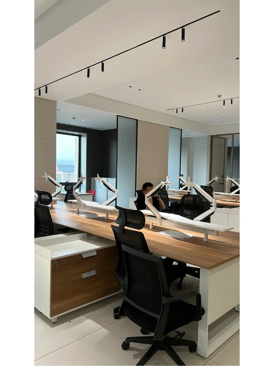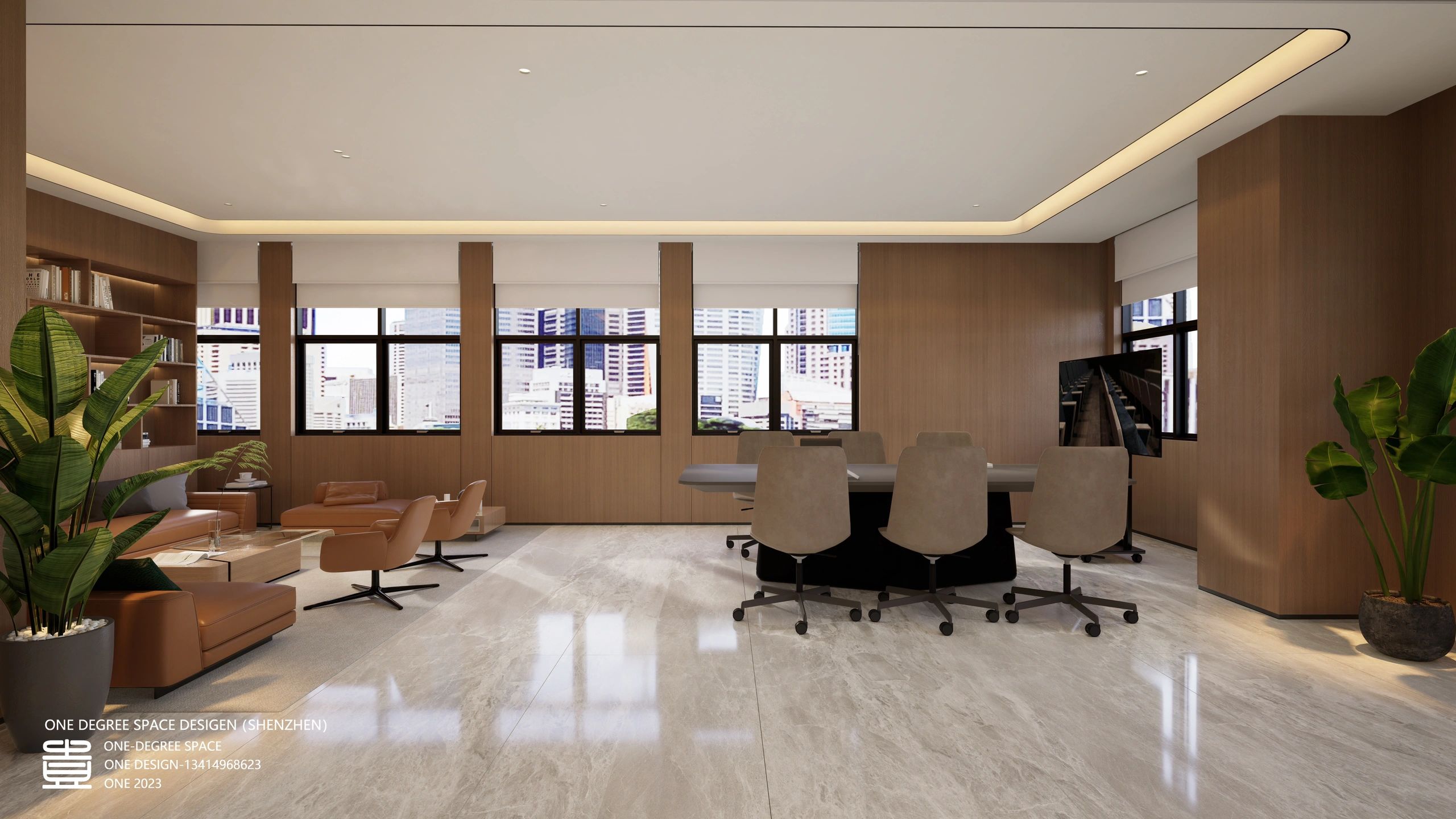 天然的木色、黑色和深摩卡色调、鲜艳的赭石黄和珊瑚色搭配,生物照明效果营造出动态阴影效果。集成智能照明和MAXHub技术确保空间可适应不同的任务。一工深圳新办公室体现了可持续性、创造力和功能性,营造了一个协作和灵活的环境。