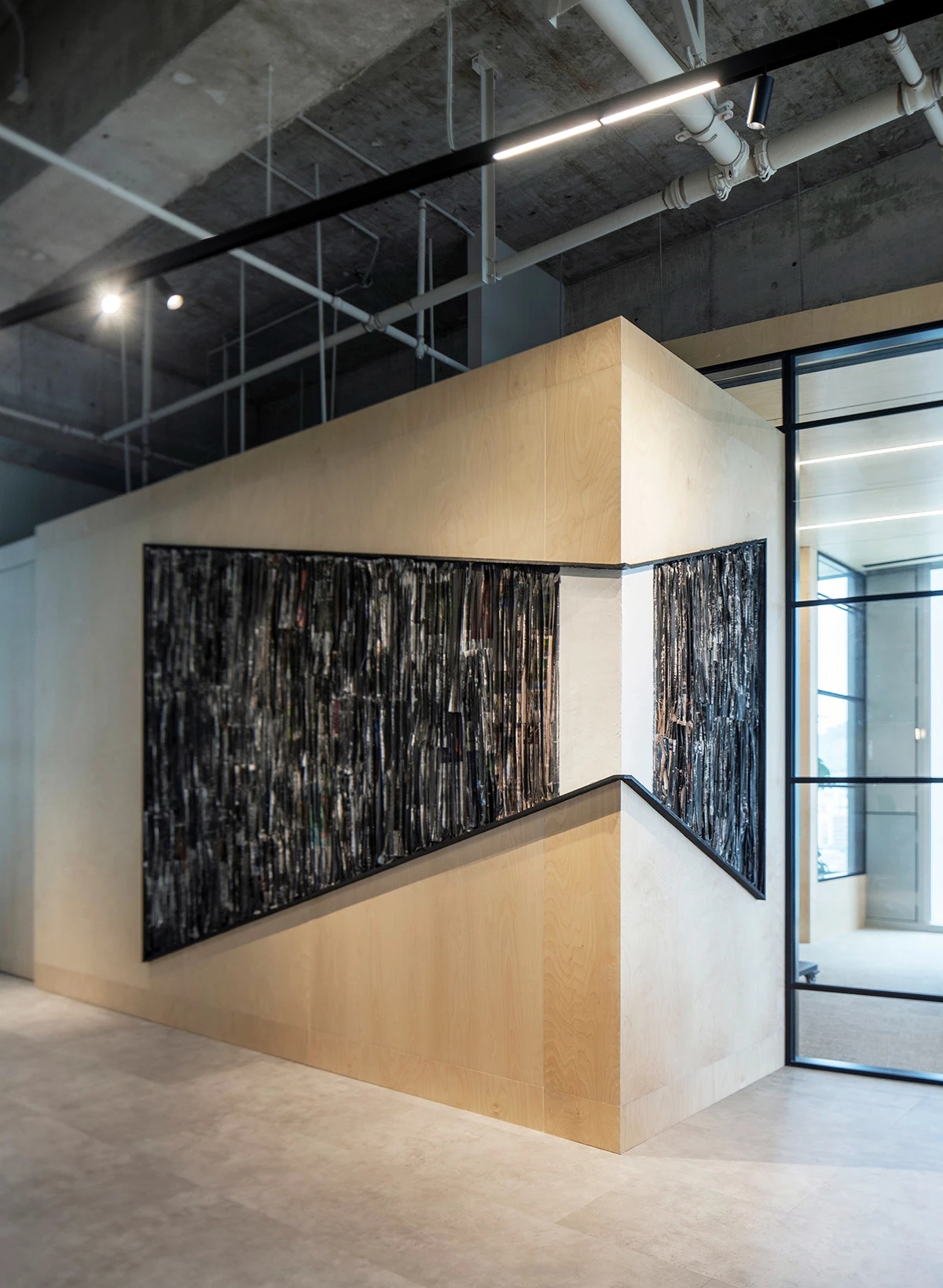一工公司深圳新办公室的设计洋溢着青春能量、温暖又坚持了可持续性特色,用简单的材料打造出的空间充满活力和吸引力。主要饰面釆用了海洋板,它与天花、横梁和结构墙中裸露的天然混凝土相互协调,用自然的温暖平衡了工业的原始感。