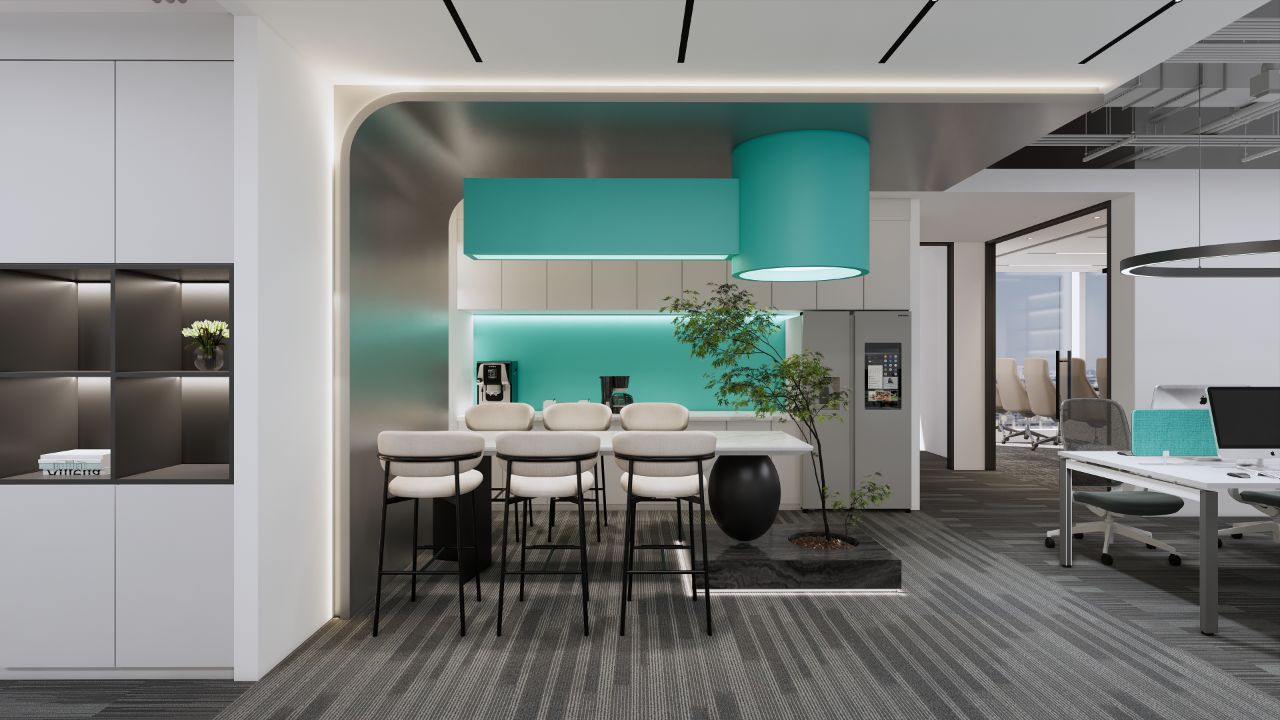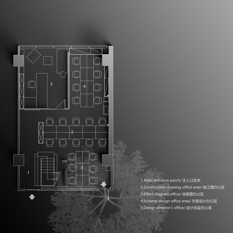 门口有杜邦纸形象墙,内嵌发光灯带,在步入空间之前吸引大家侧目一望,增加探索空间的好奇心。在开放的空间中,经过深思熟虑,材料的使用呈现设计的透明和真实性,引导员工根据路径进入对应的办公区。保证使用的基础上,舍弃复杂的装饰结构,采用极简设计手法,并让艺术元素与空间相融合,从而打造全新的办公体验。光透过不同的结构、材料、留下不同的光与影构造,在明与暗之间交替、跳跃,通过光线的走向、落影,把整个空间的设计手法展示出来。