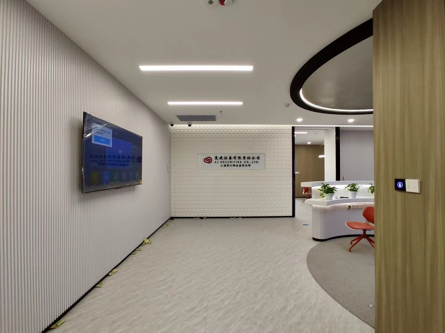 以企业的文化和元素,结合现代,科技的手法,趣味性的体现出企业对人文关怀,轻松活力的新工作环境,怎么与当下疫情下的安全卫生及防控相结合。整体设计打破了传统工作环境的氛围,设计师打造出一个“以人为本”的办公,展示,休闲和生活的个性空间,助力客户的进一步发展、创新和团队凝聚力。在这里,每位员工都能找到最适合自己的工作空间,以自己喜爱的方式和愉悦的心态完成每天的工作。Saving More Lives 是企业的目标,也是这次设计师要在空间里体现的主题。在电梯出来,一步入半圆弧的接待前厅,马上看到的是以安全气囊元素为主创意的,带灯光变化的半弧造型墙,时尚大气。在这纯粹的黑白灰空间里,一个纯白色飞驰动感造型的前台安安静静的摆设在那,在不使用的时候,它也是一个时尚的艺术品。和背镜墙相结合,体现了速度与安全的设计理念。