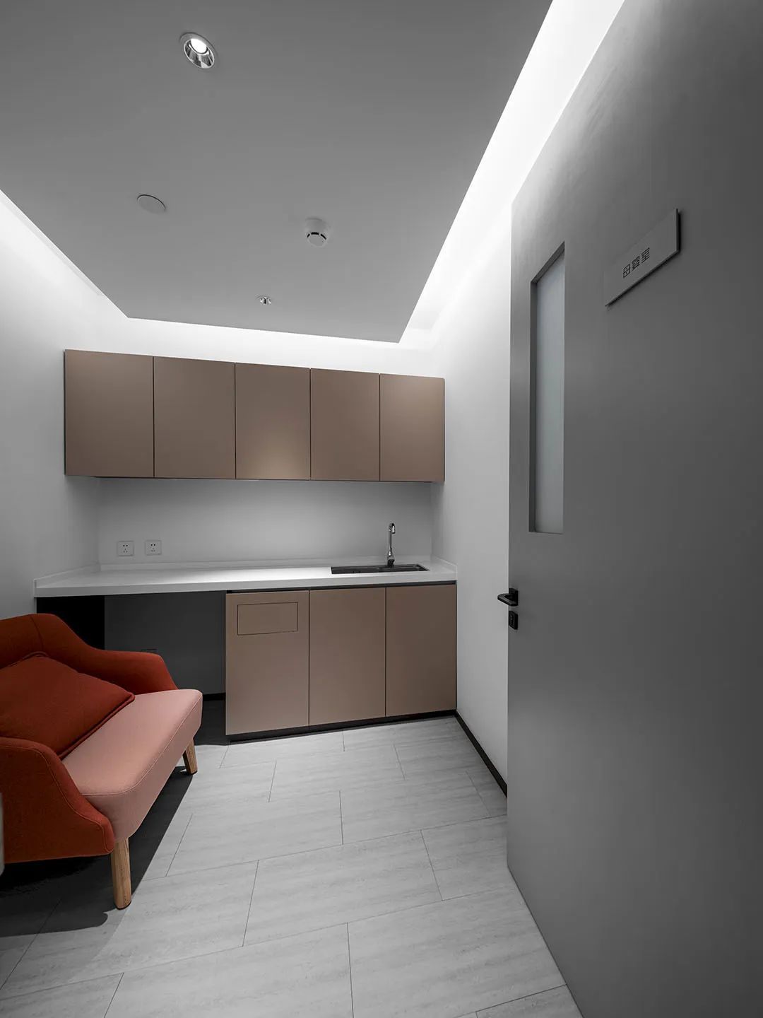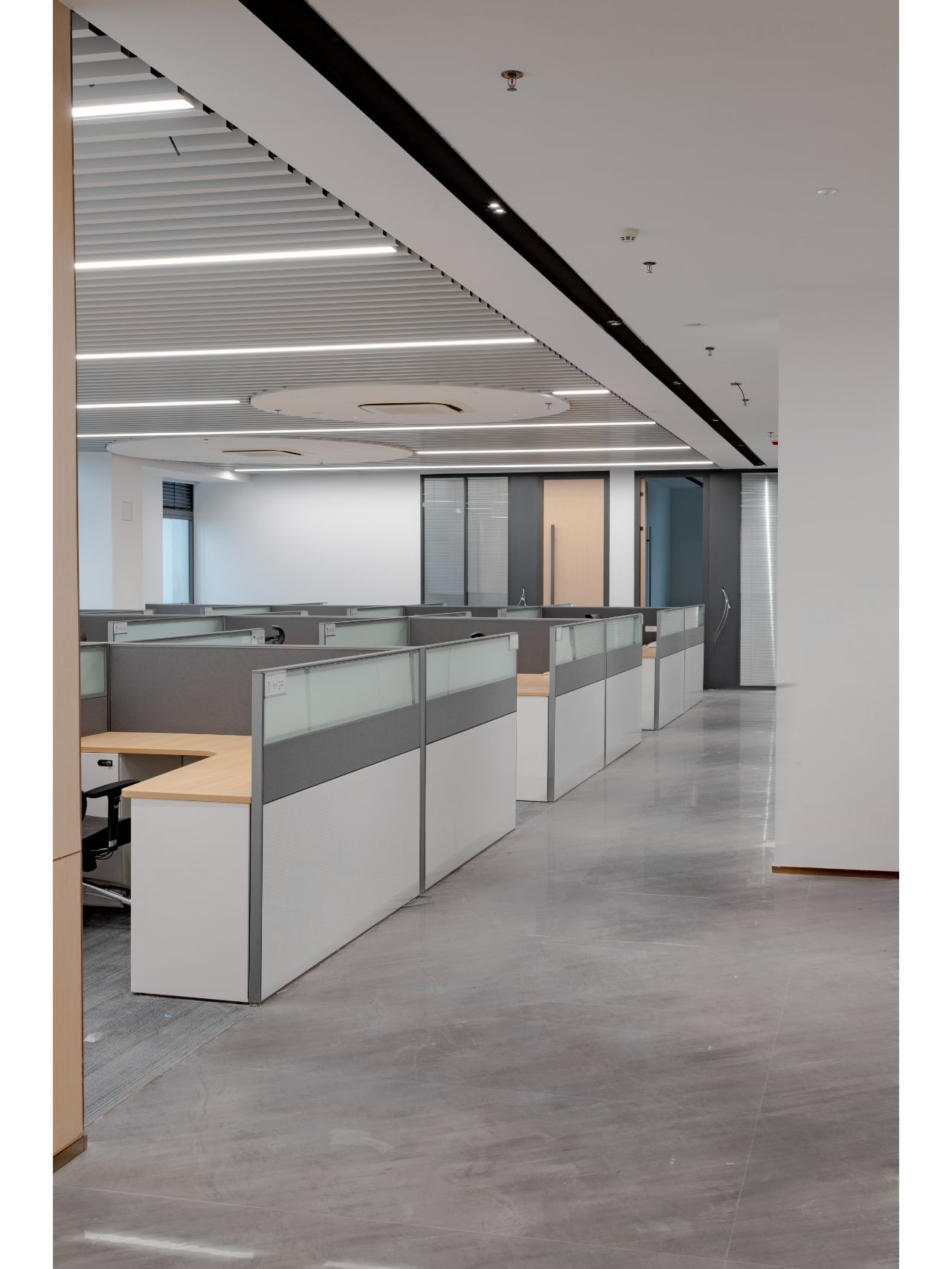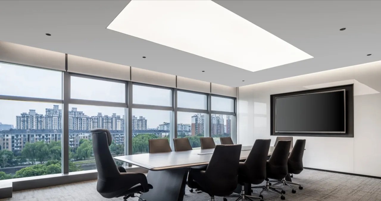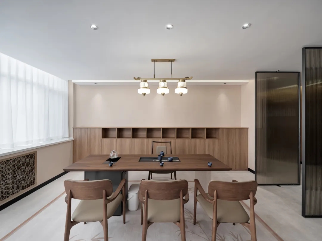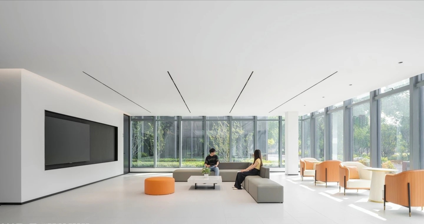 培训室墙面则采用吸音材料毛毡以极佳的降噪效果将办公空间的舒适体验达到平衡与统一侧面视窗打破常规布局更显环境通透