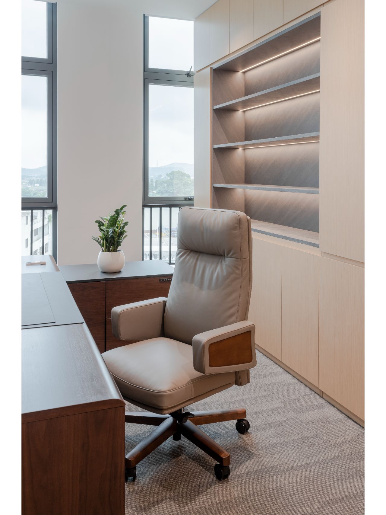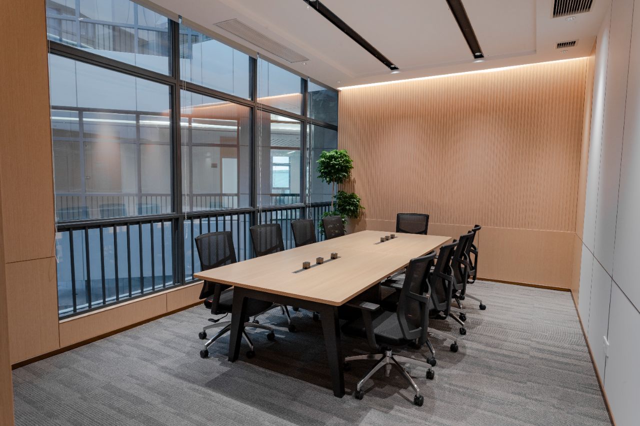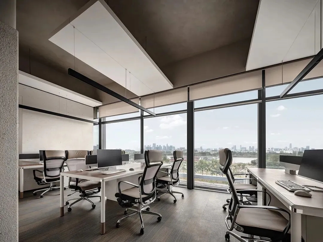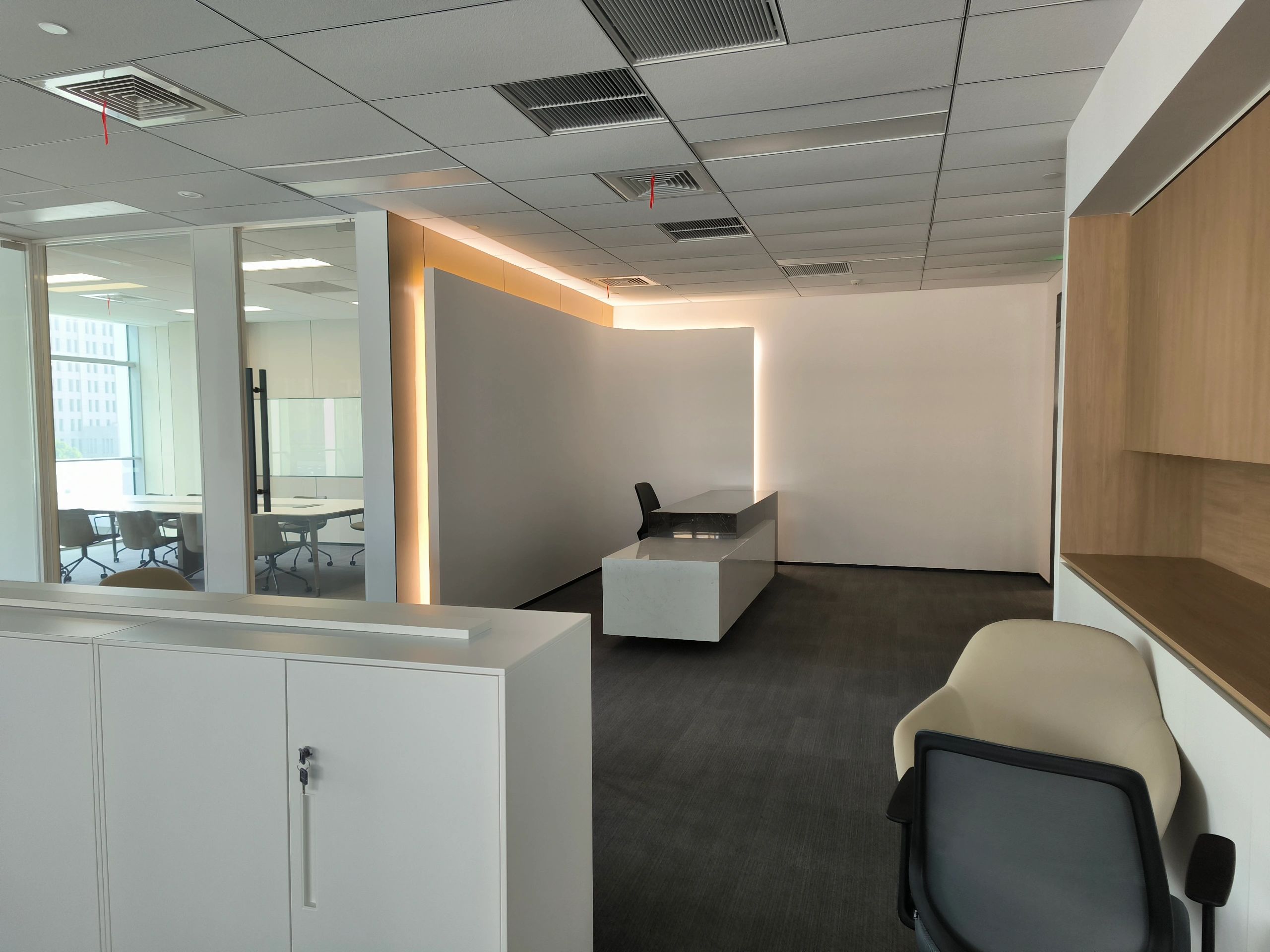 会议室内部采用了高品质的会议桌和舒适的会议椅,配备了智能化的会议设备,如投影仪、智能音响等。 总经理室作为公司决策的核心区域,其设计装修自然体现了尊贵与权威的象征。室内装饰以简约大气为主,运用高级材料和精致工艺,营造出一种低调的奢华感。