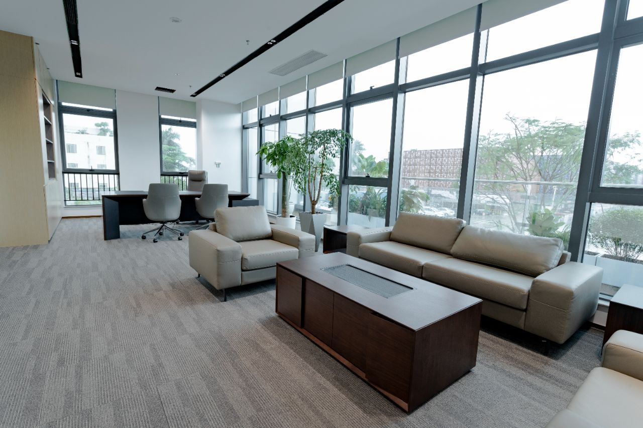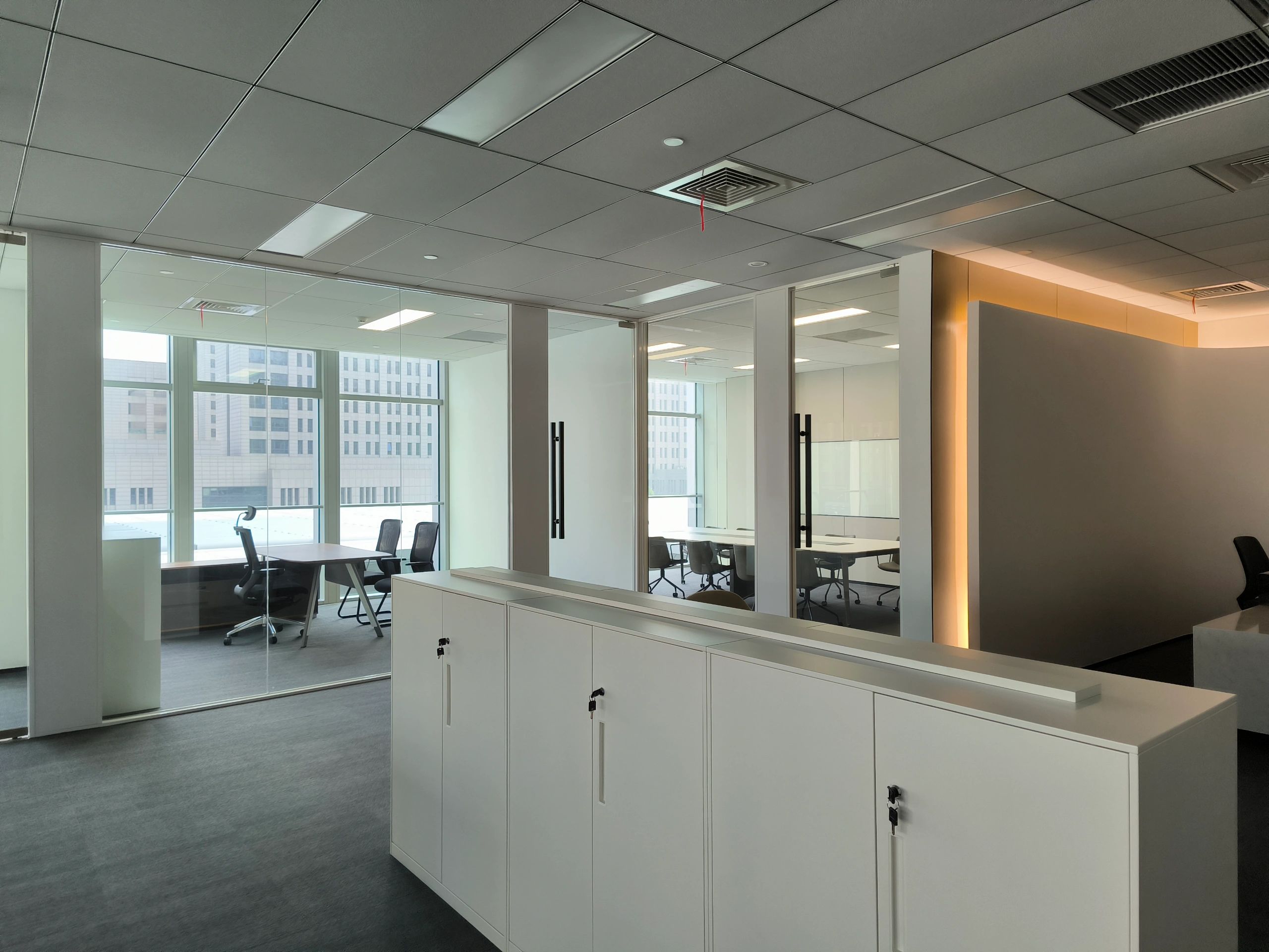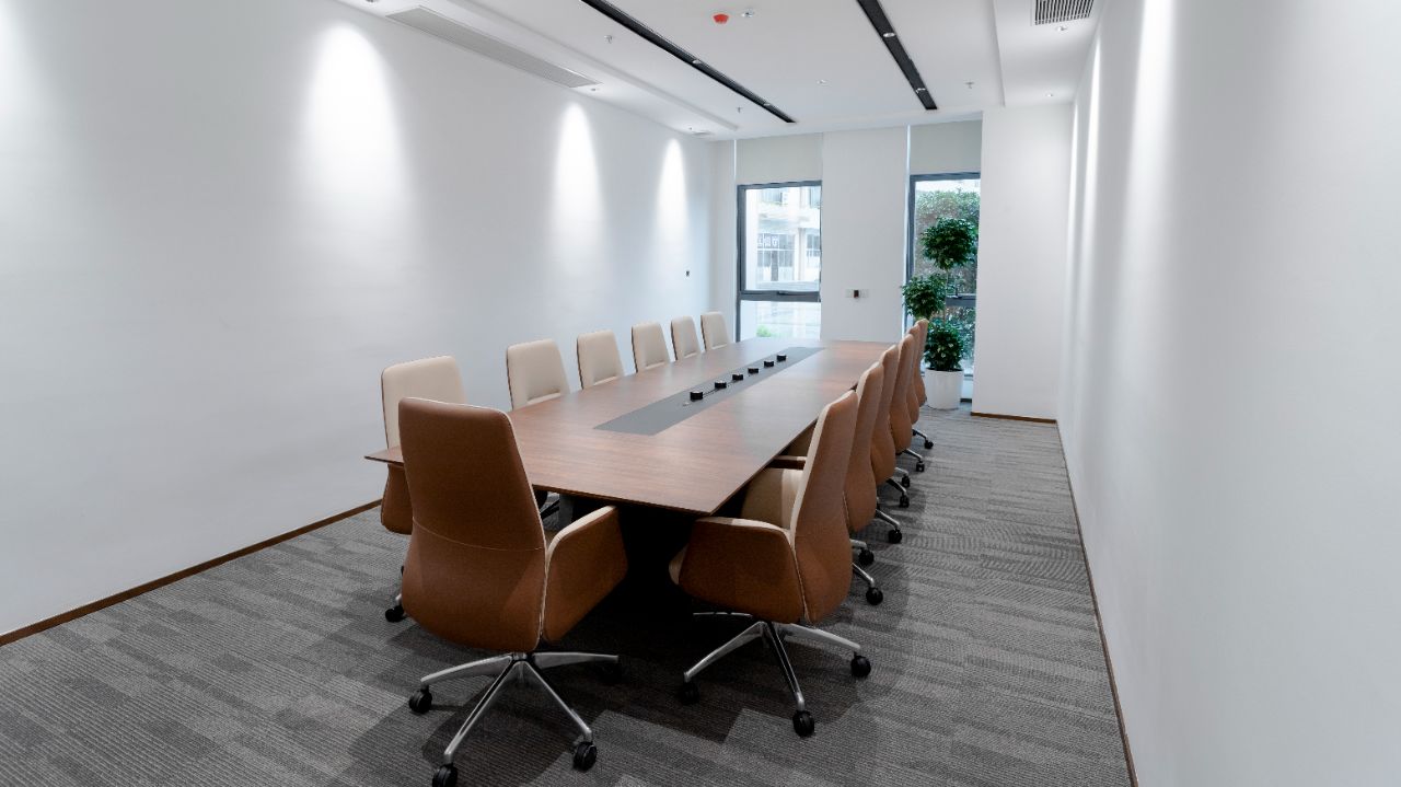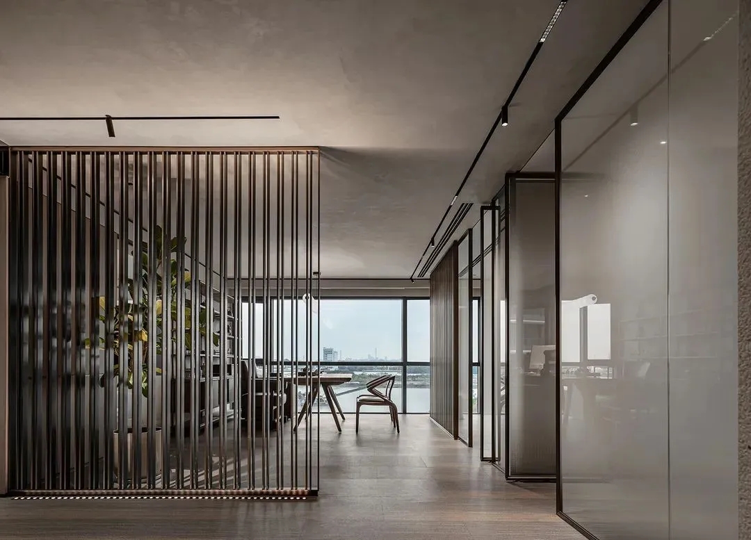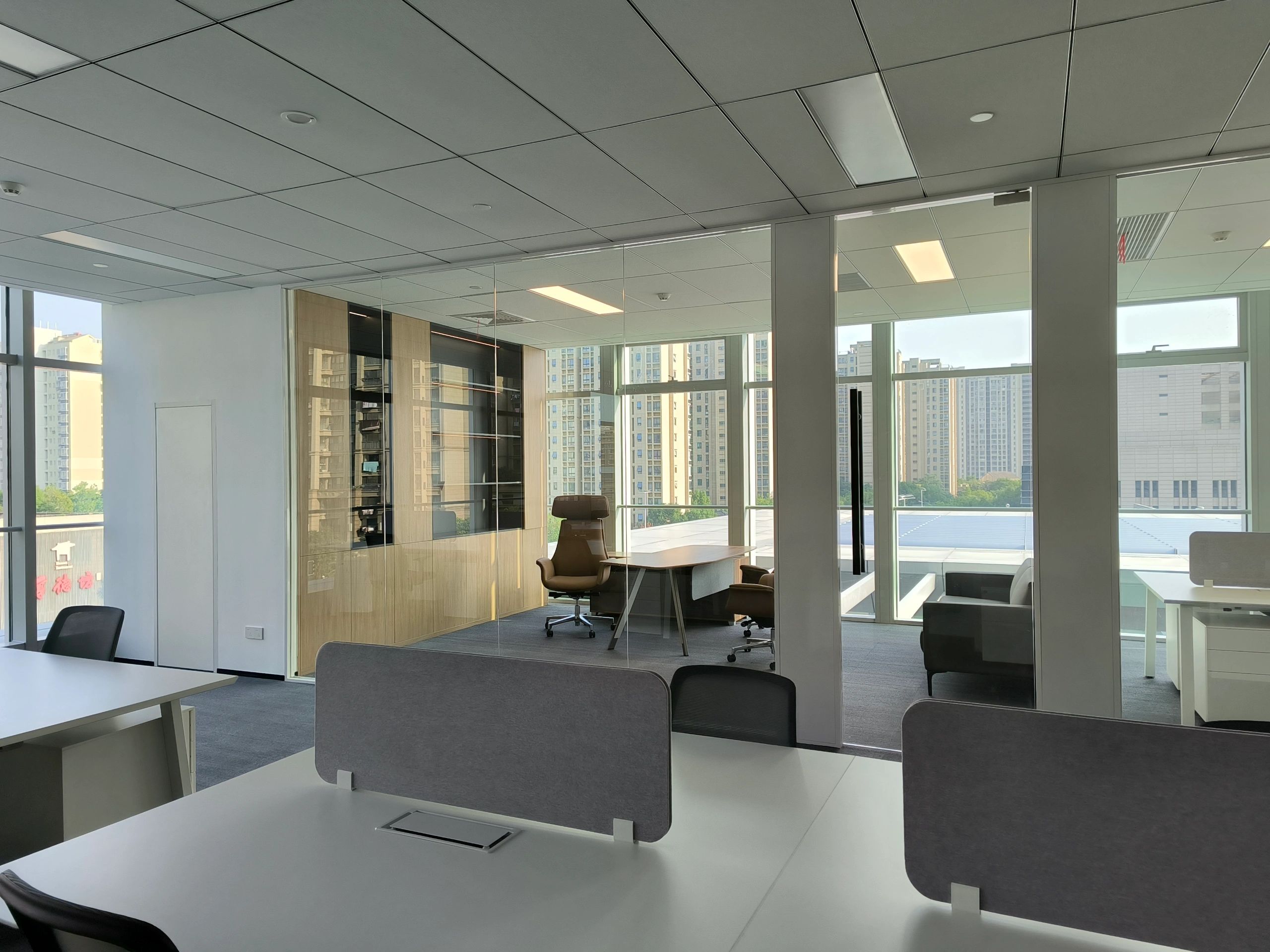 会议室内部采用了高品质的会议桌和舒适的会议椅,配备了智能化的会议设备,如投影仪、智能音响等。 总经理室作为公司决策的核心区域,其设计装修自然体现了尊贵与权威的象征。室内装饰以简约大气为主,运用高级材料和精致工艺,营造出一种低调的奢华感。