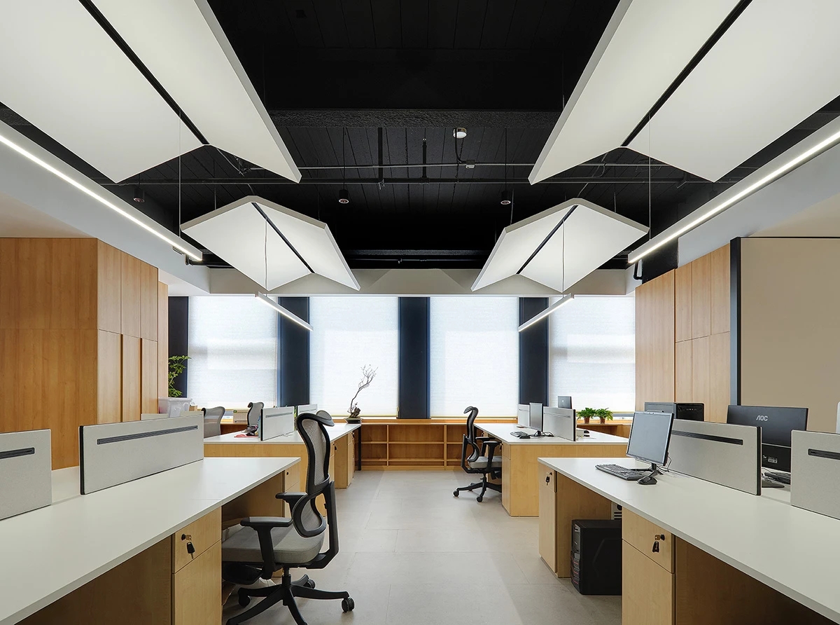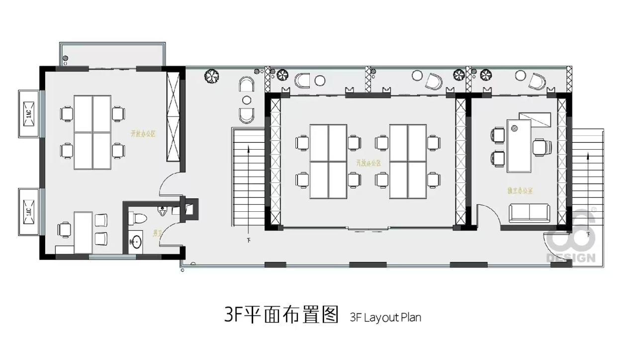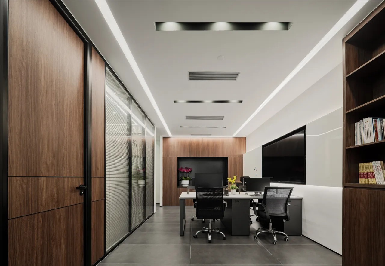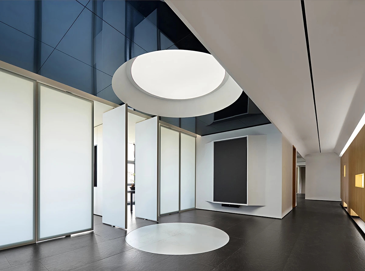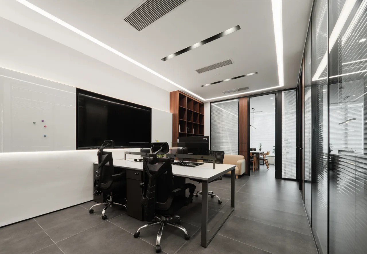 对办公空间进行重新定义,潜心探索设计的无限可能性,用前卫的想法将过去传统的办公需求与未来现代相结合,不断碰撞后产生新的极富生命力的办公空间。在此空间中,对空间进行重构,打破传统大堂使用的局限性,将大堂,前台以及洽谈区结合,开放式空间的设计最大化的利用了空间,兼具功能与美观性,开阔明亮,塑造一种灵动之感。旋转隔断的应用,打破了固有空间的局限性,动静结合,曲线与直线,方形与圆形的交响呼应,营造空间氛围的同时,给空间创造了更多的延展和可能性。通过对材料语言和空间形态的精简,打造一个”简洁,透明化,动静结合”的复合型空间!