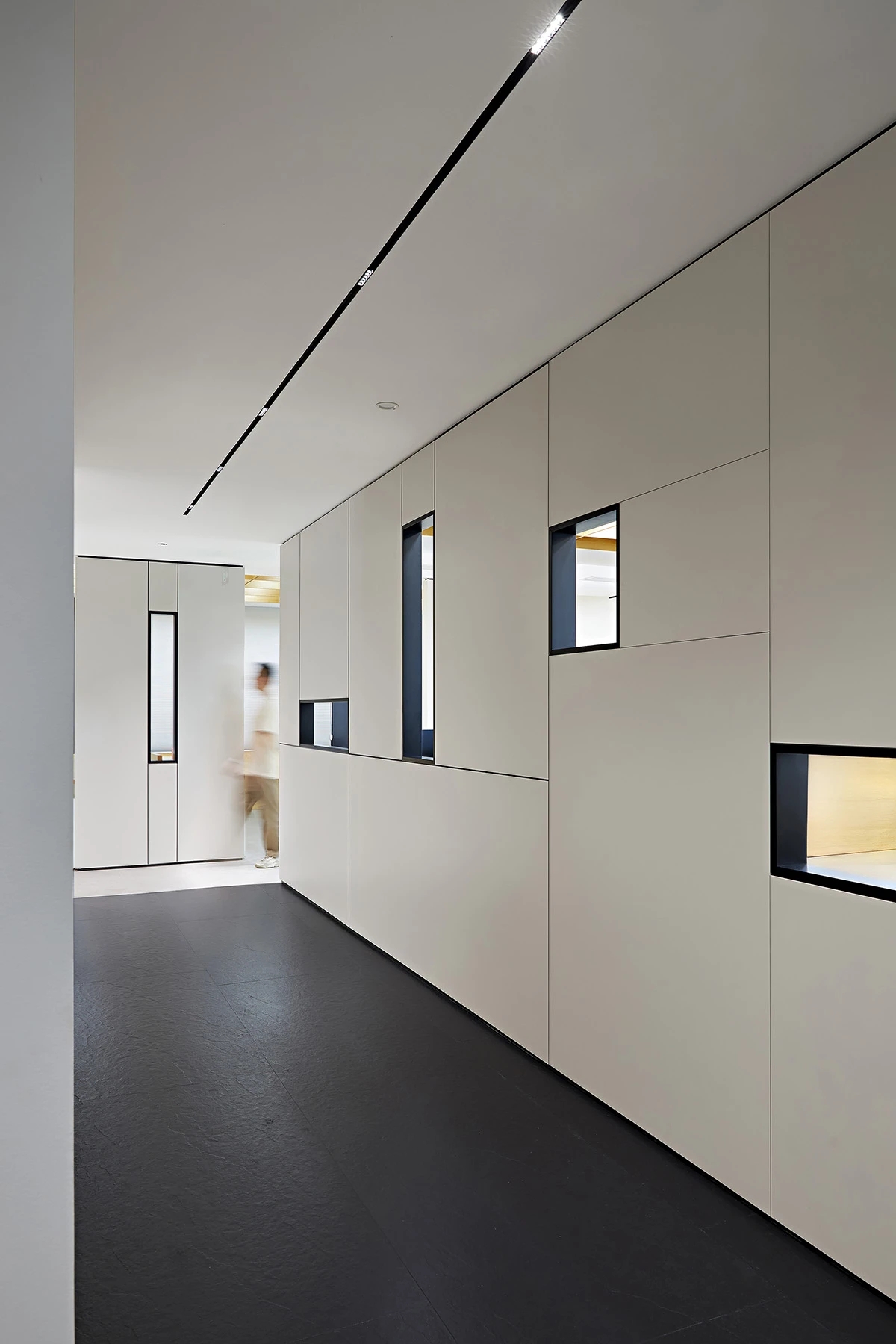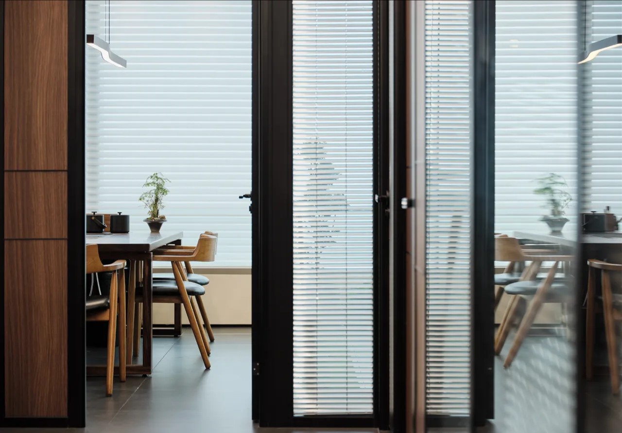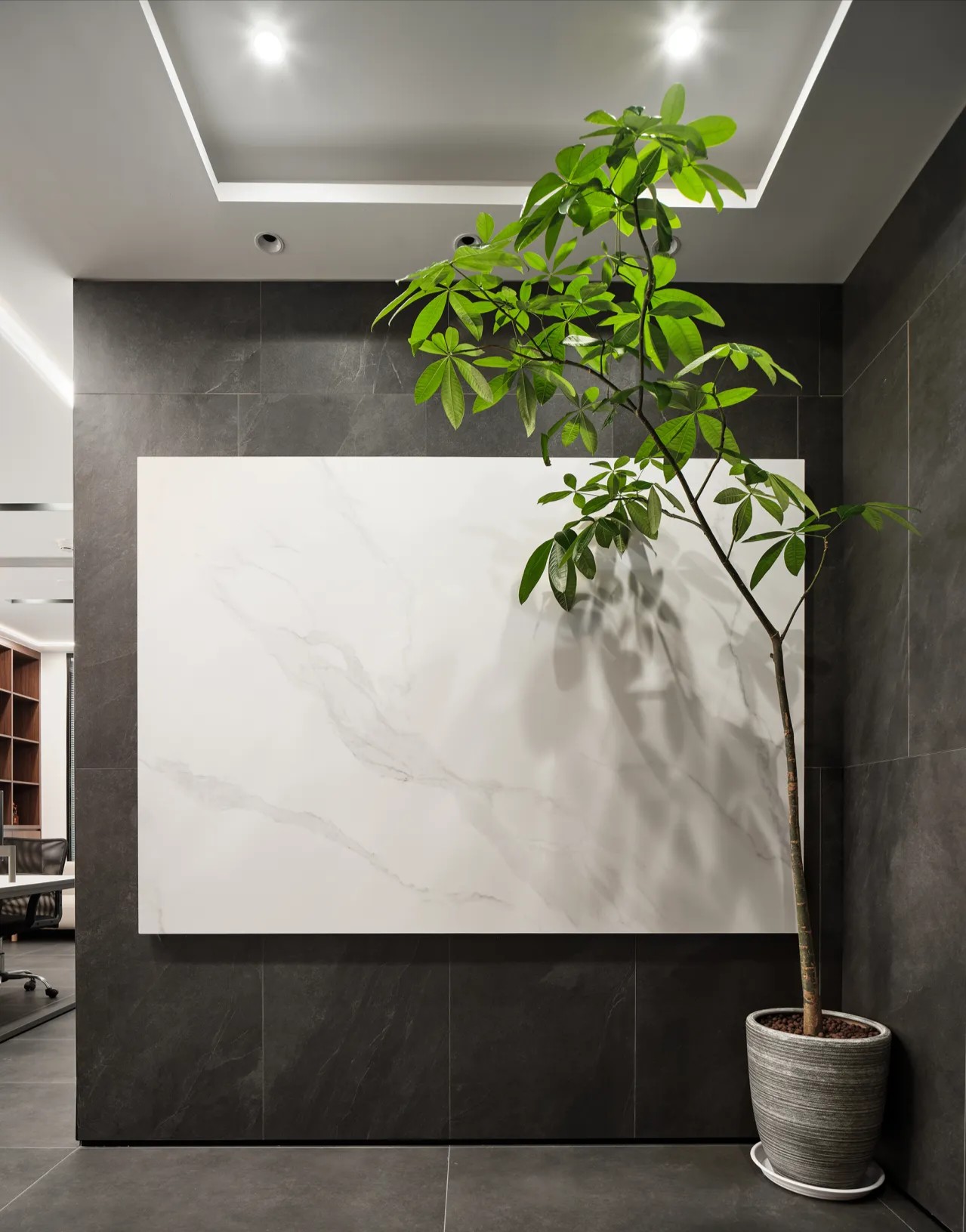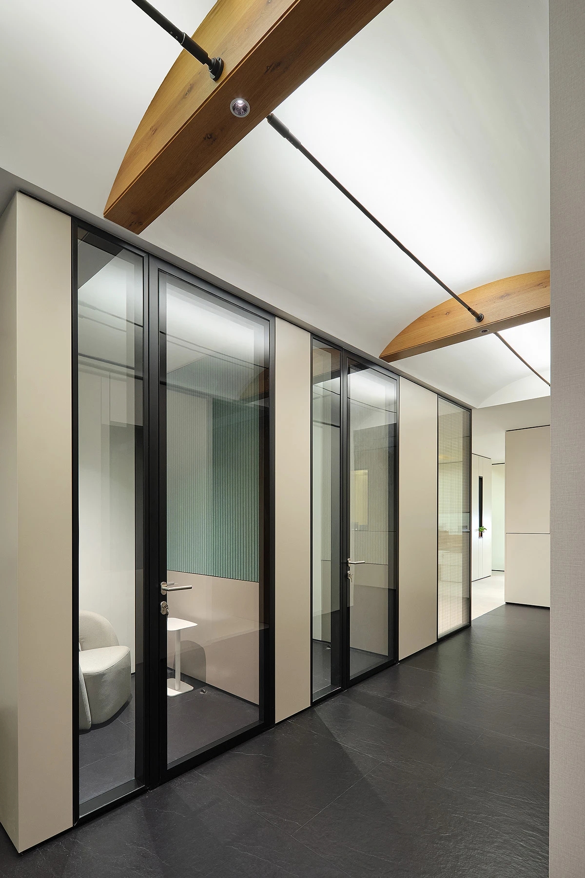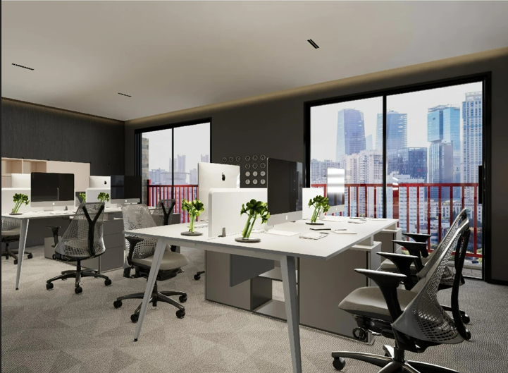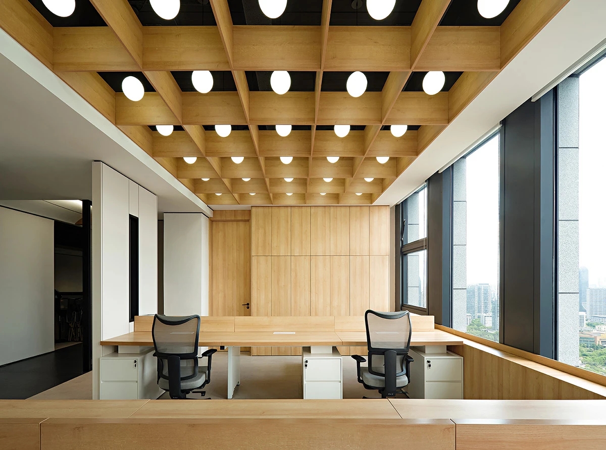 对办公空间进行重新定义,潜心探索设计的无限可能性,用前卫的想法将过去传统的办公需求与未来现代相结合,不断碰撞后产生新的极富生命力的办公空间。在此空间中,对空间进行重构,打破传统大堂使用的局限性,将大堂,前台以及洽谈区结合,开放式空间的设计最大化的利用了空间,兼具功能与美观性,开阔明亮,塑造一种灵动之感。旋转隔断的应用,打破了固有空间的局限性,动静结合,曲线与直线,方形与圆形的交响呼应,营造空间氛围的同时,给空间创造了更多的延展和可能性。通过对材料语言和空间形态的精简,打造一个”简洁,透明化,动静结合”的复合型空间!