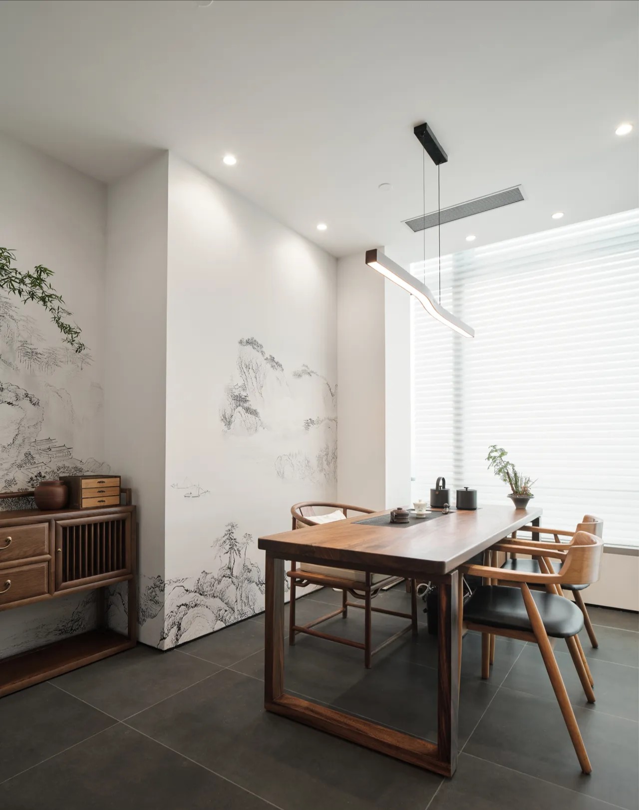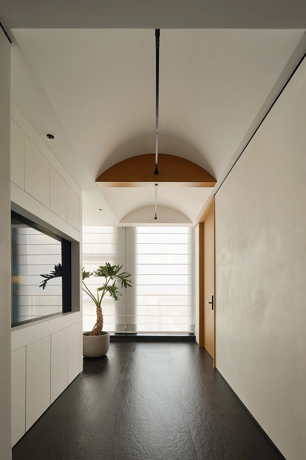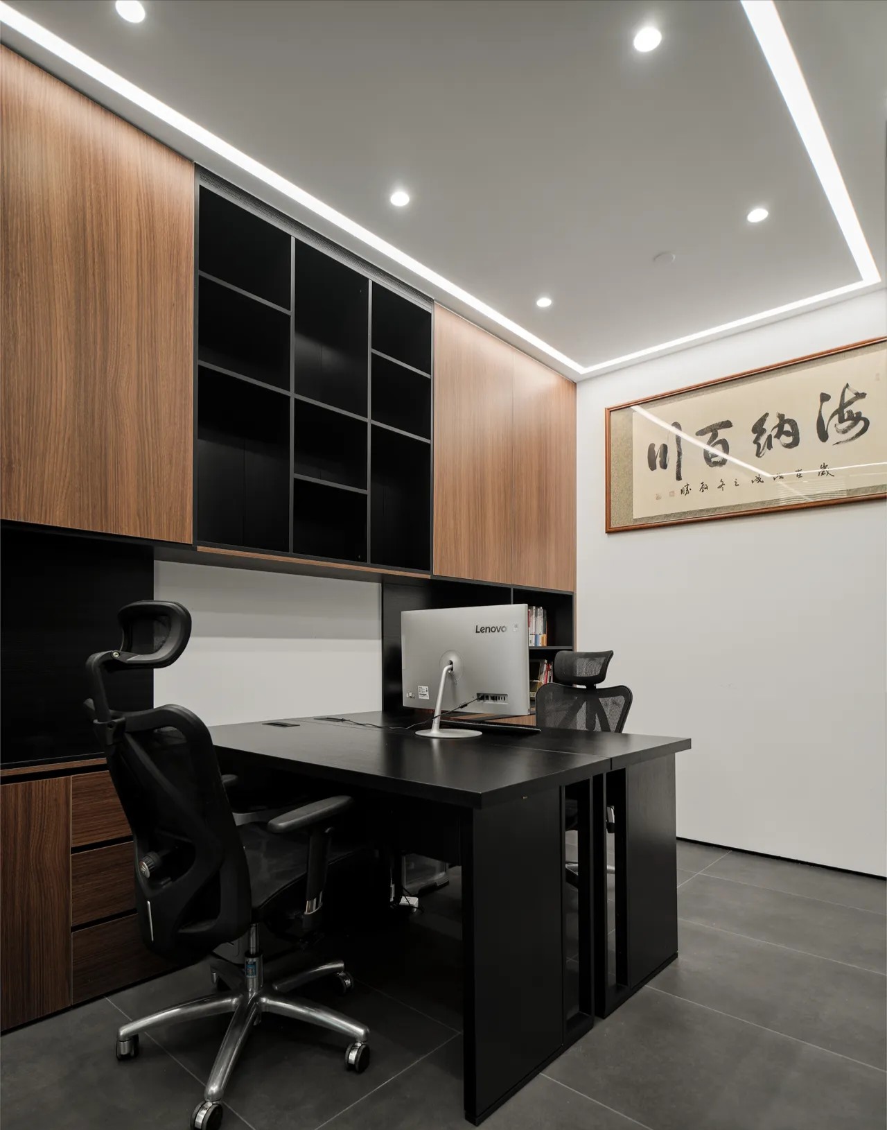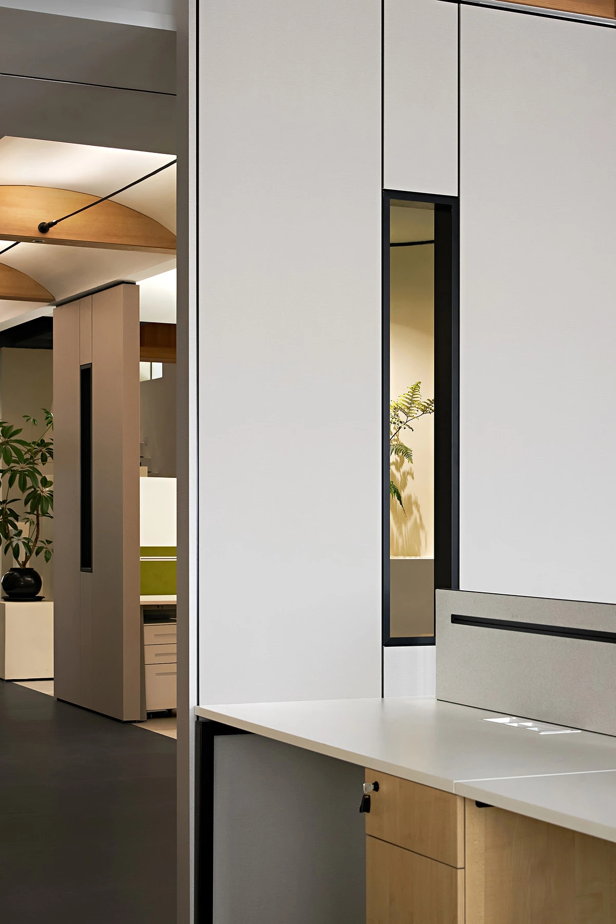 对办公空间进行重新定义,潜心探索设计的无限可能性,用前卫的想法将过去传统的办公需求与未来现代相结合,不断碰撞后产生新的极富生命力的办公空间。在此空间中,对空间进行重构,打破传统大堂使用的局限性,将大堂,前台以及洽谈区结合,开放式空间的设计最大化的利用了空间,兼具功能与美观性,开阔明亮,塑造一种灵动之感。旋转隔断的应用,打破了固有空间的局限性,动静结合,曲线与直线,方形与圆形的交响呼应,营造空间氛围的同时,给空间创造了更多的延展和可能性。通过对材料语言和空间形态的精简,打造一个”简洁,透明化,动静结合”的复合型空间!