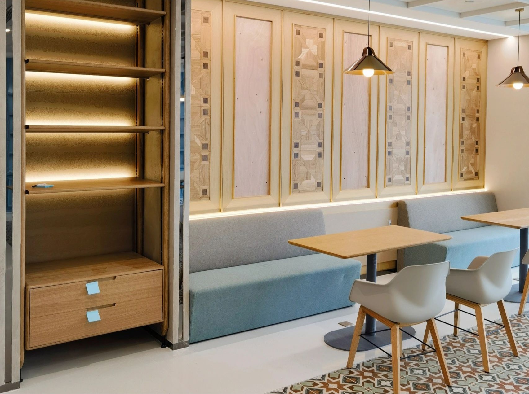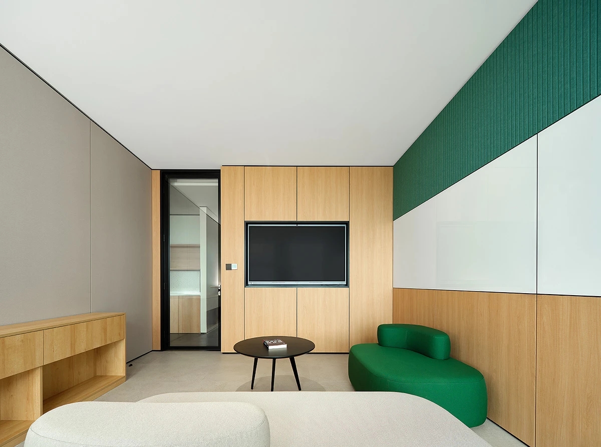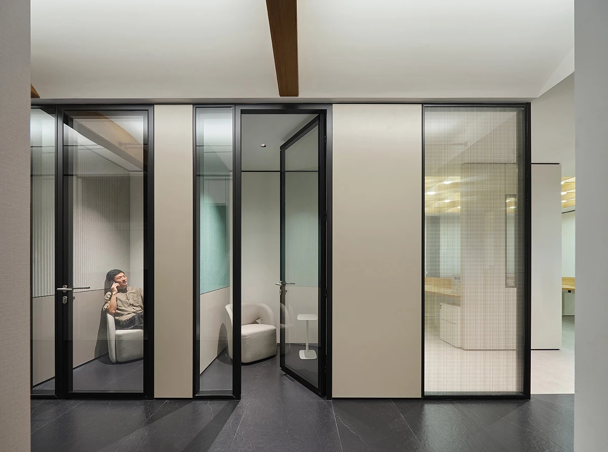 空间布局上掘弃了传统的会议室,开放式会议更有利于高效的沟通,享受一起共创的状态,平等的会议架构和灵活的会议方式呈现出更独立的意识与更具个性的面貌。