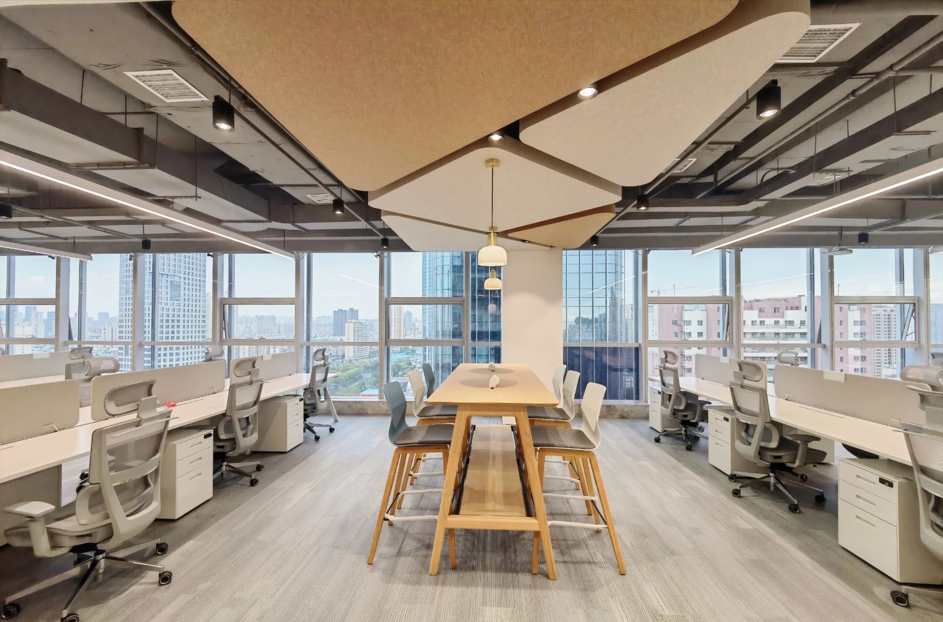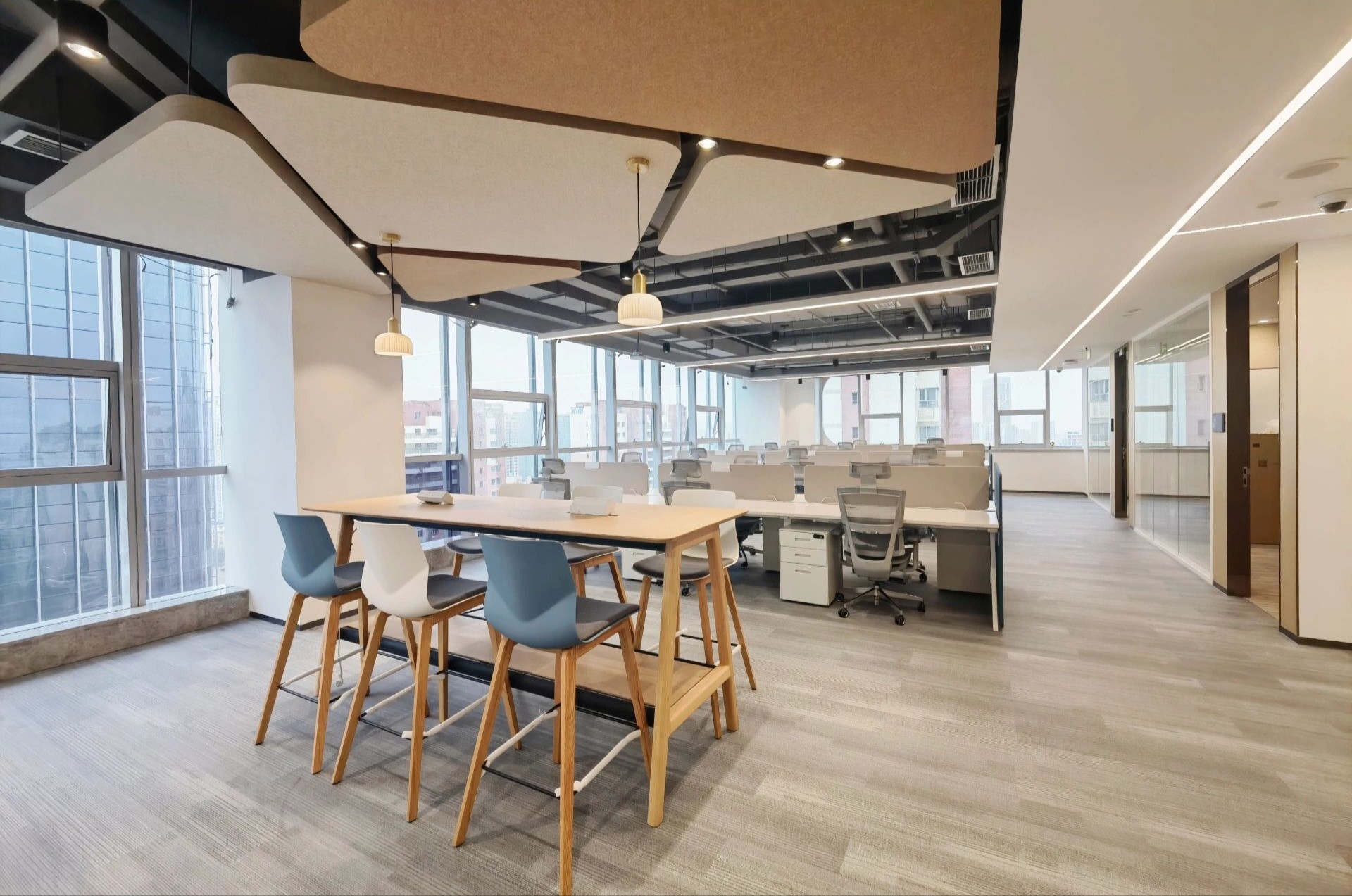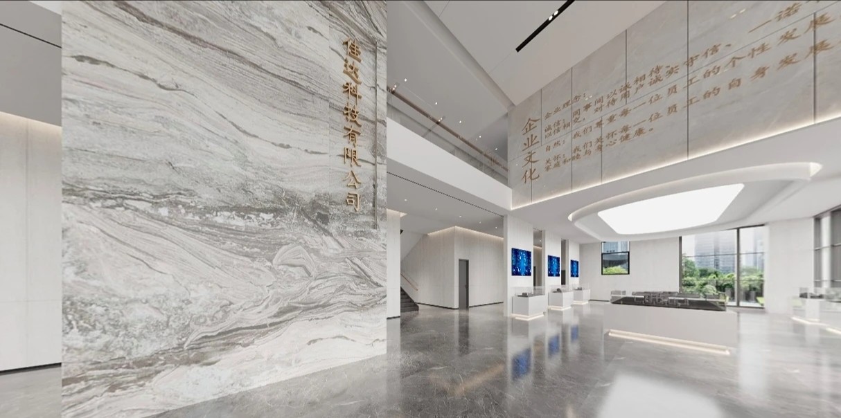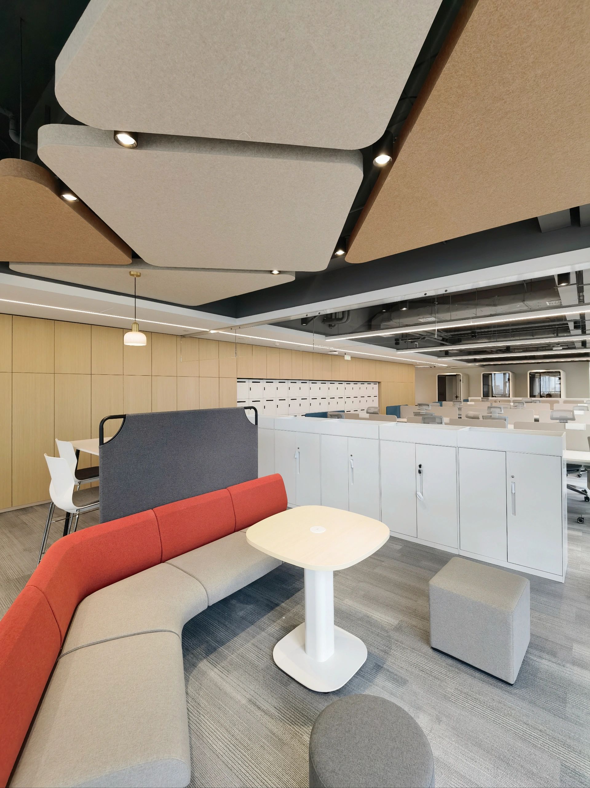 接待区以围合式块面结构从入口处即可看到空间里的场景能第一时间感受到企业文化舒适畅享的休闲区是休闲放松的居心地展示区作为企业文化展示的窗口呈现出自由、开放、未来、互动的办公新业态