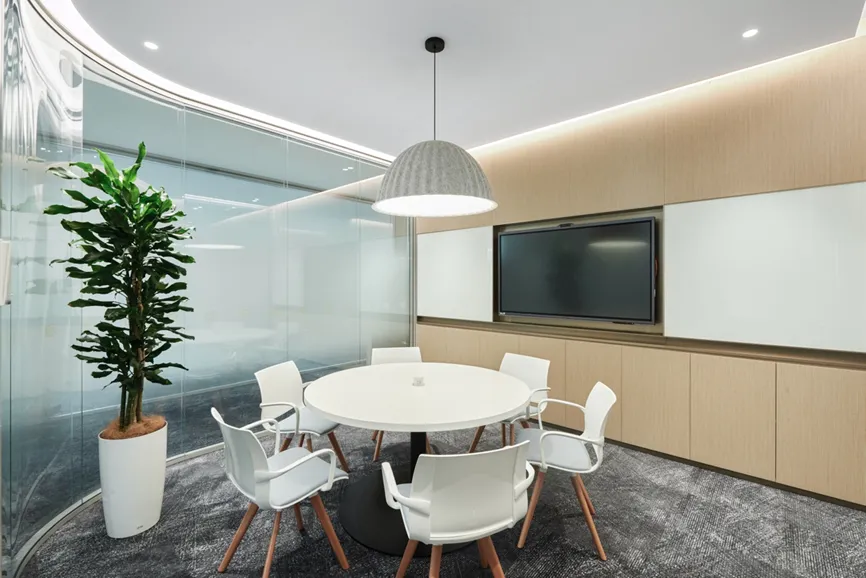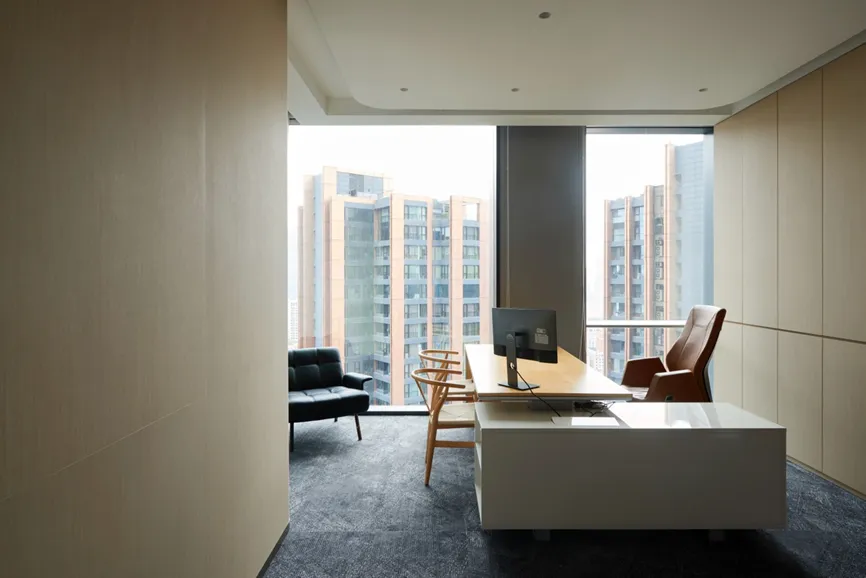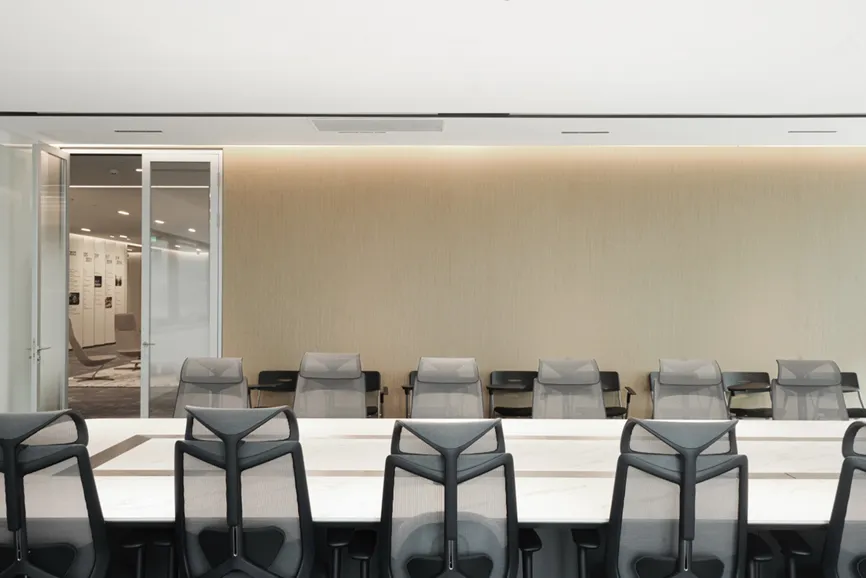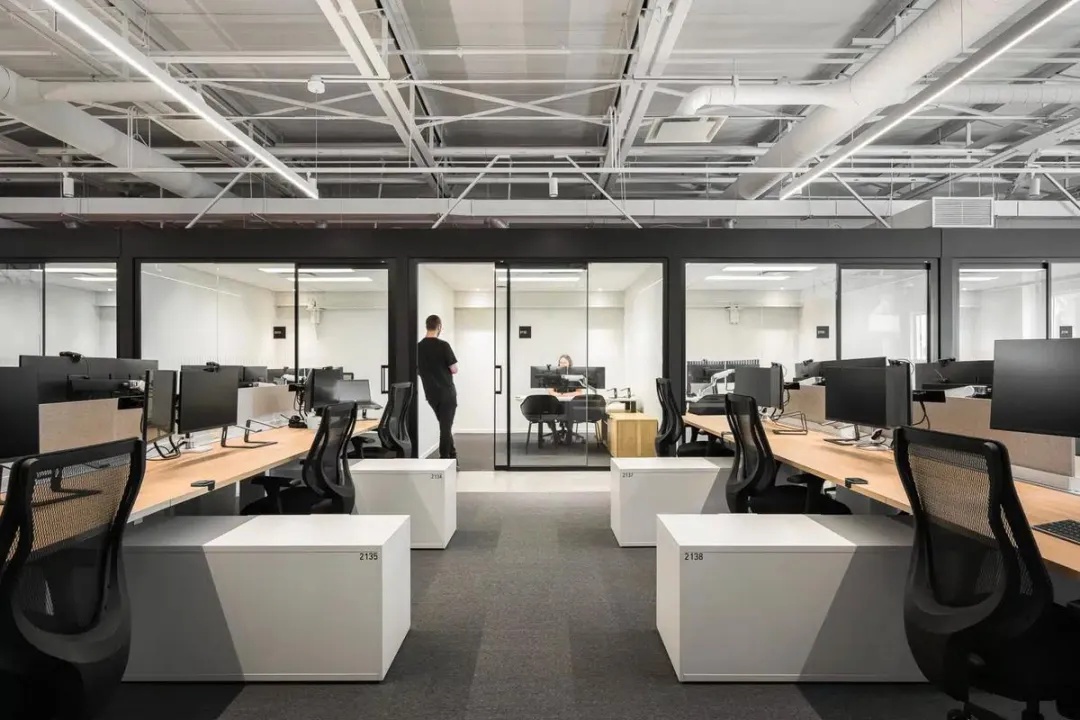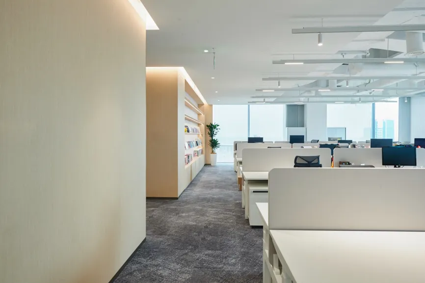本项目以国际化、年轻化的设计理念,其简洁、清晰的线条和纯粹、高效的动能,带来了一种全新的工作体验,感受现代都市的时尚气息。设计上以白色为基调,营造出简洁、明亮的氛围,白色墙面和浅色地板不仅提升了空间的亮度,还增强了视觉上的宽敞感。走廊、公共区采用蓝色和红色的结合,颜色的碰撞使空间效果更为立体,在视觉上的冲击力能够有效减轻压力,促进创造性思维,鼓励每个人发挥创造力。有效扩展视觉空间,减少心理负担。色彩跳跃是次办公空间的一大亮点,在保持整体色调简洁明快的基础上,同局部色彩的鲜明对比和跳跃,为空间注入了活力和动感。利用颜色和功能性的布局,创造出一个既美观又实用的工作环境,这种设计不仅符合现代职场的需求,更为员工打造一个更加宜人的工作空间。让灵感与思维随时产生碰撞。动线设计采用开放性、指引性的原则,尽量避免封闭空间、采用开放式布局,通过标识、灯光等引导员工移动。在方圆之间取得平衡自然律动,为人与空间建立联系,利用此动线巧妙地将人引入空间内部。合理的动线设计和科学的色彩搭配不仅能提高办公空间的流动性,还能提升员工的工作效率和满意度,促进不同部门之间的交流与互动。