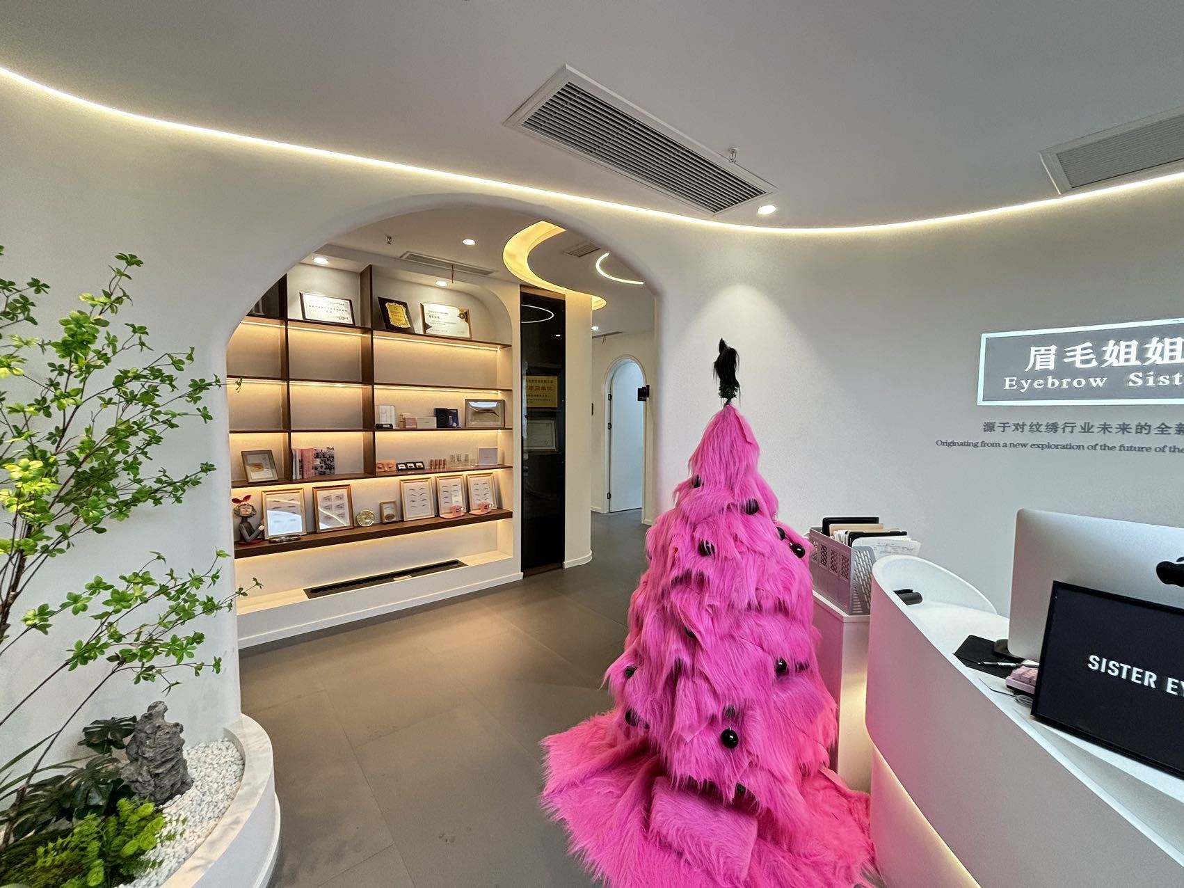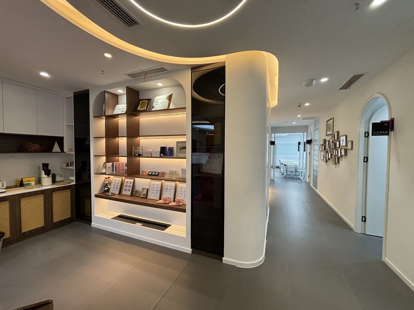 随着脚步的深入,一个开放式咖啡吧映入眼帘,这里是供大家休憩放松、洽谈交流的理想场所。独特的定制灯具与古朴的中式建筑元素相互映衬,既展现了所在地域的文化韵味,又营造出一种闲适与艺术的氛围。