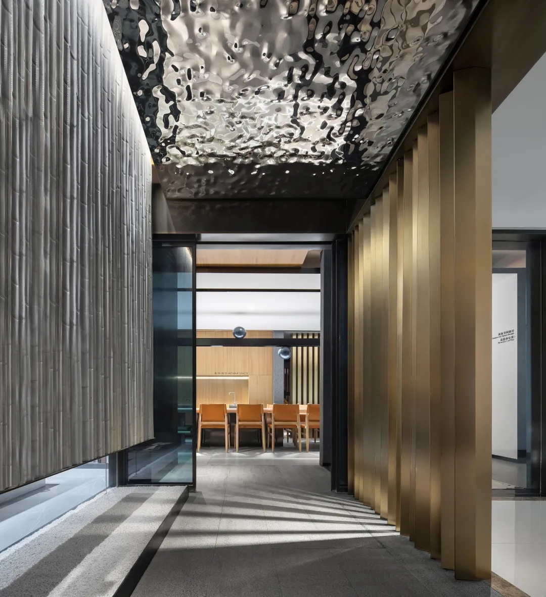 办公室空间的内在含义就是能够高效我们祛除冗余用简洁的样子去呈现哑光不锈钢隔断拥有最坚韧的实用性又能够通过线条感保持视野上的通透性