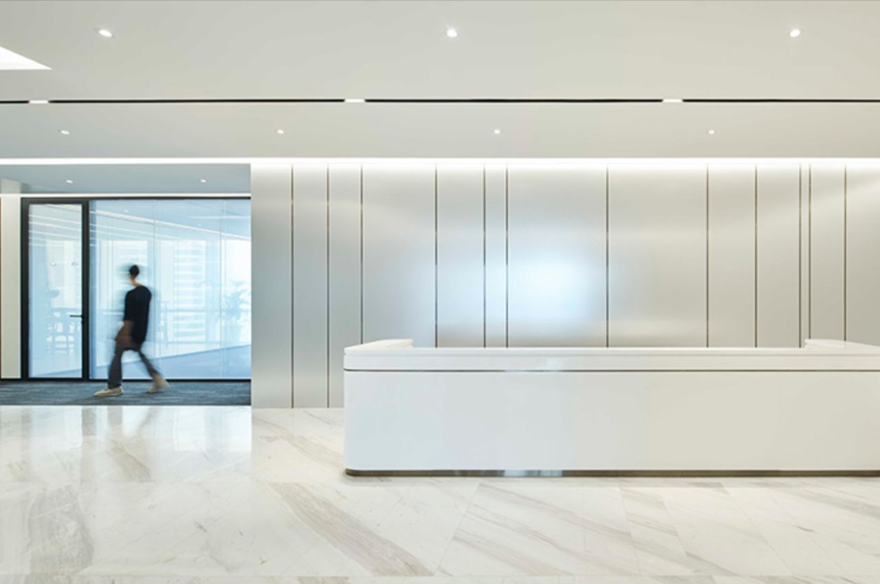 白色被称为一种设计理念,本身蕴含了丰富的可能性和容纳性。在整个项目中,白色作为主色贯穿在整个办公空间里,并通过不同机理的材质呈现。黑色和木纹作为辅助色点缀空间。弧形的跑道贯穿了整个办公空间,对比直线的硬朗,曲线本身更能体现空间的流动性和柔美性。开放的茶水间区域,整体设计与空间氛围保持一致,选取颜色亮丽的家具产品为空间增添活力。