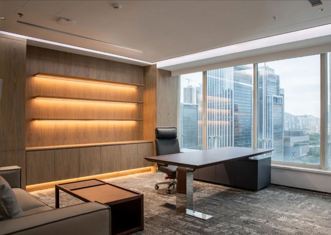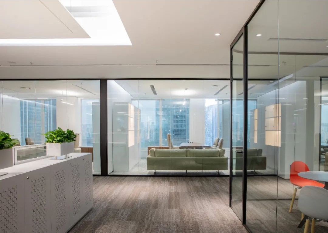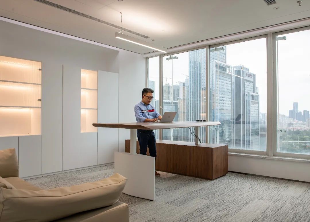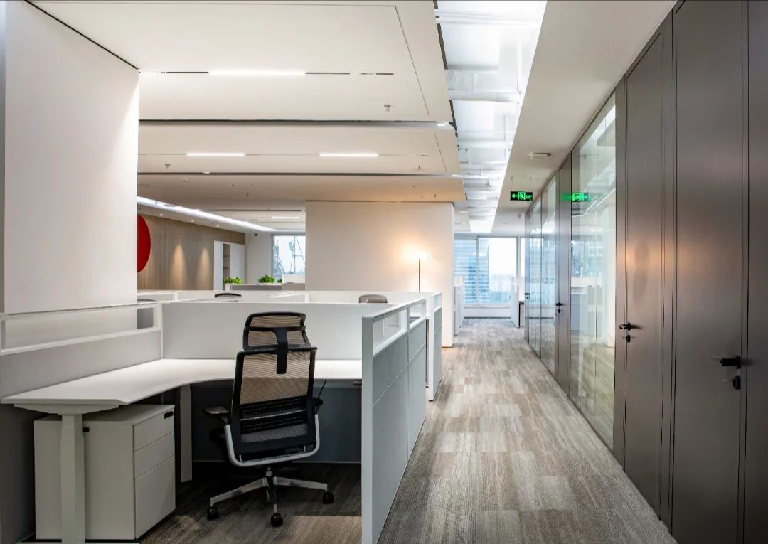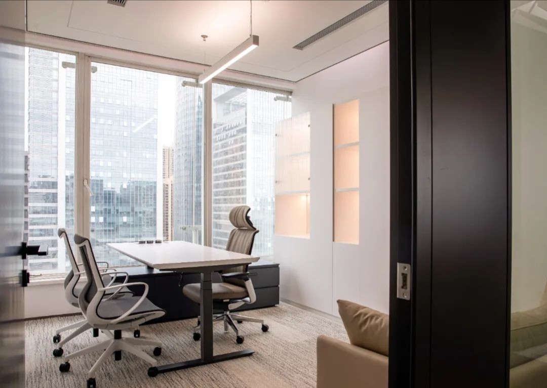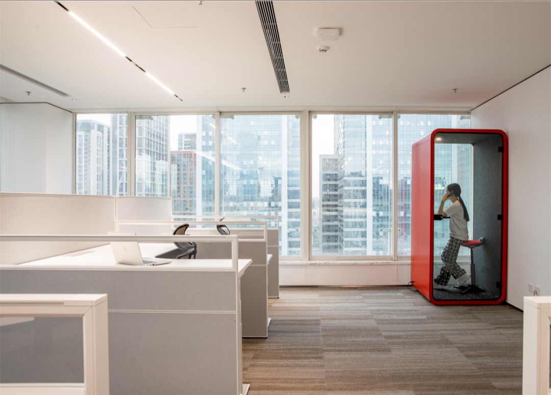 设计目标在于运用极简的设计手法,结合空间哲学及软装点缀,营造出干净优雅的工作环境。特色在于屏风办公位均利用了升降系统,文件柜均有吸音和隔音功能。会议区及管理人员办公室等外墙采用双层玻璃,专为有效的隔音和隐私而设计,以最大限度地提高集中度和工作效率。