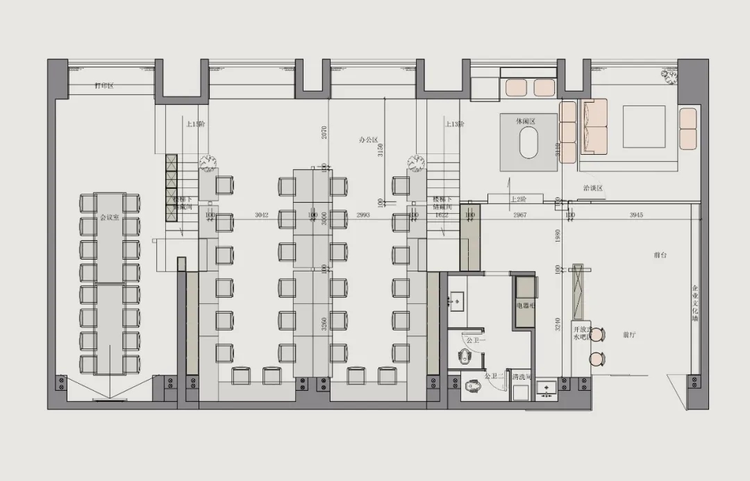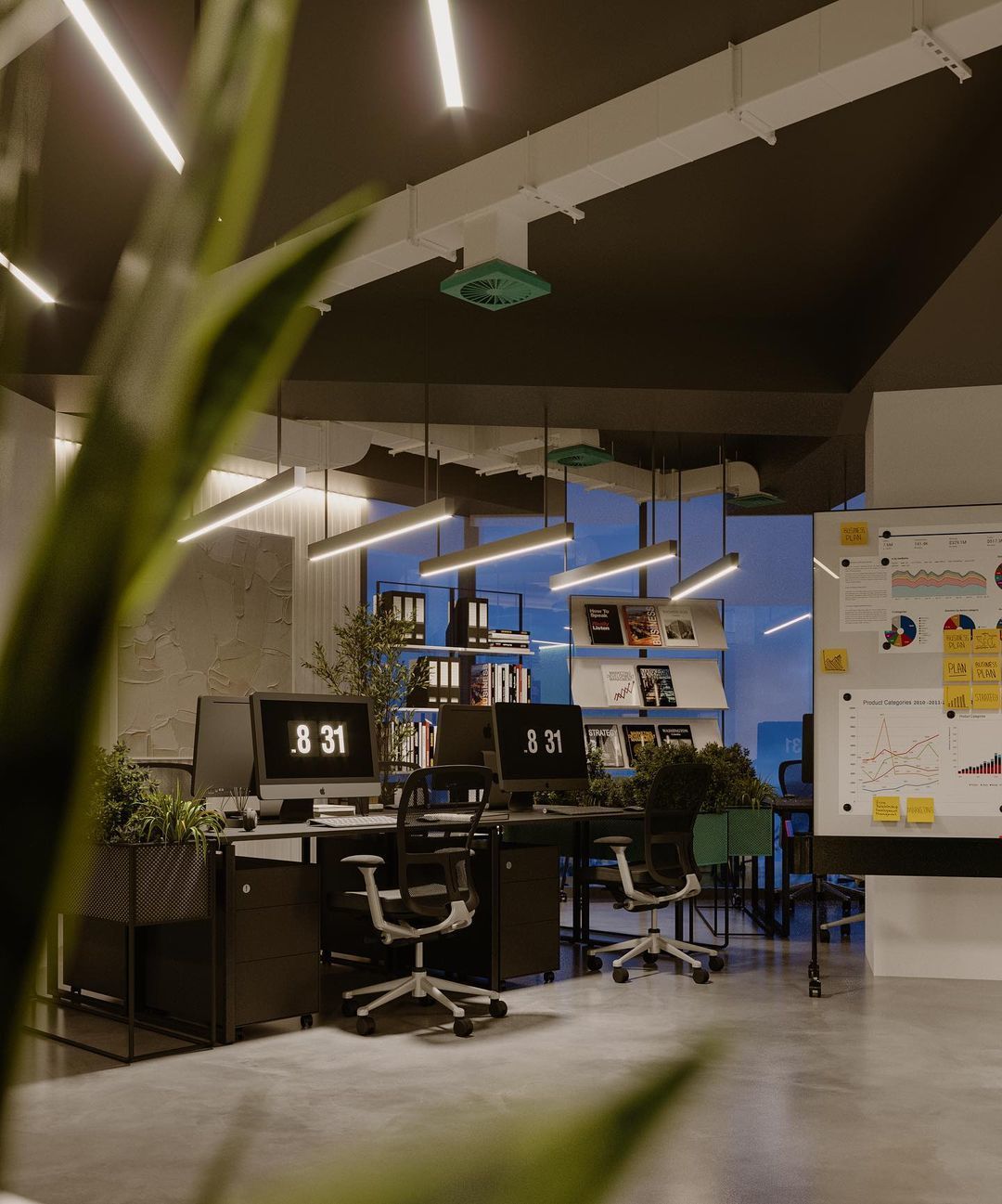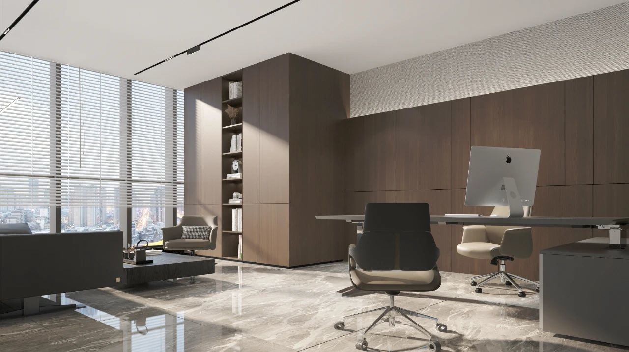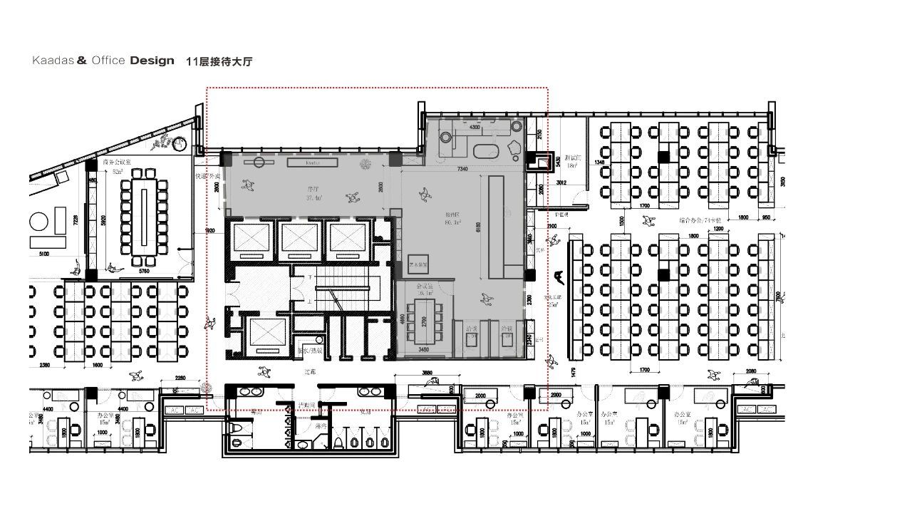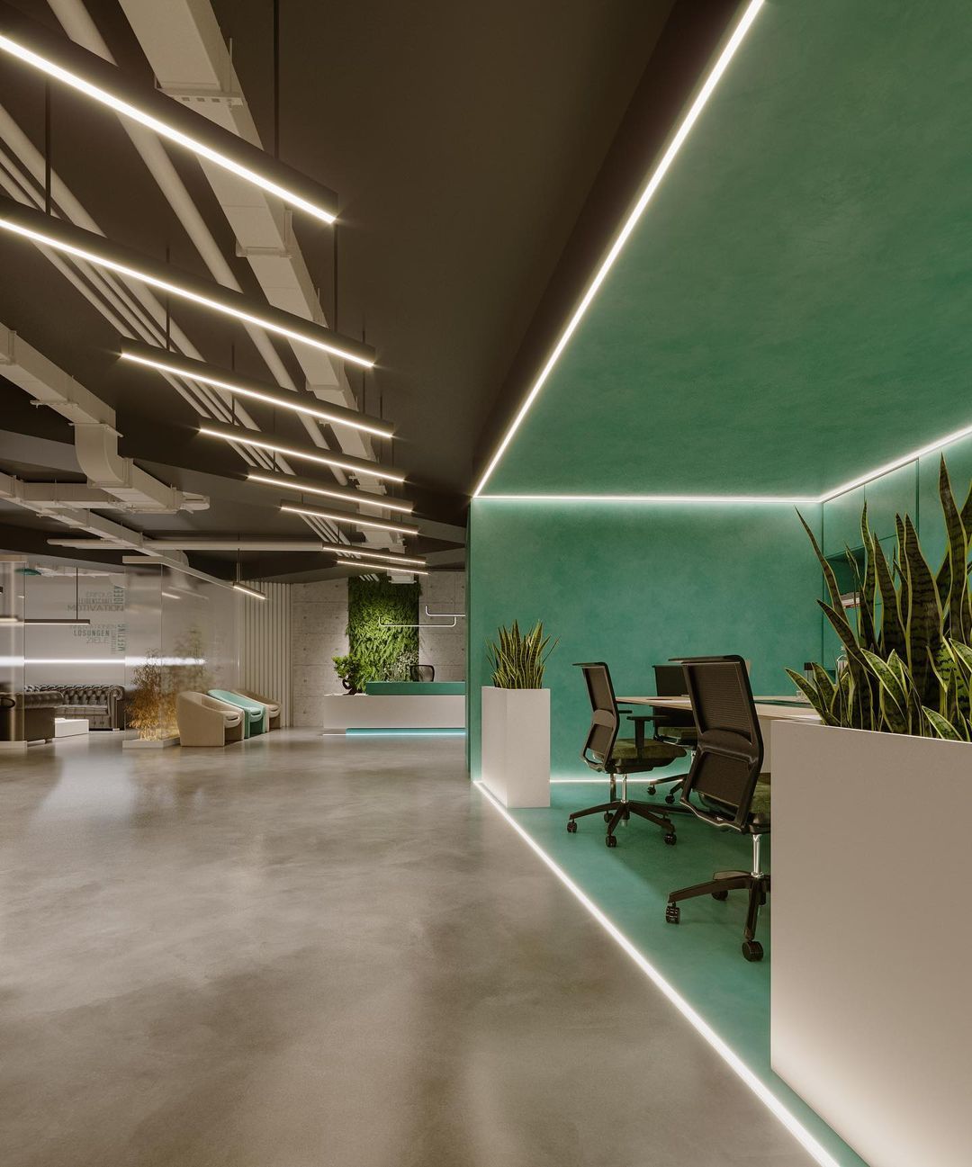 将现代材料和表现手法相结合,打破以往办公室沉闷压抑的形象,通过简练理性的美学方式,不拘于固定的办公室格局,创造具有舒适感的办公多领域复合空间;从空间体验和精神意义上建立人与空间的自然关系。 为了使整个空间具有通透和呼吸感,设计师将自然光源贯穿整个动线,办公区域并以透明材质的玻璃隔断替换原实体隔墙,对整个空间行进功能布局重构,消除了空间的封闭感,鼓励彼此在舒适自然的氛围中研究和讨论。
