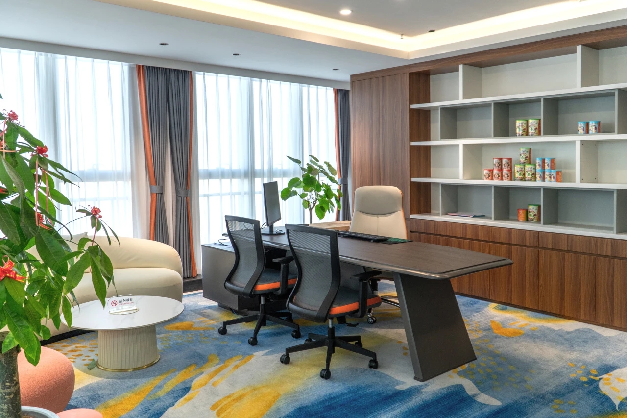 休闲区的设定为“家庭式”“温馨化”与办公区形成强烈的对比,割裂开两种氛围,提倡工作之余尽情休闲。当然,在功能上不能缺少实用性,亦不能单一化。一排移动屏风,可以分隔出两片天地。屏风上亦可以写字涂鸦等,聚会/派对都具备很好的物理条件。