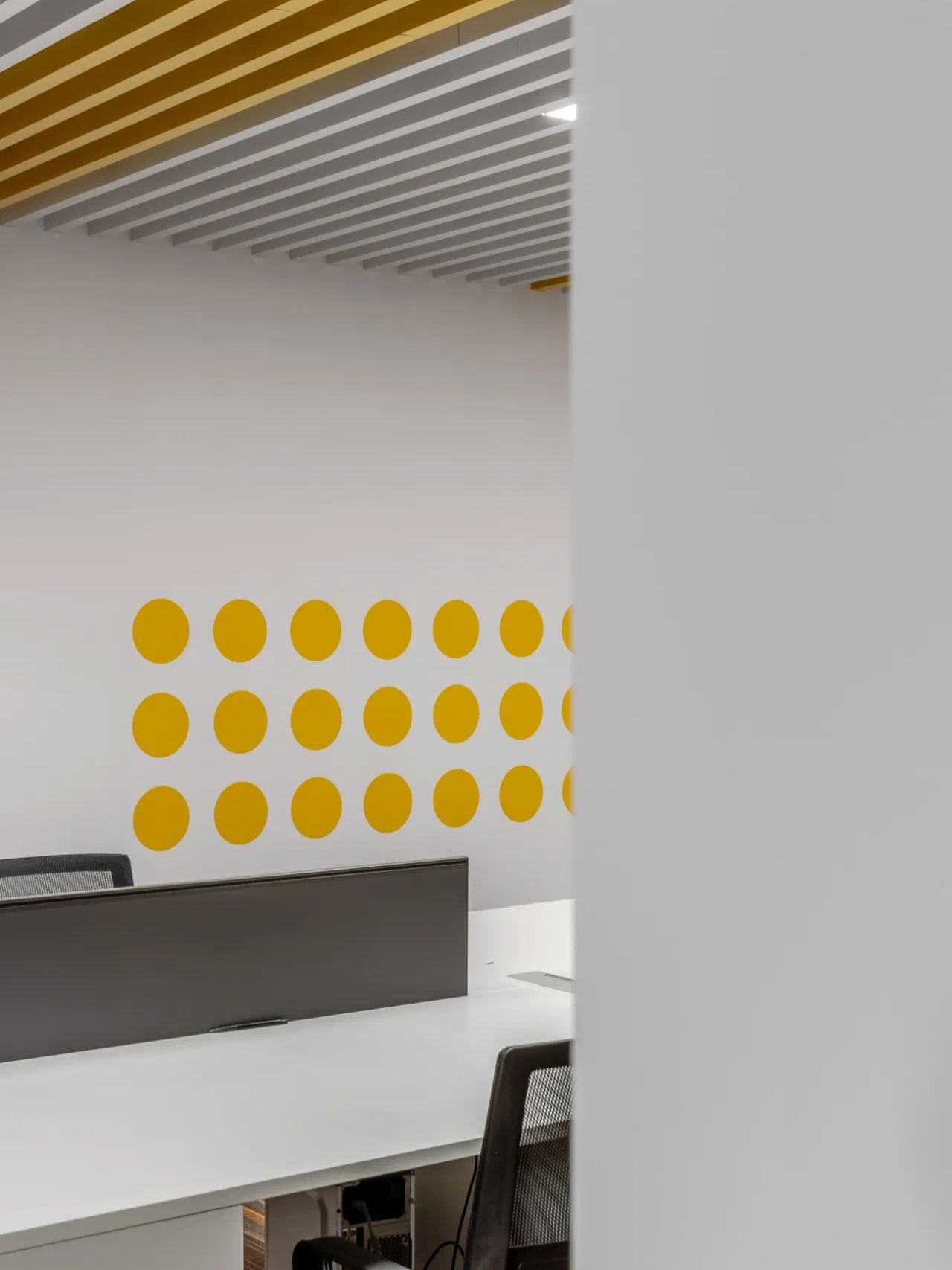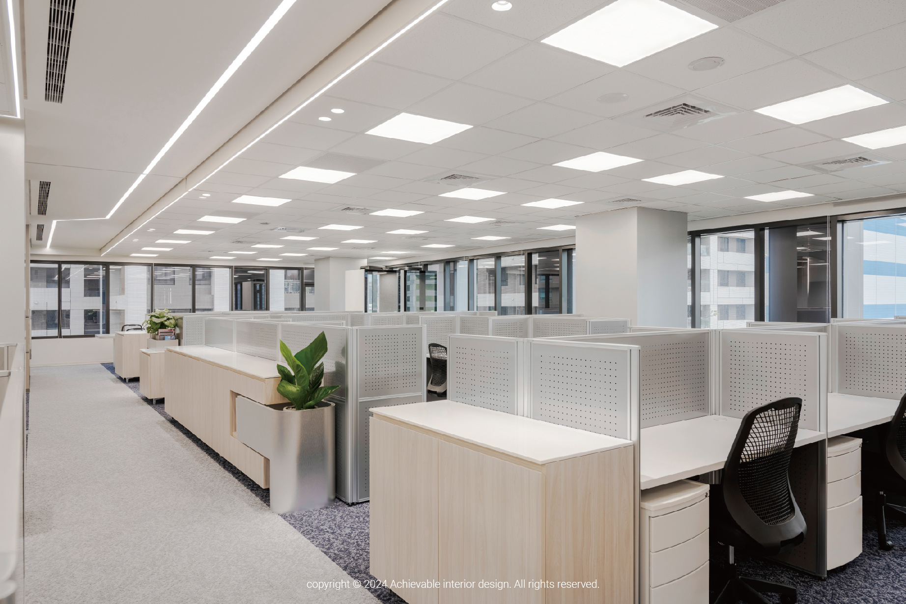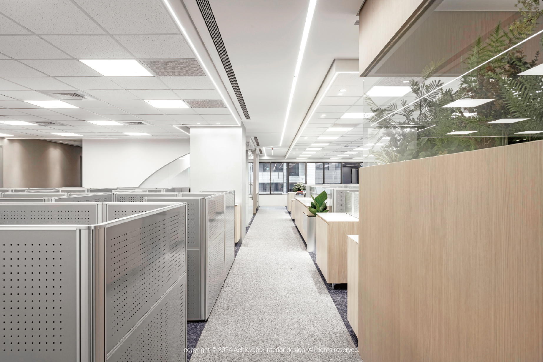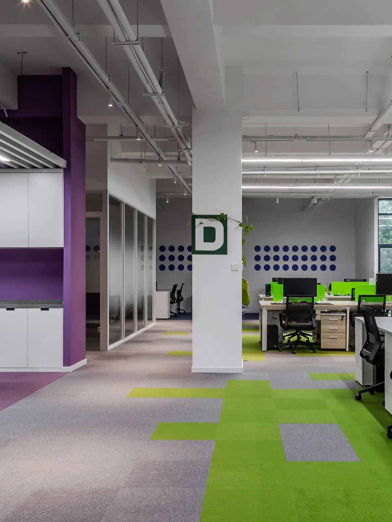 在材料的选择上,整个空间以比较素雅的基调作为整体空间氛围的营造。采用了不同拼花的木地板,以及水泥自流平。二楼采用了一些地胶和乳胶漆搭配组合。脑暴会议进行隔音的毛毡处理。在整个空间的立面饰面,做了一些局部的木饰面啊,以及金属板,白色的冲孔板,双层表皮的处理。