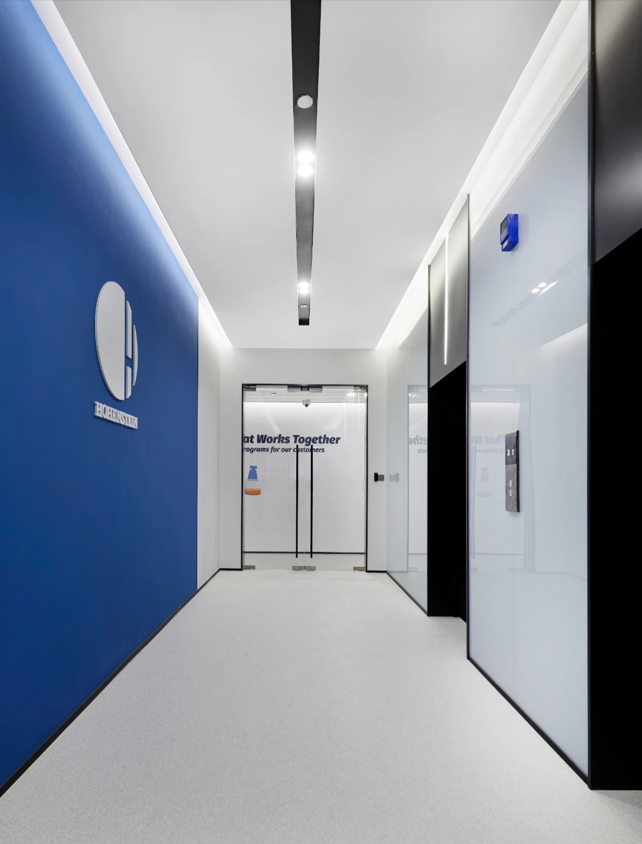 开放与半开放、不同功能间的空间交互,既能让员工专注于特定任务,又能讨论或进行其他社交活动,空间的有序规划,满足员工不同需求,同时确保环境空间的便利性。办公的核心设计,是要进行恰到好处的“留白”。在为数不多的色彩与装潢中,在打破局限、创建趣味与高效的同时,予人以“放空”。即使身处钢筋水泥的城堡,也可回归和谐。通过对功能空间的整体把控,有效利用走道、电梯厅的空间,使整体空间具有品牌展示和品牌叙事的功能,也使访客的参观旅程记忆。考虑到企业对外接洽的需要,利用走道的展示空间,展现品牌的综合风貌,让空间为业务代言。同时整体规划了人流动线,可以灵活地展开对外部访客的交流并降低对公区的干扰。