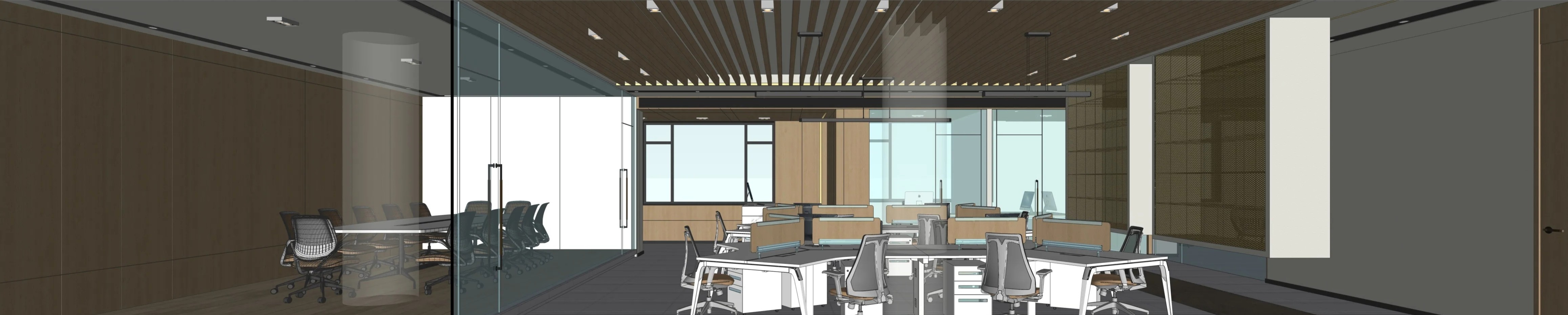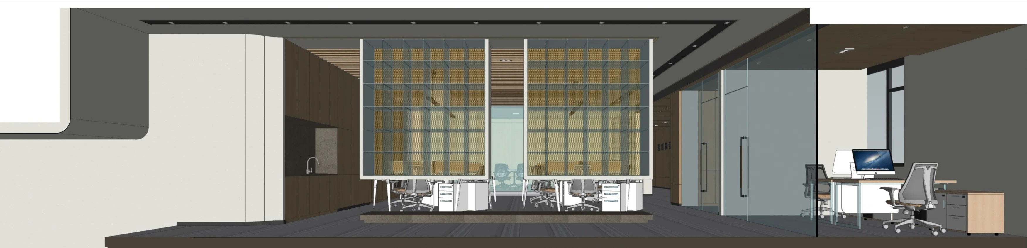 大面积的透光隔断在划分工作区域的同时增强互动性,每个空间都不至于太孤立。在维持传统的同时增强时尚感,大环境色泽淡雅朴素,却有各种材料质感搭配,相得应彰。商务、稳重、时尚、是设计的方向与主题。