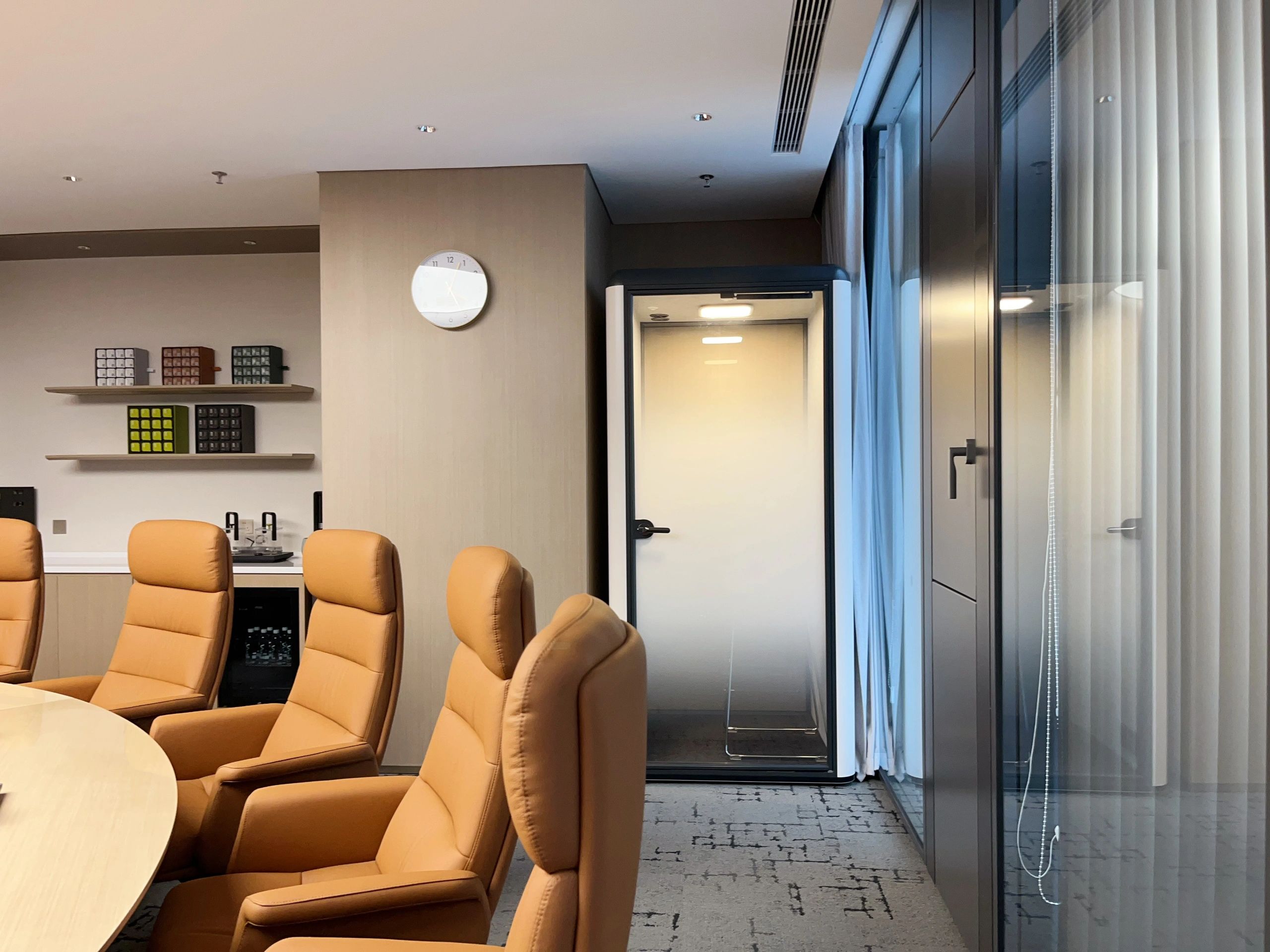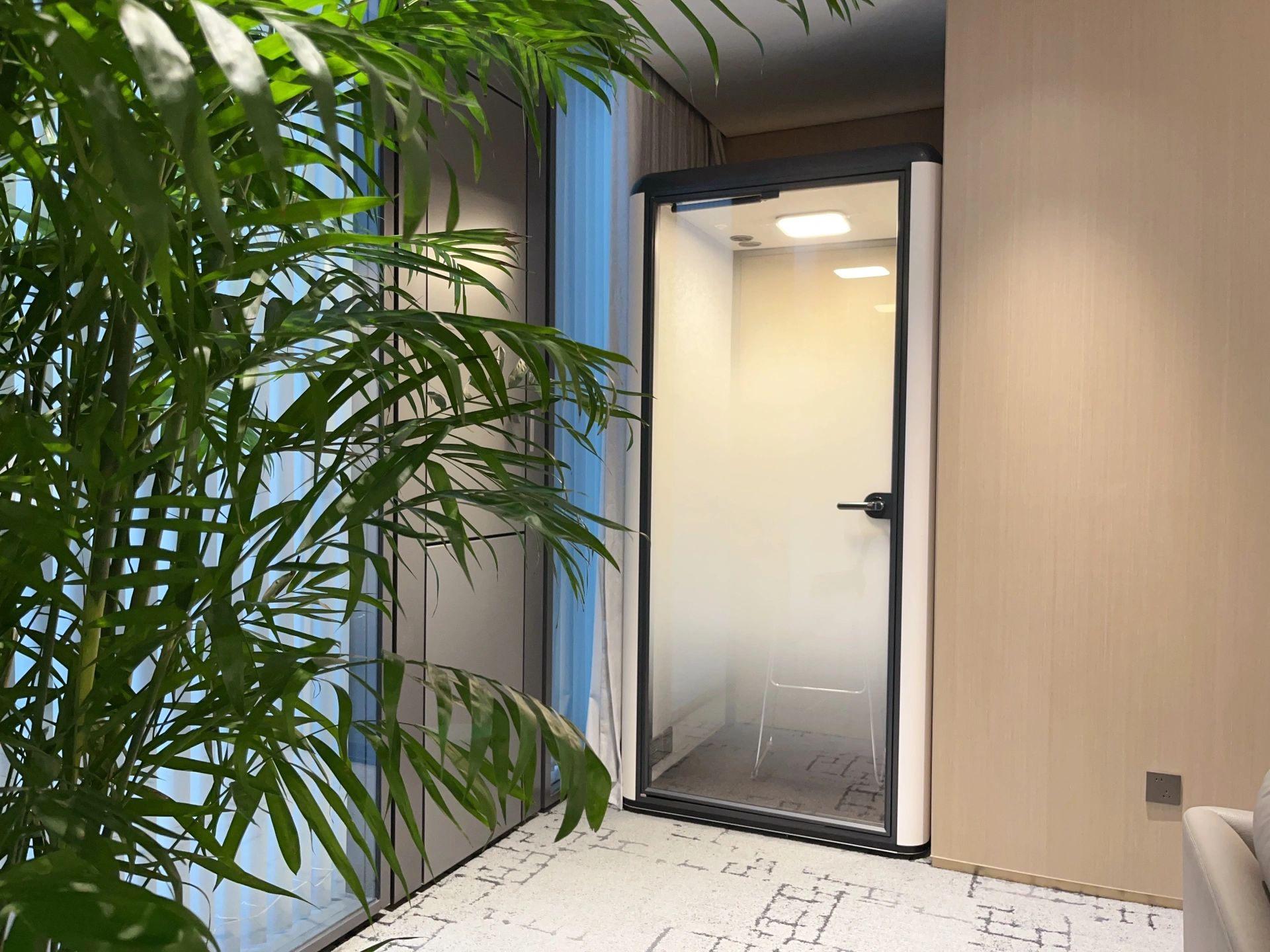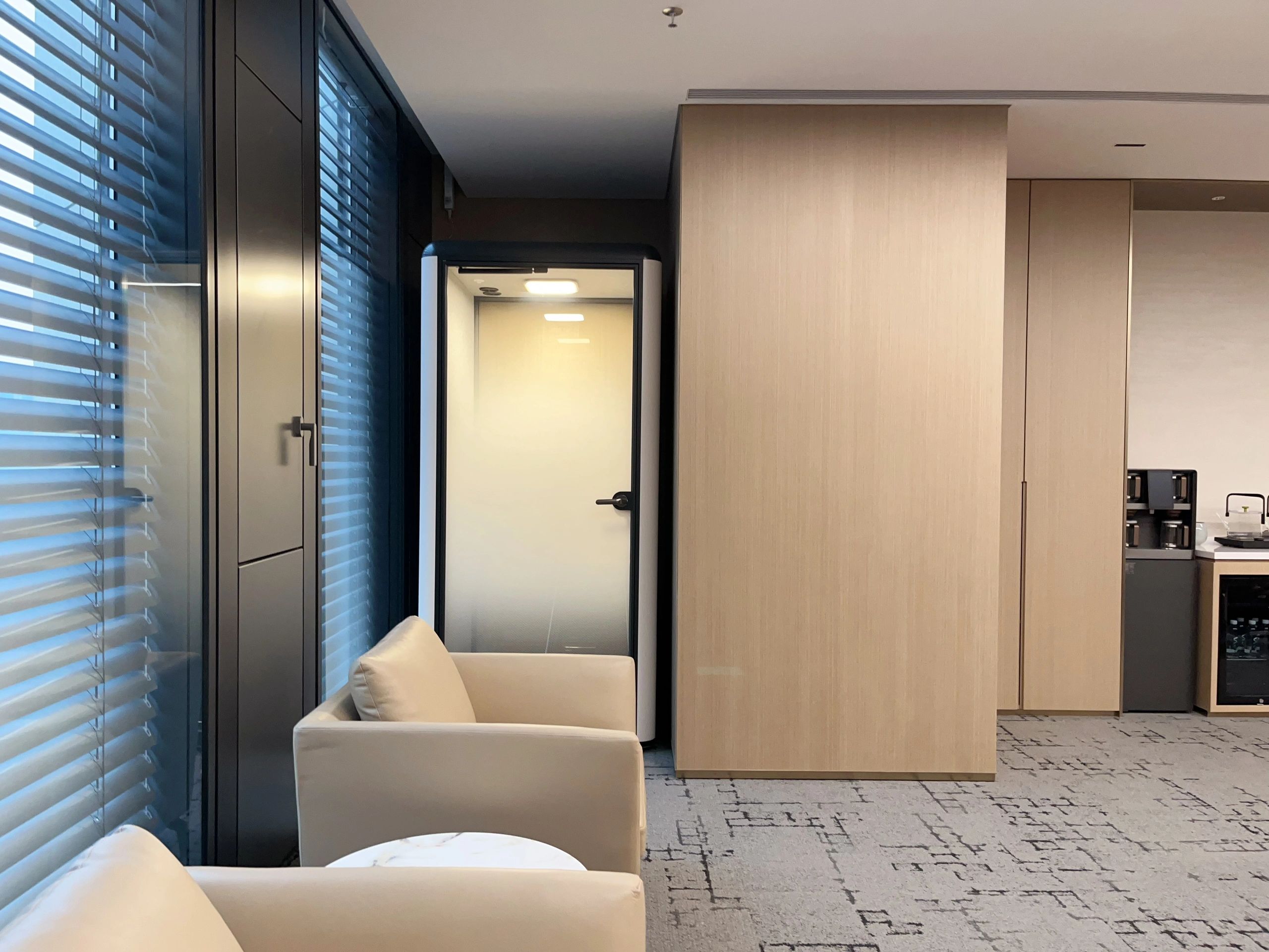 满足精神慰藉之后,设计者有意识地为使用者创造情绪价值。在有限空间里,通过模块重组、串联,最终实现自定义的未来办公新形态:⼯位被规划为多个⼩型的独⽴单元,相互联结又通透,让员工体验办公乐趣与人性考量;Box Space的造型⽅式诠释自然流动的办公场景,产⽣妙趣横⽣的视觉互动。