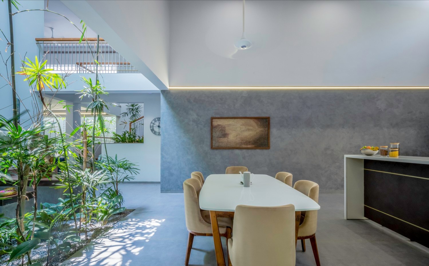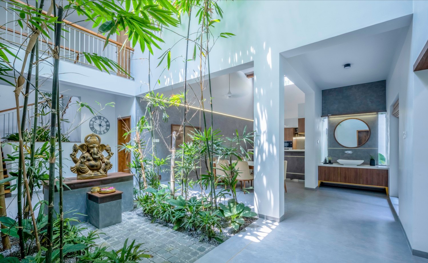 还是羡慕带天井的别墅,采光好、造景美,足不出户就能体会有个小花园的快乐天井可以很好地改善别墅内的采光、通风,好好设计一下,千万别浪费了!顶部装上玻璃顶,能遮雨也不影响采光;天井底部种上花花草草,进行造景设计,在家里就能享受一方美景,自然感十足;还可以摆放上桌椅,打造休闲区使用;空间足够的天井甚至可以挖个鱼池出来,喂喂鱼放松心情;你家要是有天井,想好怎么装了吗?