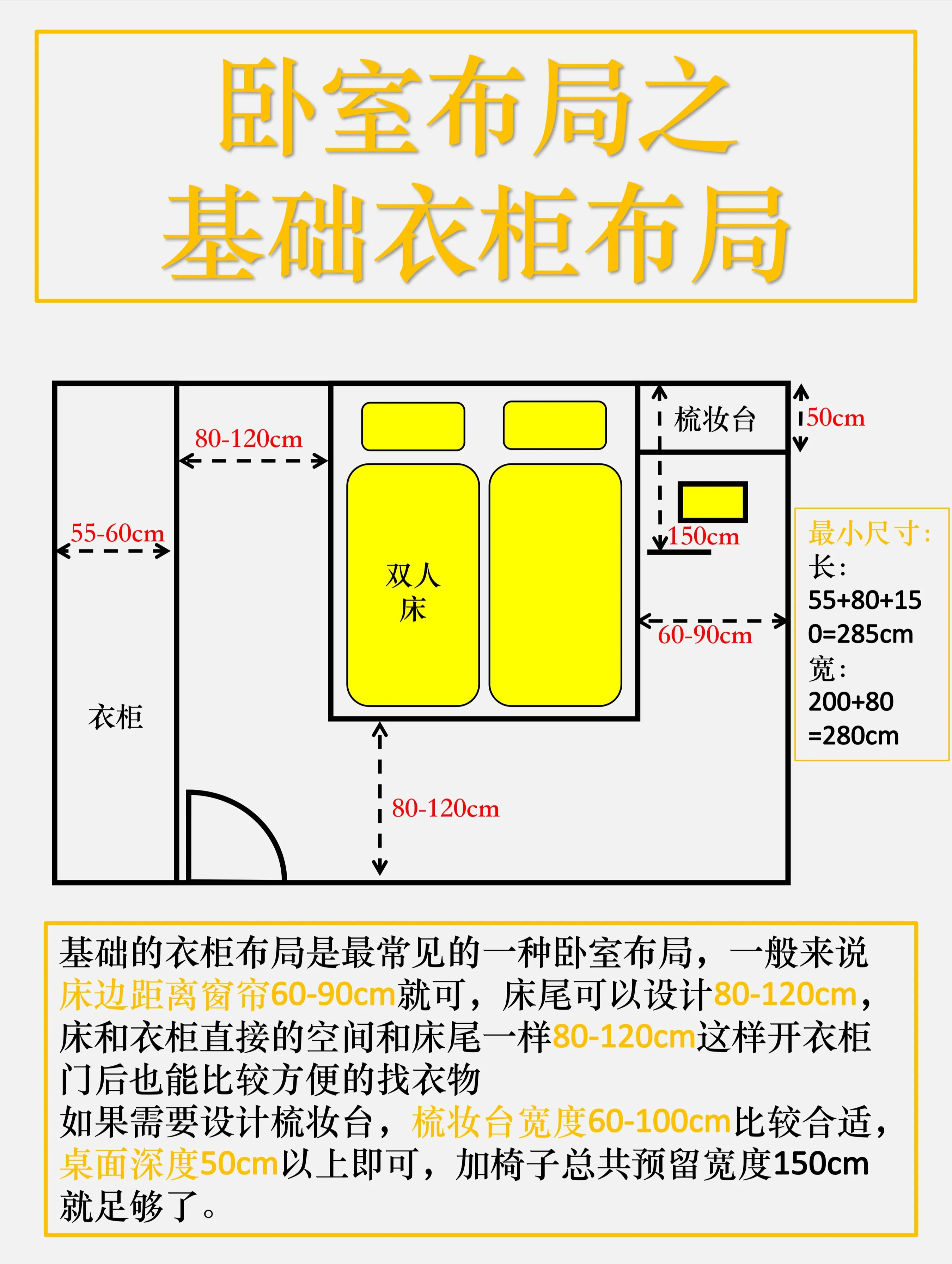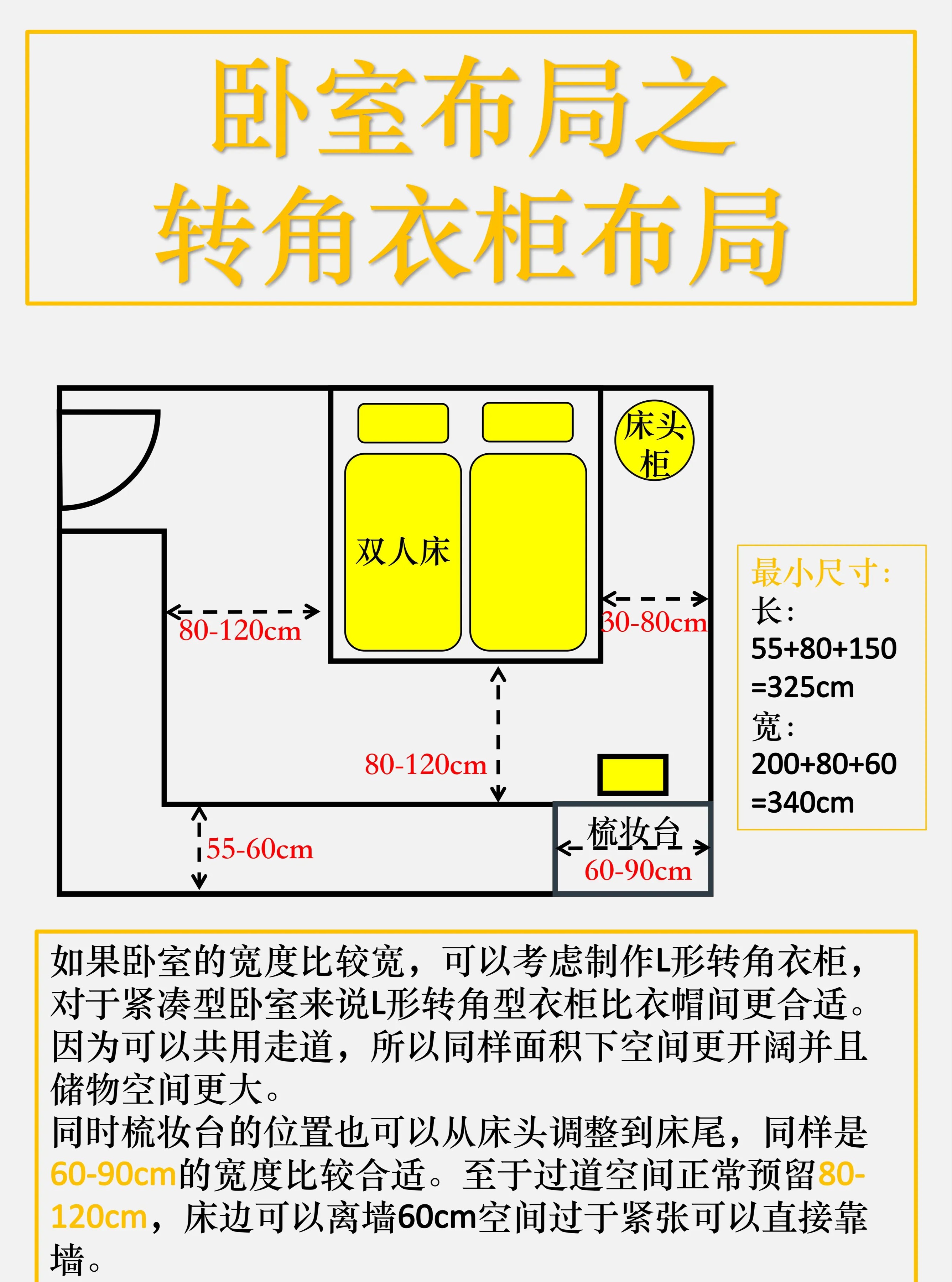 9图搞定卧室布局尺寸——床、衣柜、走道