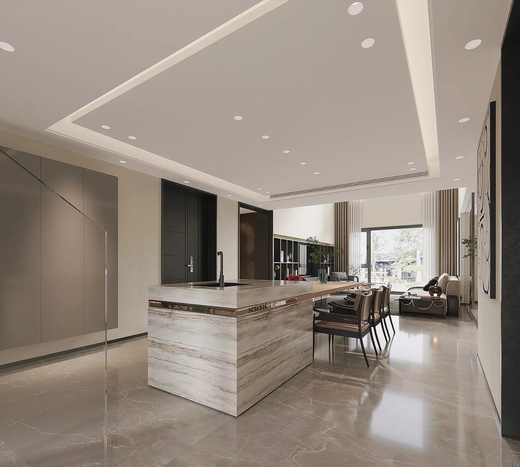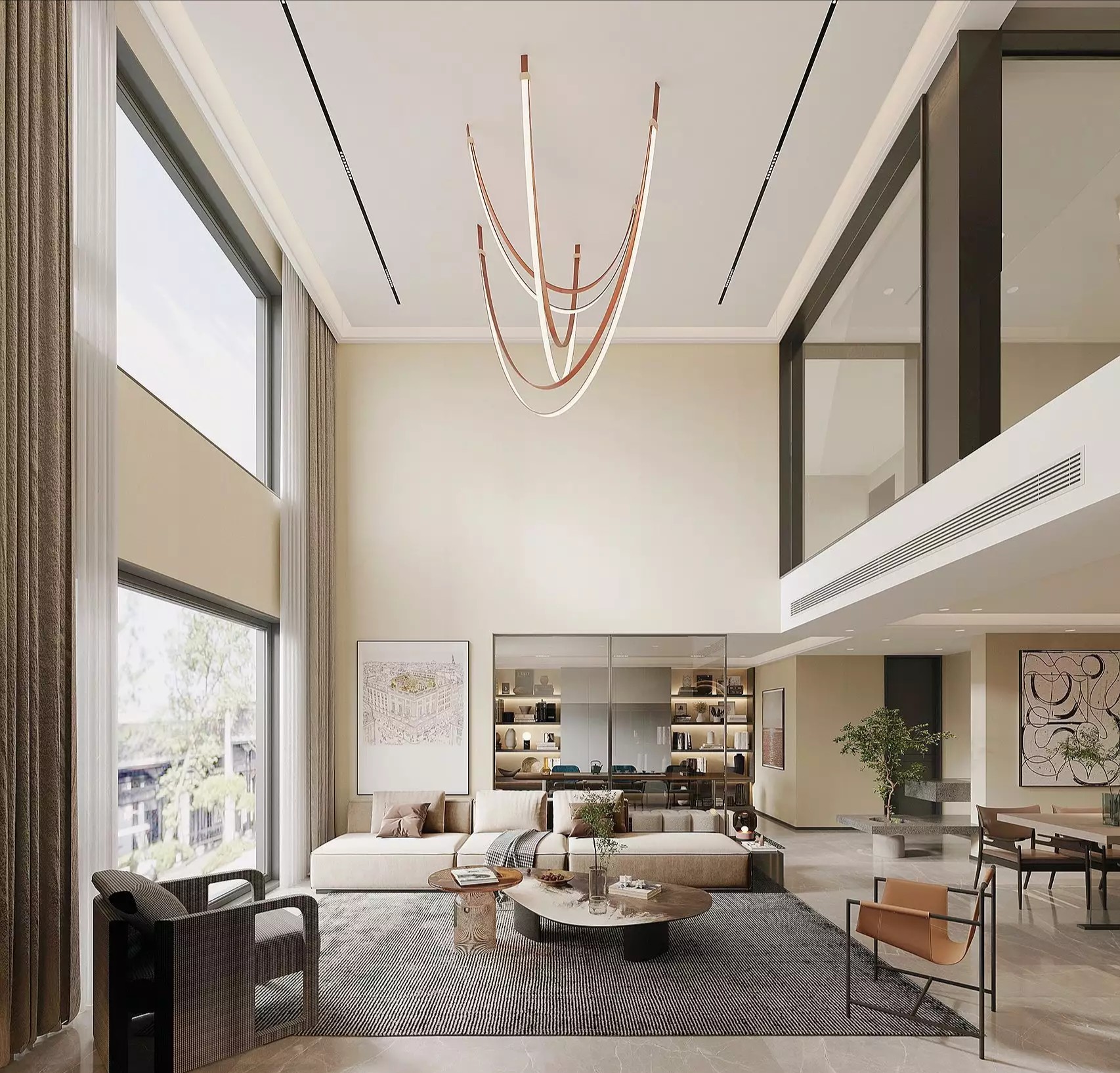 安装只需要留槽4公分,深度5公分,直接靠墙,螺丝固定,批灰抹腻子刷漆就行,营造出一种天花悬浮感,高级感十足!
