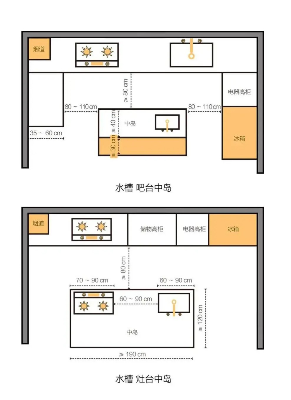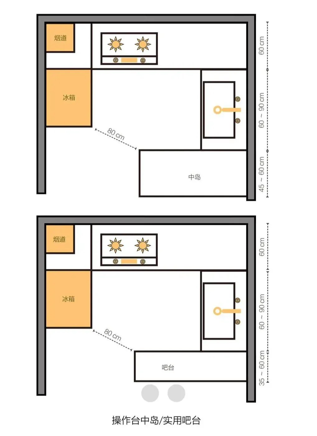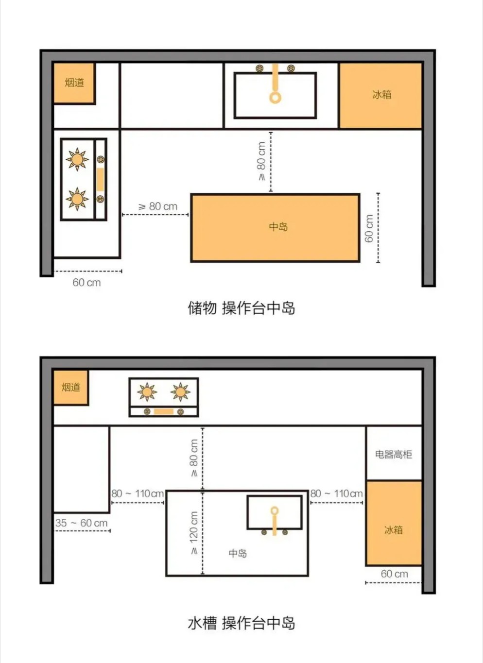 热爱厨房的人,一定也热爱生活 。分享几种厨房及岛台的平面布局。