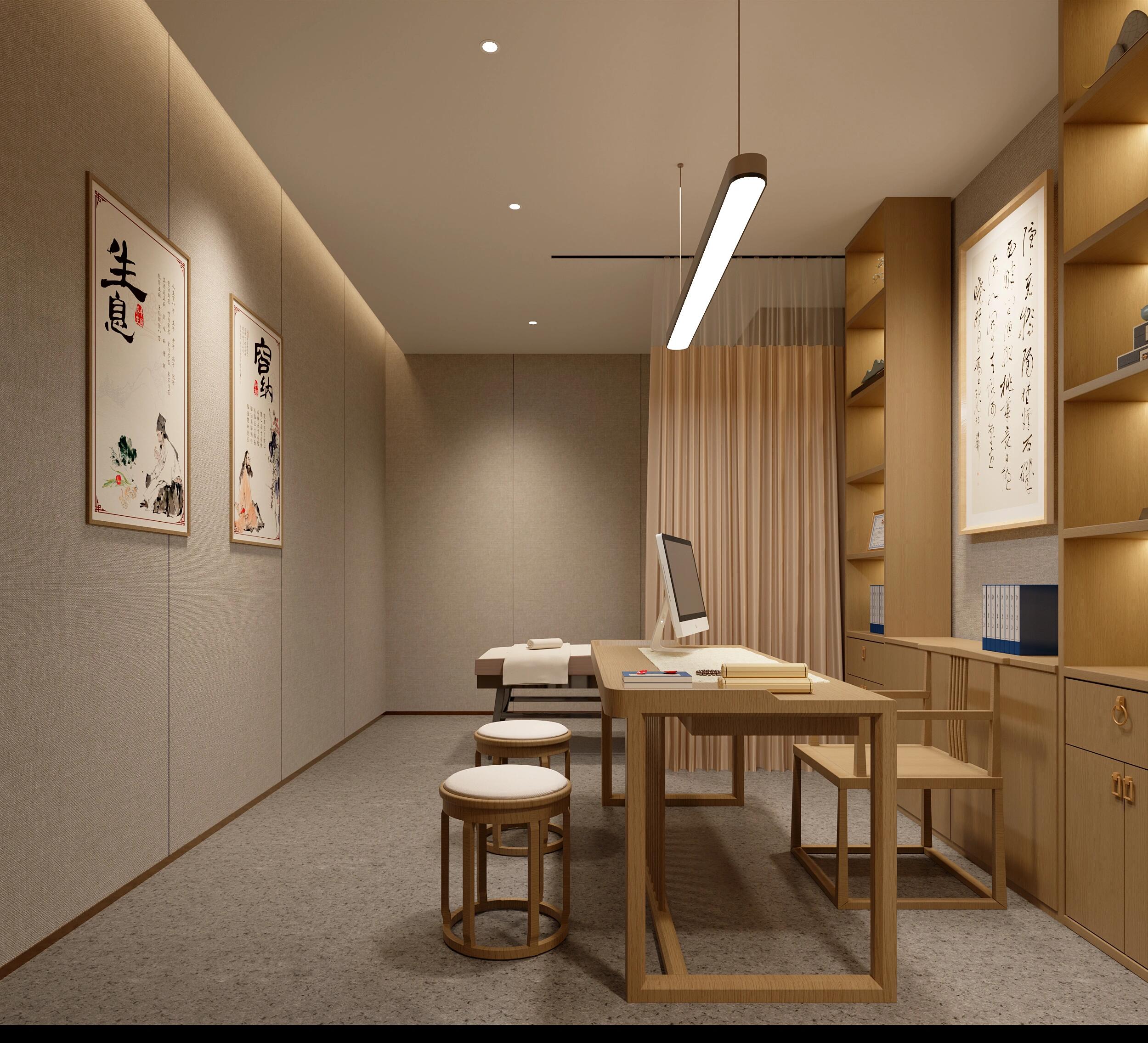 一踏入大厅,新中式原木风扑面而来,暖光勾勒出空间层次感,荣誉墙、百子柜、中医雕像…… 传统韵味与现代设计无缝衔接,连空气都弥漫着安心的草本香