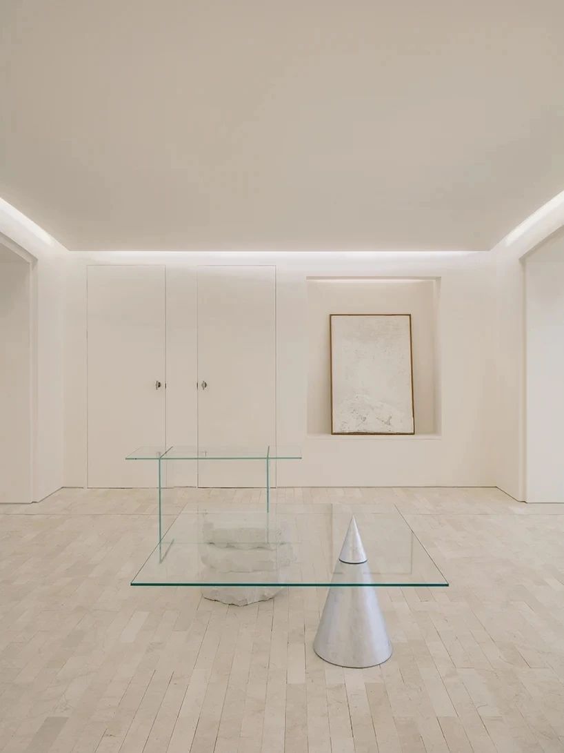 设计师参考柱廊在走廊和室内空间之间设计出的拱廊结构颠覆传统的玻璃结构,定义出了空间的亲密感,隔离开了走廊外面繁杂的噪音。