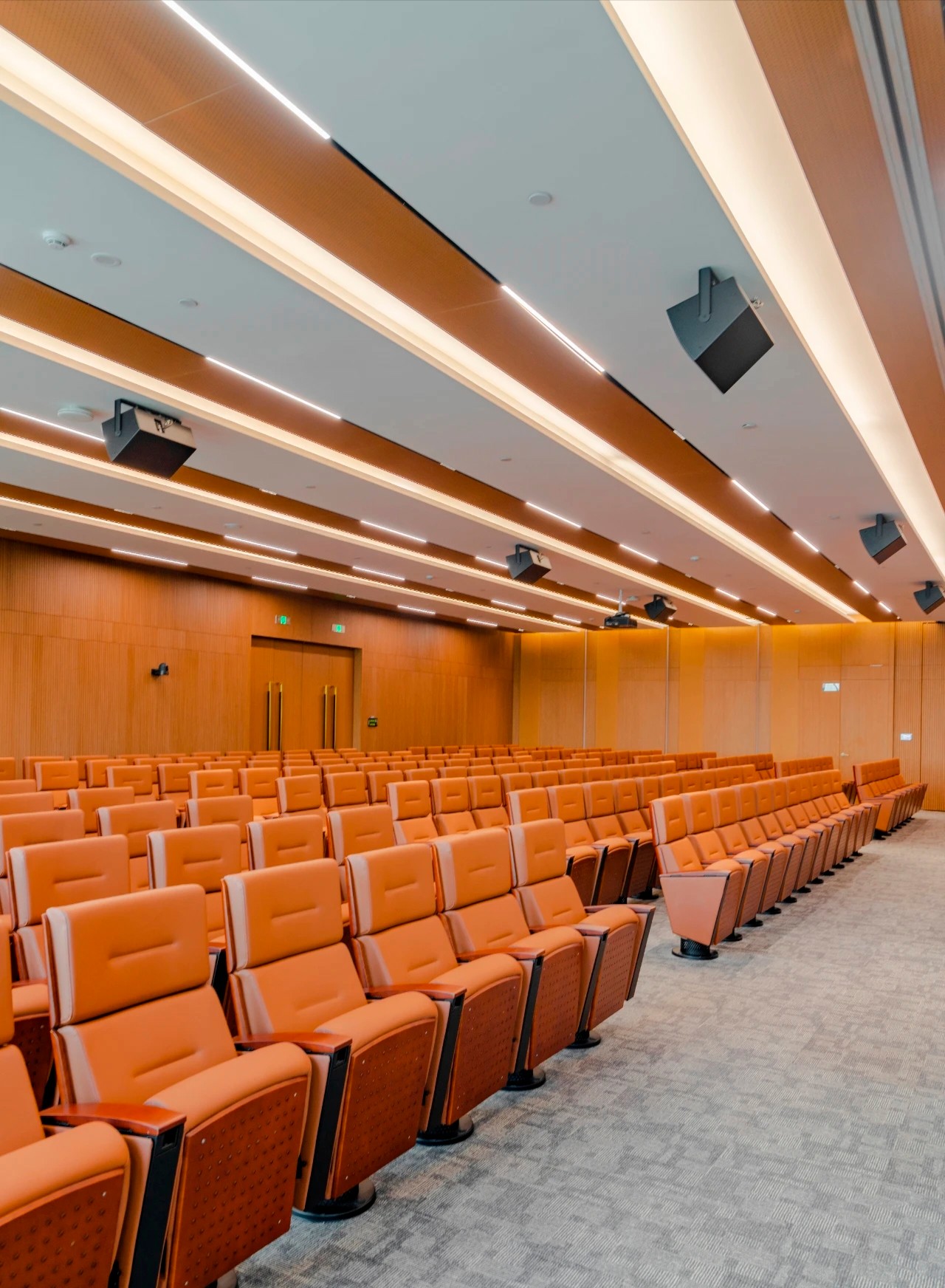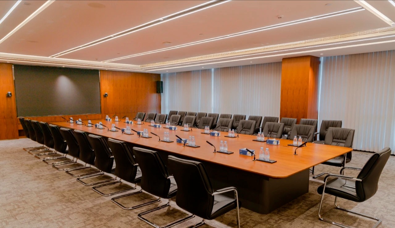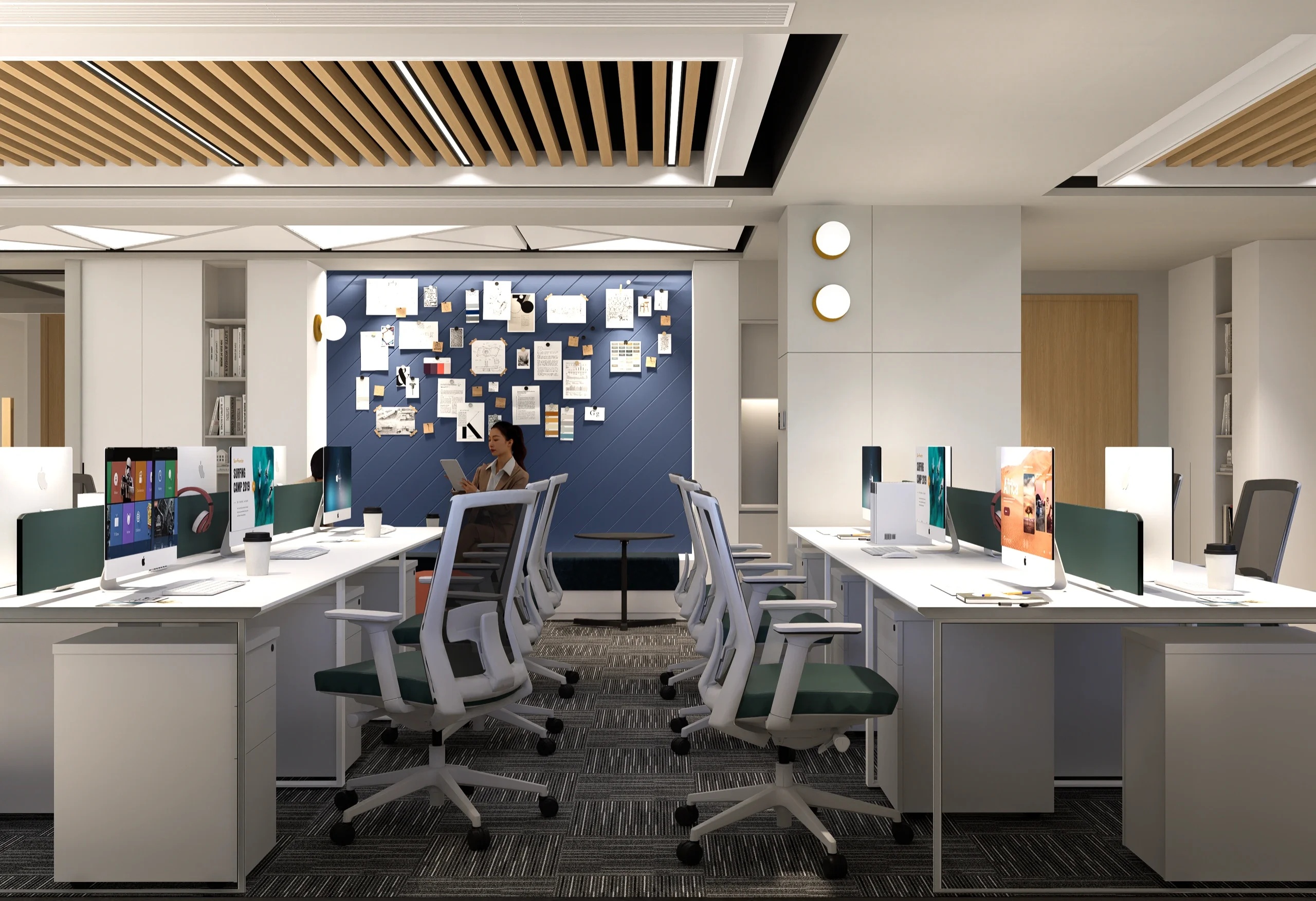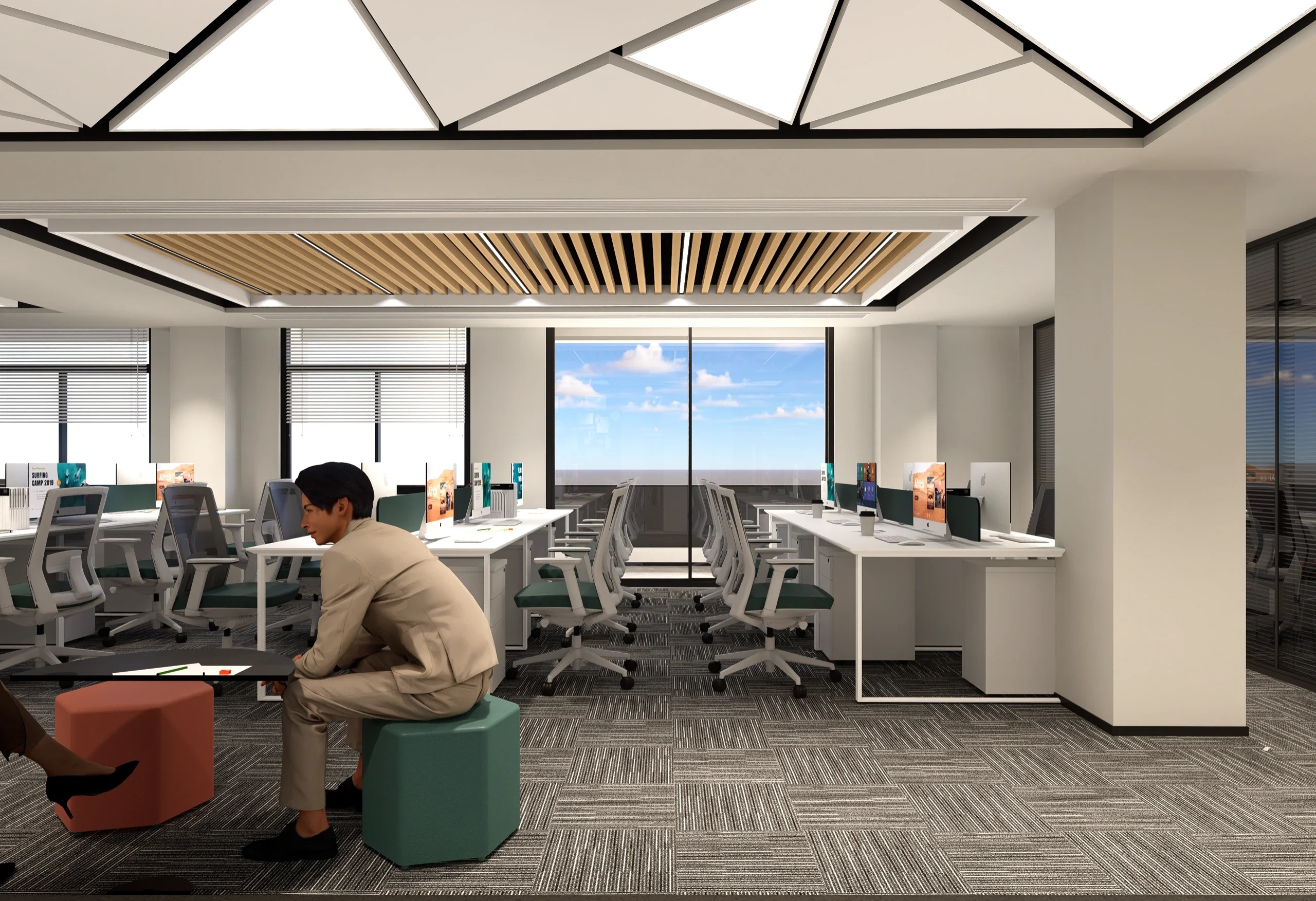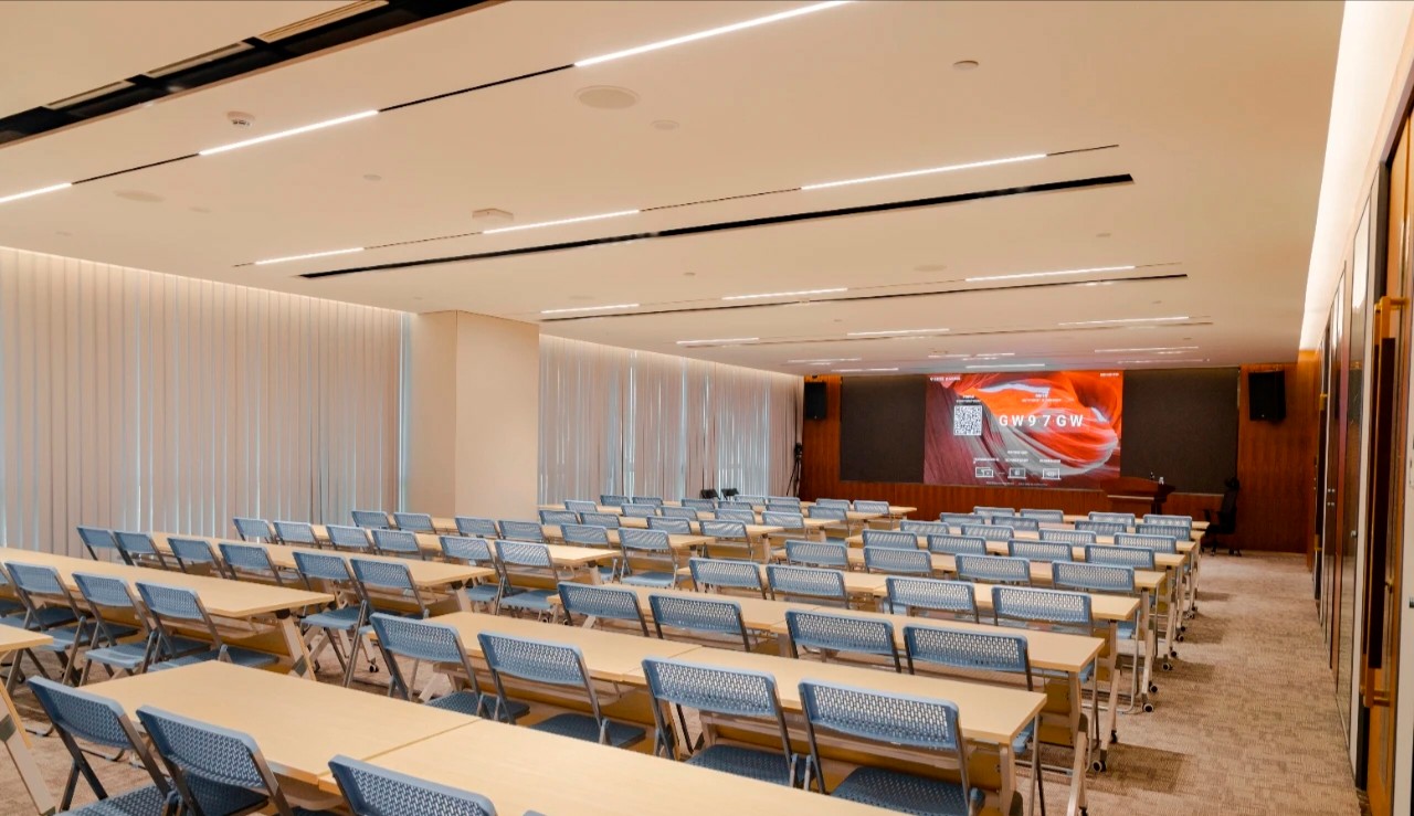 项目全部采用了创建空调的防结露条形风口。整体空间装饰以实木为主元素,打造自然、舒适,又不失传统质感的办公空间。穿过宽敞的回廊通道,便是总经理办公室,明亮有温度的木饰风格,空间在两侧风口的延伸之下显得格外宽敞。