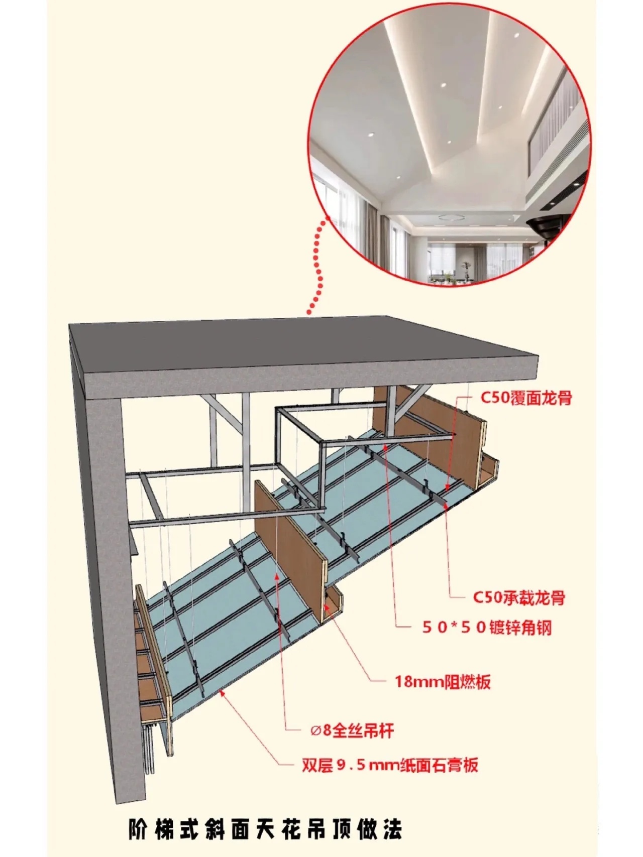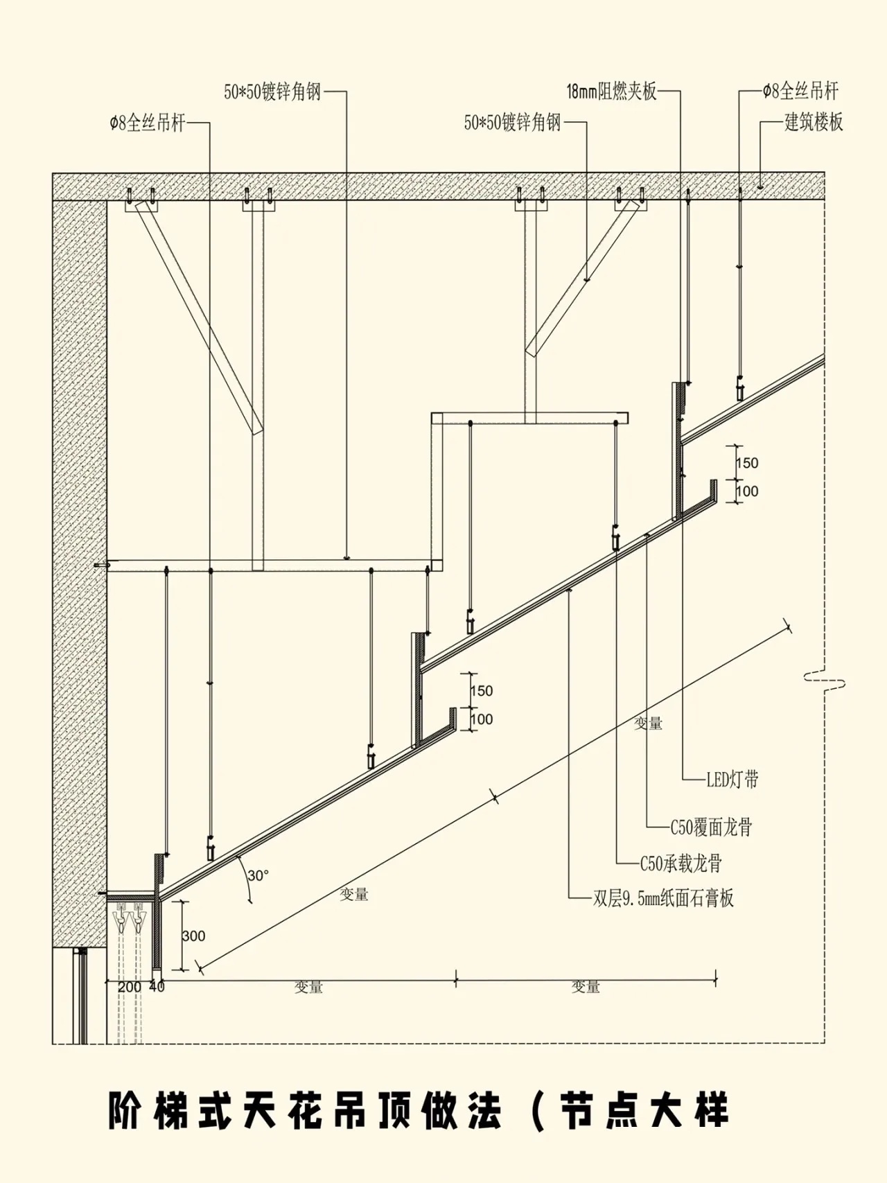 阶梯式斜面吊顶大样图